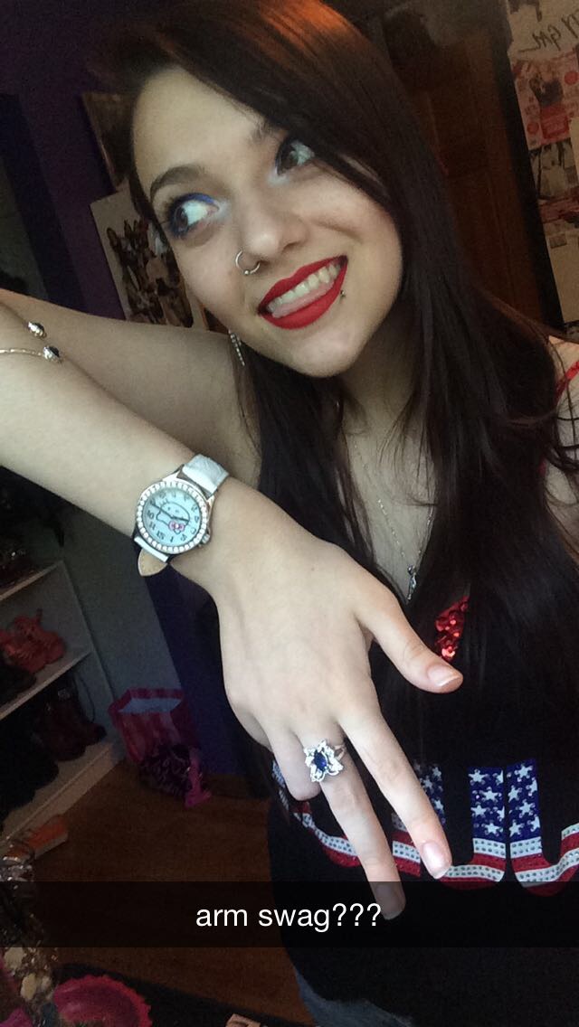 This is probably one of the only good pictures I took for my whole look. You can see the shirt pretty well, it basically just says Juicy across in an American Flag print and has some studding (bedazzling?). The shirt was from Kohls and was priced at $36 but I think they might have had some special discount price. This is a pretty funny picture taken by Ally, below (also featured in some of these pictures) (who I also started dating on this day) and I thought I would include it just for fun. I really like to go all out for any sort of holiday, I get super excited about it.