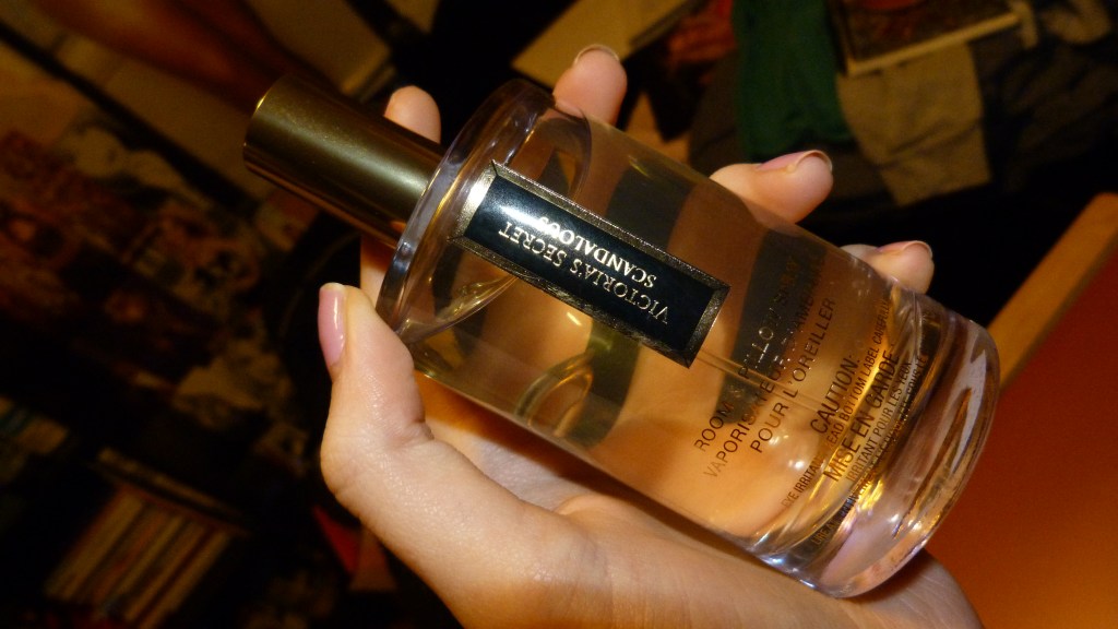 So the next thing she gave me was this really cool room spray from Victoria’s Secret (my favorite store) and it smells pretty good, it’s interesting. It’s called Scandalous, and it’s also a pillow spray.