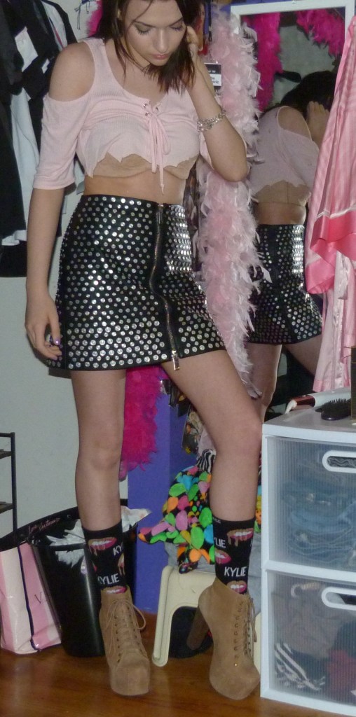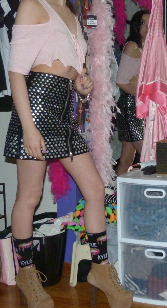 The look – Shirt is some random shirt that used to be gigantic and went to my thighs, but then I cut it into a crop top. I haven’t posted about this shirt until now, so here we go. Haha.
