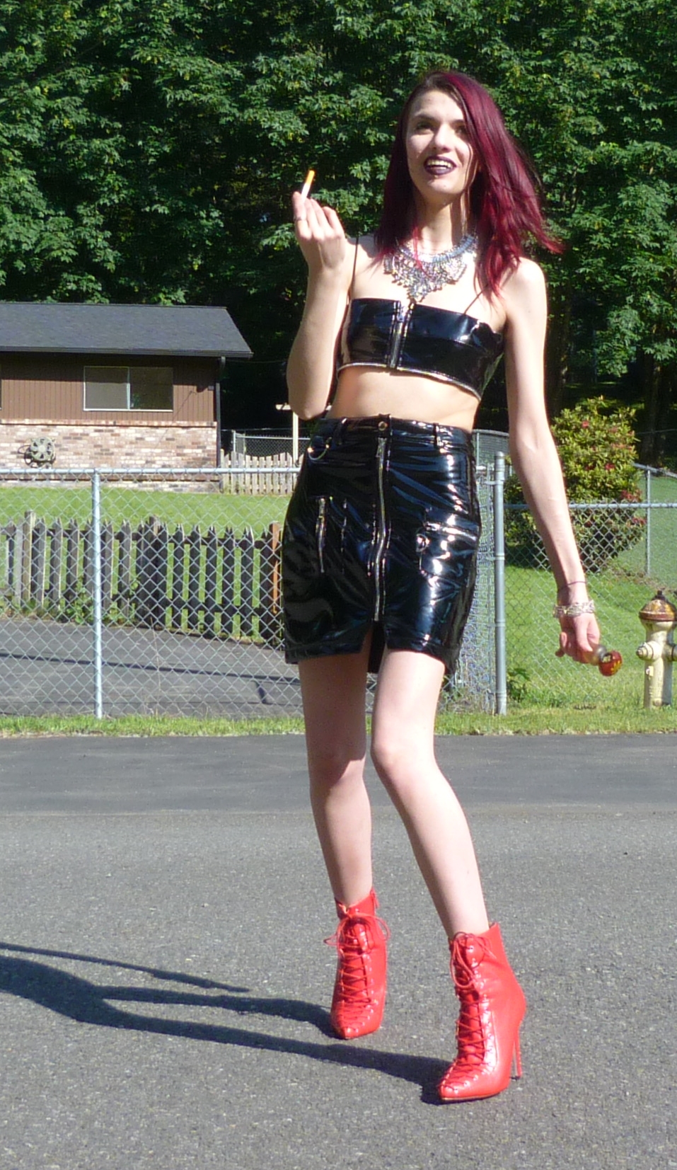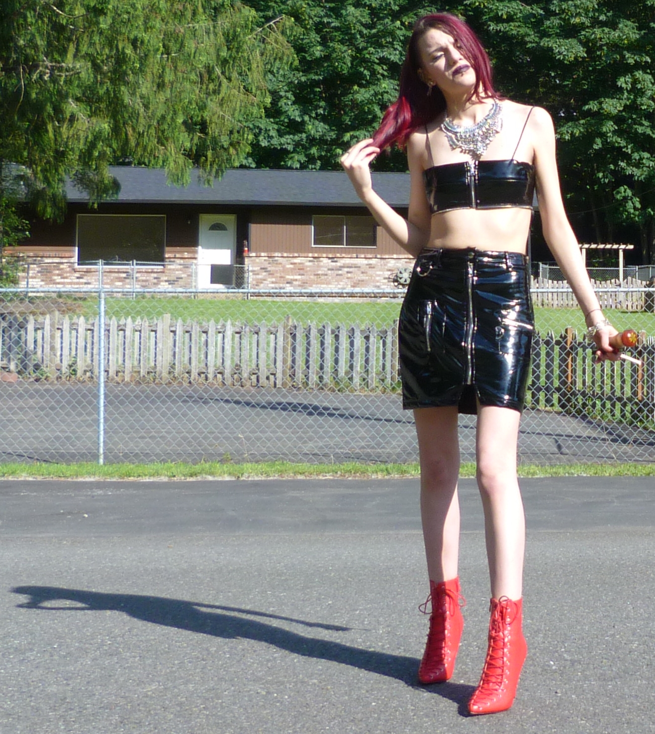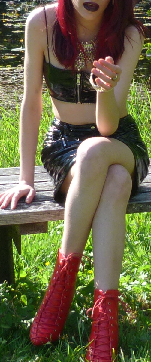 - Red lace-up booties are from Nasty Gal, they were called “Can’t Hold Us Down” and referred to the Xtina song so I knew I had to do a shoot to that song with them!