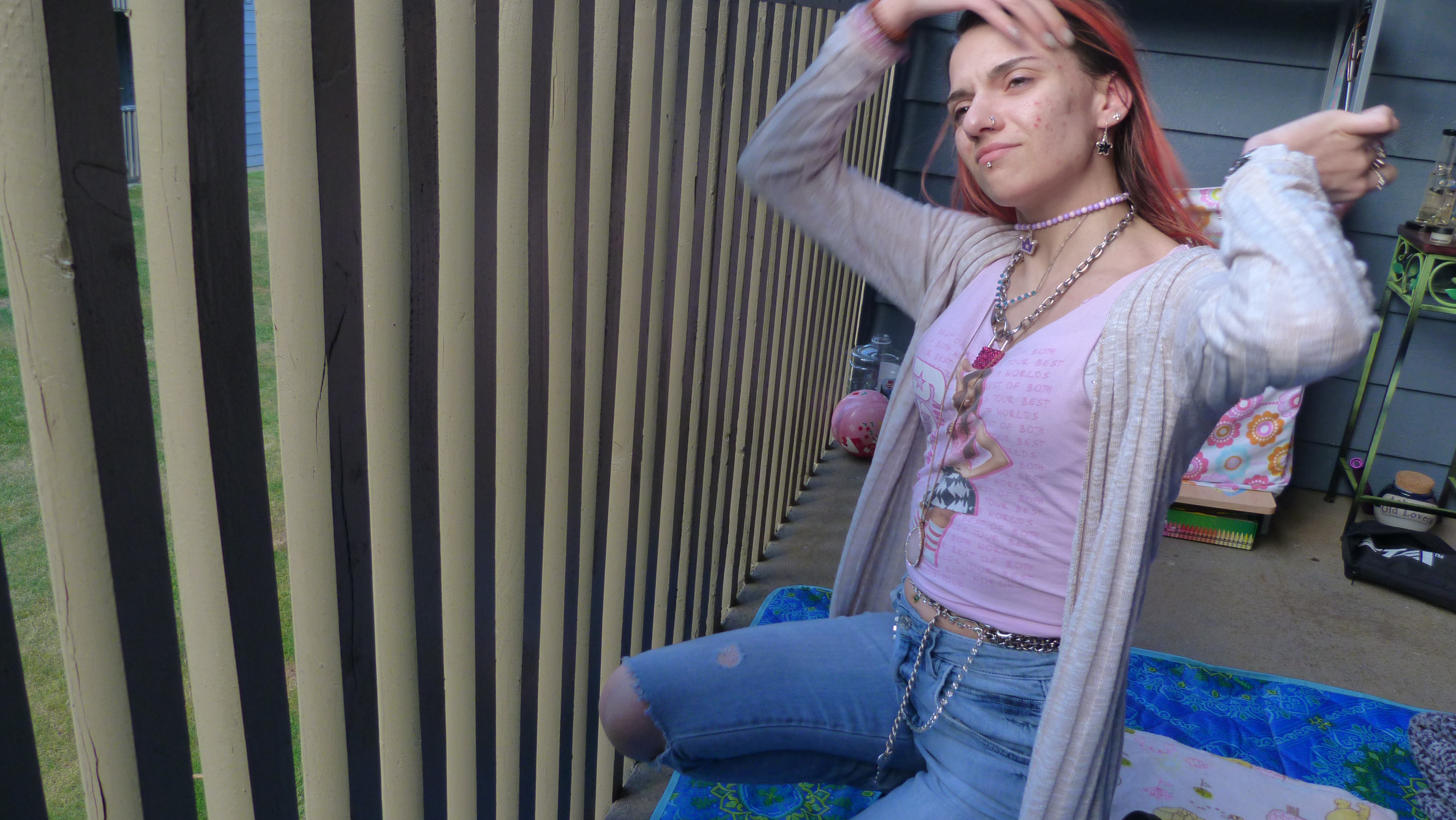 & @ There’s the first 4, or even 5 including the first picture! This was a pretty cute photoshoot, I liked this outfit with that Miley Cyrus t-shirt this time, that was perfect of an outfit with all of that jewelry I used to wear a lot of back then! I love that I used to wear a lot of jewelry back then, it was perfect for me all the time. Anyway, it was a pretty cute outfit, even with like those black furry slides I was wearing in most of those last pictures. I love the chain too!