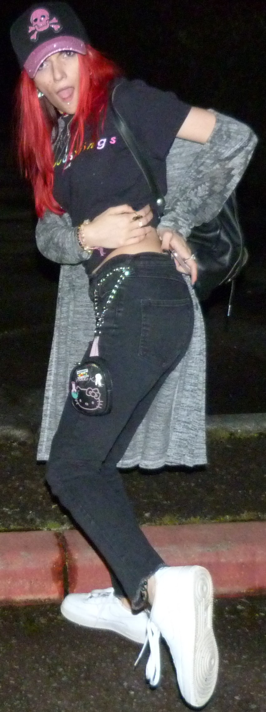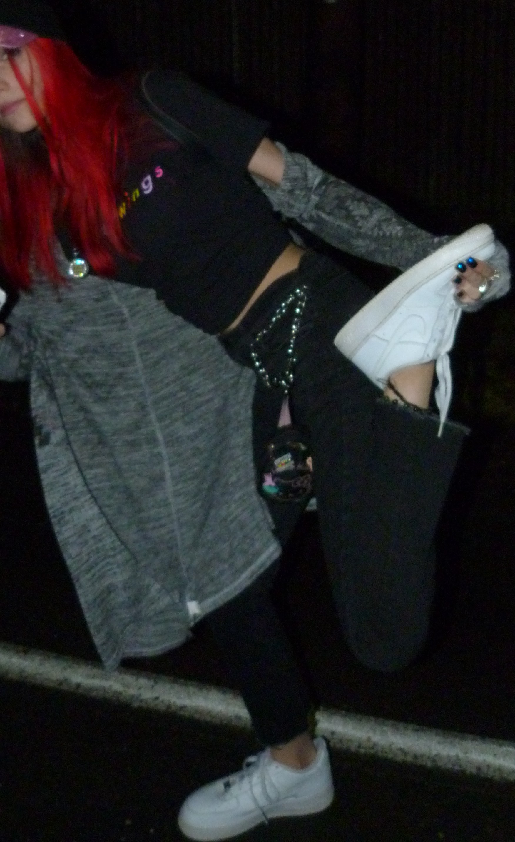 So what’s cool about this shoot with the bright red hair, gray cardigan and bright white shoes is I was also wearing fake blue nails that were rad. I love a lot of the styling of the 2020 posts I’ve been creating this year (2019 photoshoots included) and I love how they turned out in terms of scenery, like with display verses atmosphere. I think this one has pretty good balance.
