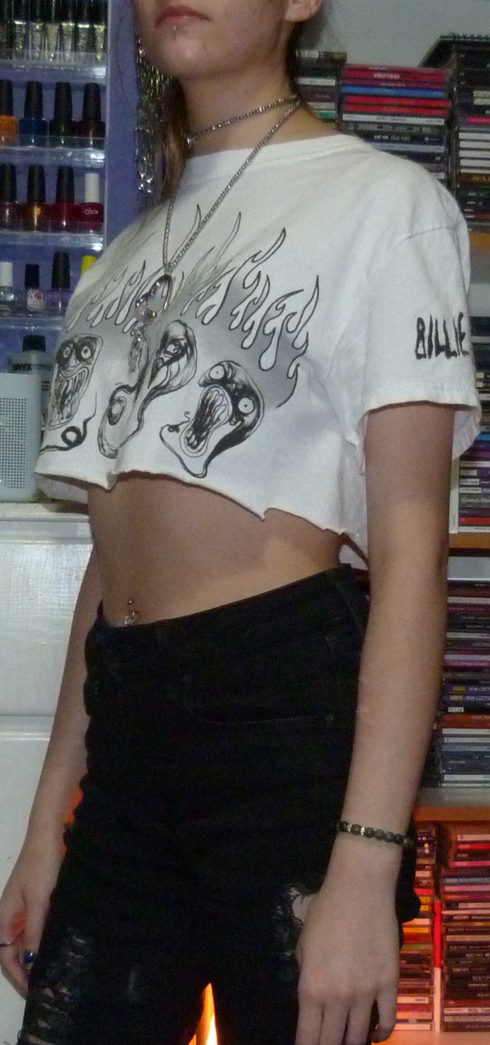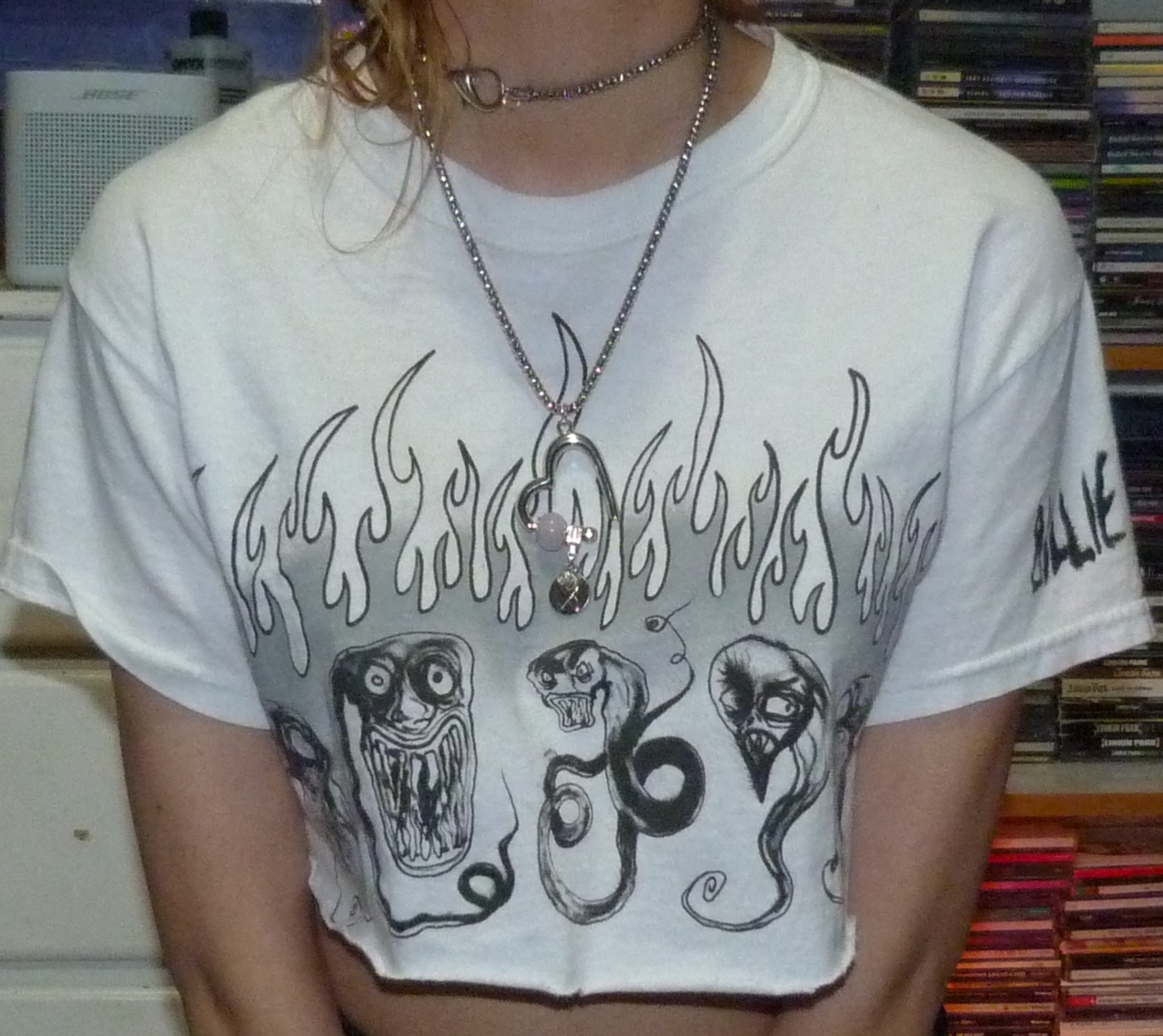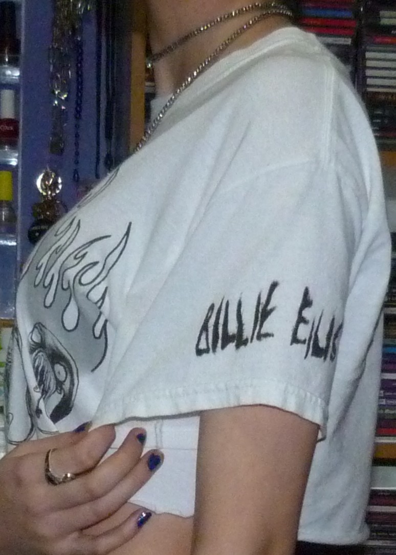 I started dreaming really well a couple weeks ago (and yes I’m 22 now, my birthday was on the 15th) and now I’ve been loving sleep. Seriously I think these are nightmare monsters on this shirt, and what inspired me to finally cut it was surprising actually, because I had two Billie shirts from the last Seattle concert she did but I didn’t get to see the concert. I missed it, sort of, but at least we got the shirts! Still not sure if I care to cut the other Billie World Tour crop with the dates on the back so I’ll just leave it. For now I actually got home and took pictures of this shirt one time when I was hanging out with a friend wearing it, so yeah November 11th is when I did this shoot and believe me that I call it Scary World. I’ve been inspired a million times by songs and the names tied to them, but I wanted to call this just that. It seems like what I’d call this shirt. So Celebrity Merch Base will be different but it’ll be a collective of all these pictures similar to this with just way less writing so that’s always a good thing to catalog. Let’s check out more pictures of it, I know what month it is, it seems weird that I’ve been blogging with months going by in between but I’ll pick up the speed.