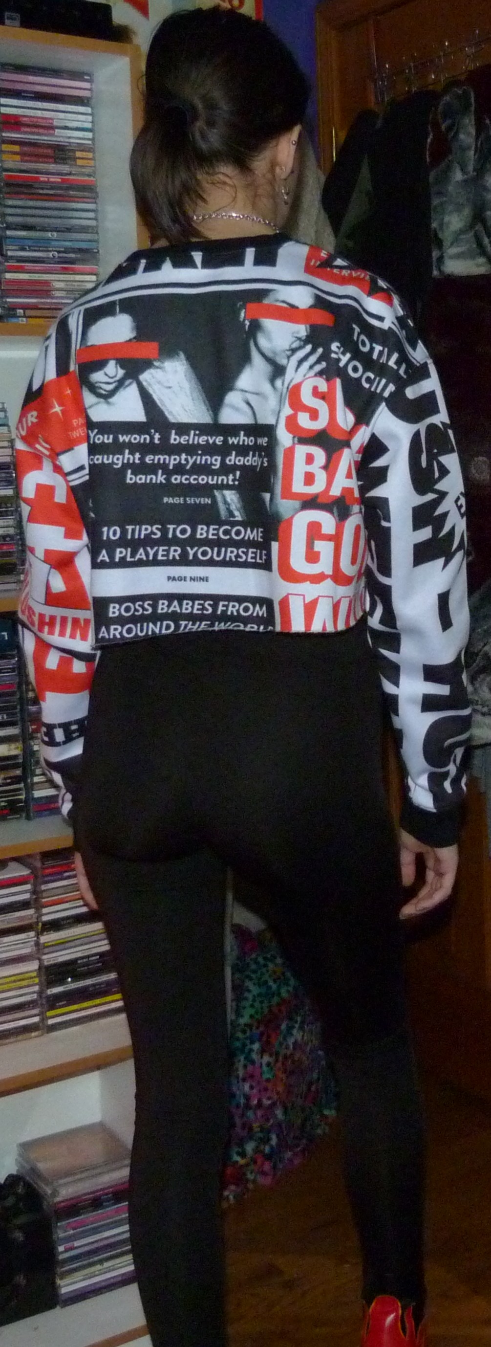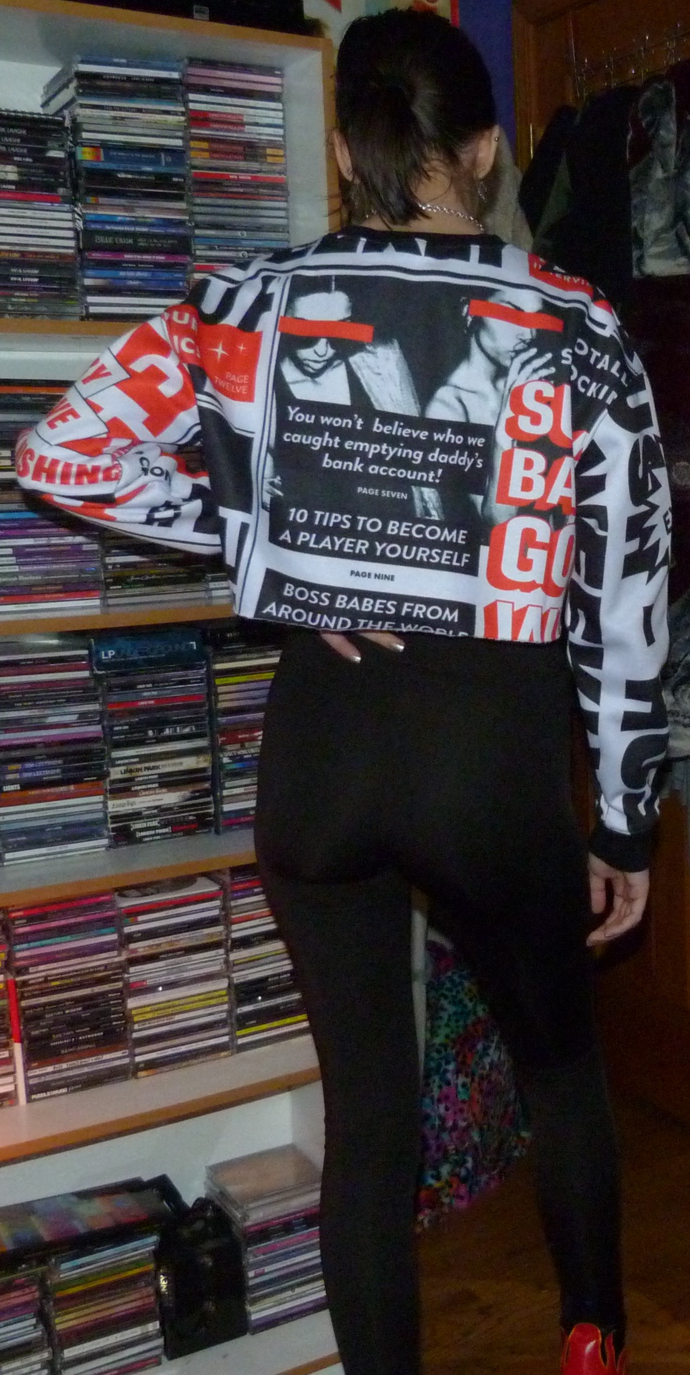 What I think of this outfit is that it’s graphic. I had just gotten this order and I was definitely ready to shoot it, despite everything I’ve said in my last posts. It’s crazy how none of my shoots look the same even though all I have is the same settings all the time to do this shit. All the past blog posts – one day I’m going to make it with my blog and this will be something someone digs up and they’ll say it’s their favorite photoshoot, and I’ll have a bunch of new likes on this post. I also can’t drive by the way, so about being a passenger in that weird dream I had to trust the person driving. And since I was trying to find my dad there was a bunch of unreliable people and seatbelts in that dream. I almost forgot about that actually. Oh well, like my CD collection? My poster wall isn’t the best these days but eventually I’ll get more pictures on that side of the wall. Maybe what I’m missing in my dreams is that perspective, that dream or vision. Because it is one.