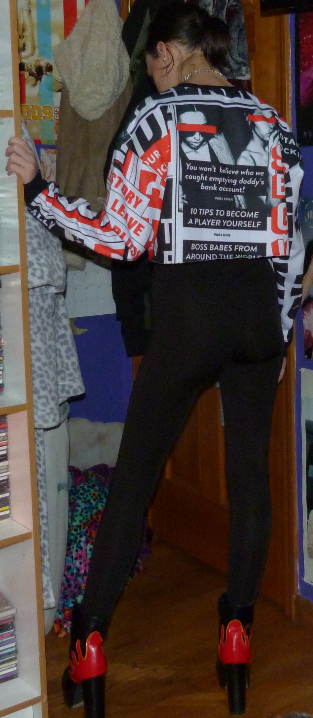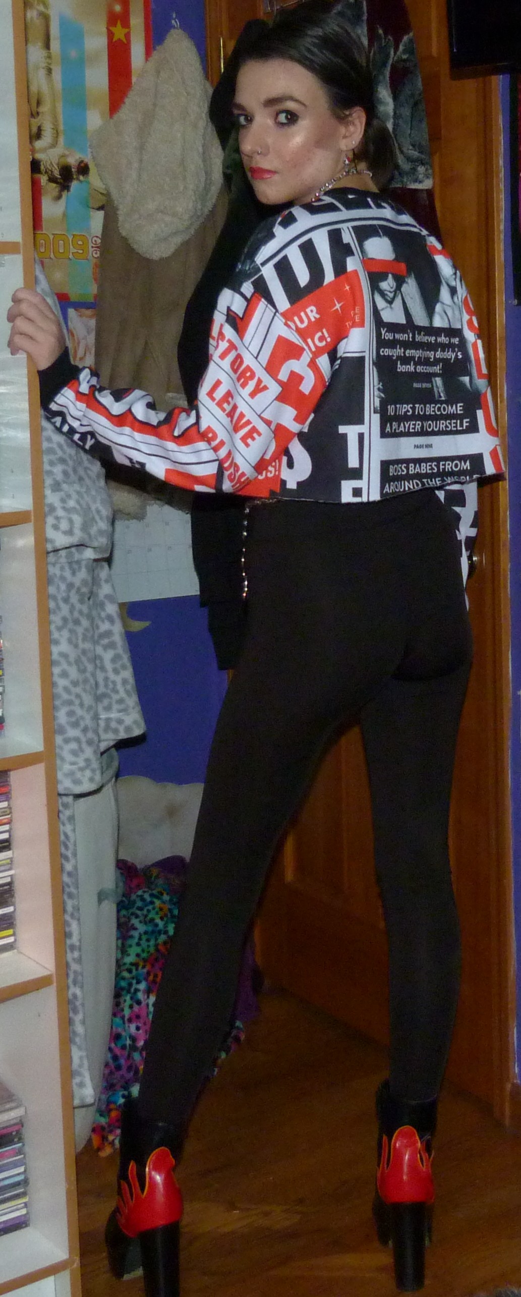 I definitely also wore my flame boots that I’ve worn a million times in different shoots, so check out Hot on My Heels to see a bunch of the other shoots I put these in. Those are populated heels if you catch my drift. Way too many photoshoots with these. That’s okay though! They’re from my Nasty Gal days. Oh boy Nasty Gal. I have like 2-3 things left from there that I’ve never shot. Eventually I’ll get around to doing old clothes like that for my blog. I also had this ad-junct dream last night where I was walking around from closet to closet with my cousin looking for different things for outfits. I seriously had both dreams last night. I remember it pretty clearly! There was a moat we were walking beside, leading us to our outfits or whatever. Hahaha, my dreams are kind of funny. Anyway! This is called Hit the Headlines because that’s what the shirt was called, but connecting that to that dream I’d say I usually dream at night about whatever I’m going to do the next day. Don’t ask how I know what I’m doing the next day but sometimes that’s what it reflects. I guess I’m a little lost today. Oh well, I’ll ‘find-out’!