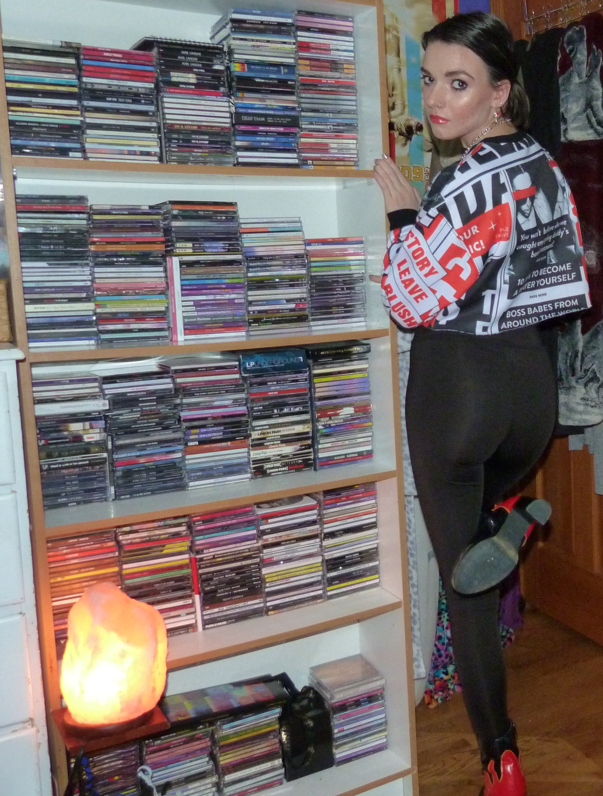 Dangerous! I still have a bunch more pictures to add to this. Oh well, how do you like my salt lamp? I totally bought this when I lived with my mom and did a post all about it, Altar-ing Life, with my little side-table things. That was a good quality blog post. I think I say oh well too much. That’s okay though. My CD collection is in a few of my blog posts actually. I love taking pictures beside it. Since I have two big bookshelves in my room I rarely ever shoot on my poster wall. There was so many cool wall photoshoots growing up, I already mentioned that a little. I’ll just keep on going. So what do you think about dreaming? I think I’ve been doing really well lately with it, despite them being borderline nightmare. Which is funny because I’m never usually afraid of anything. I think this means I need to blog more on Worry Just Enough. I used to blog seriously on there on my feelings and how I feel about things. It was popular in one year of my life but my last post on there sucked. I can figure it out though!