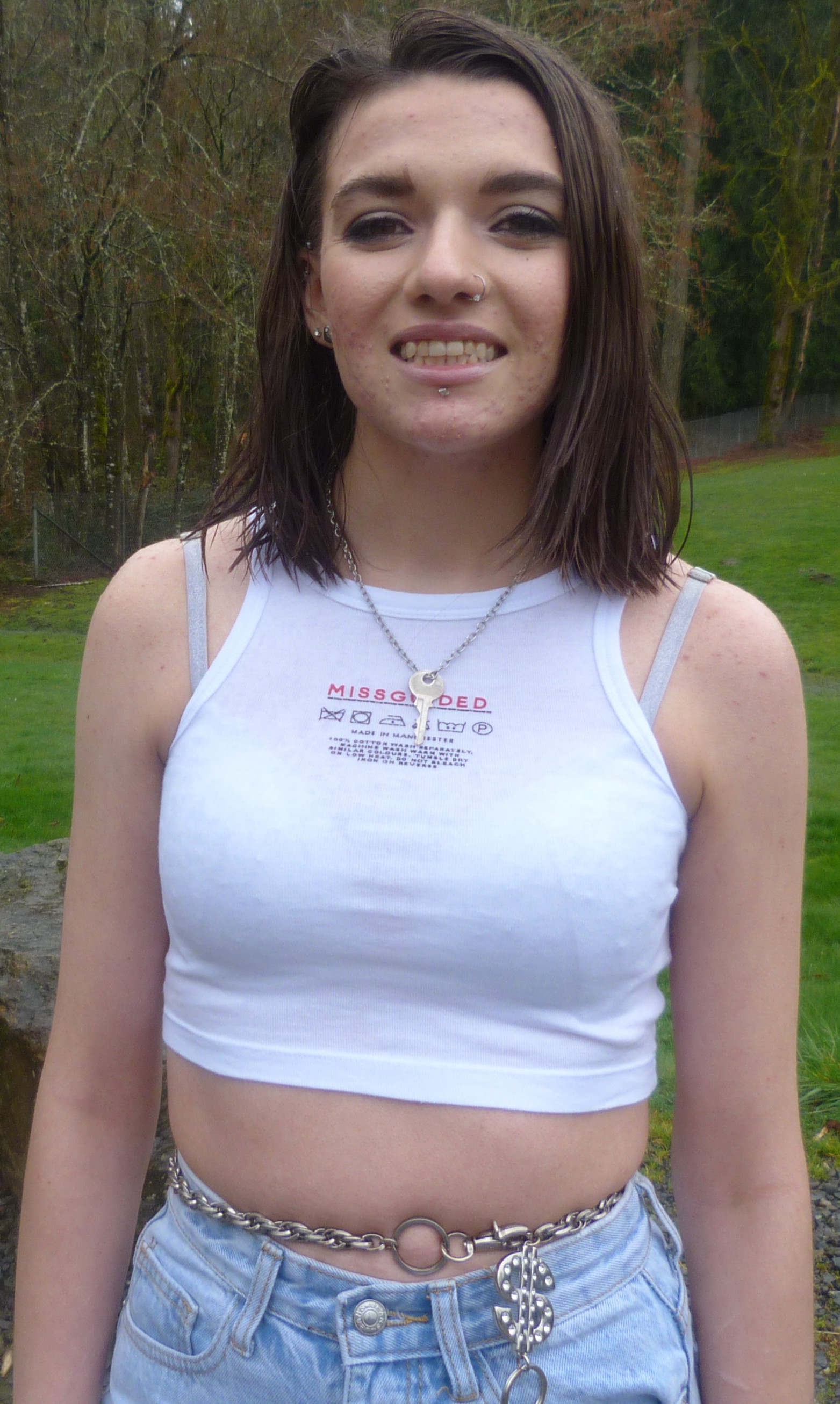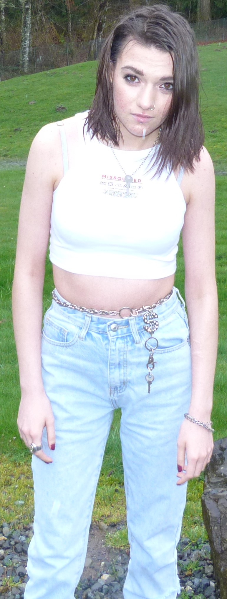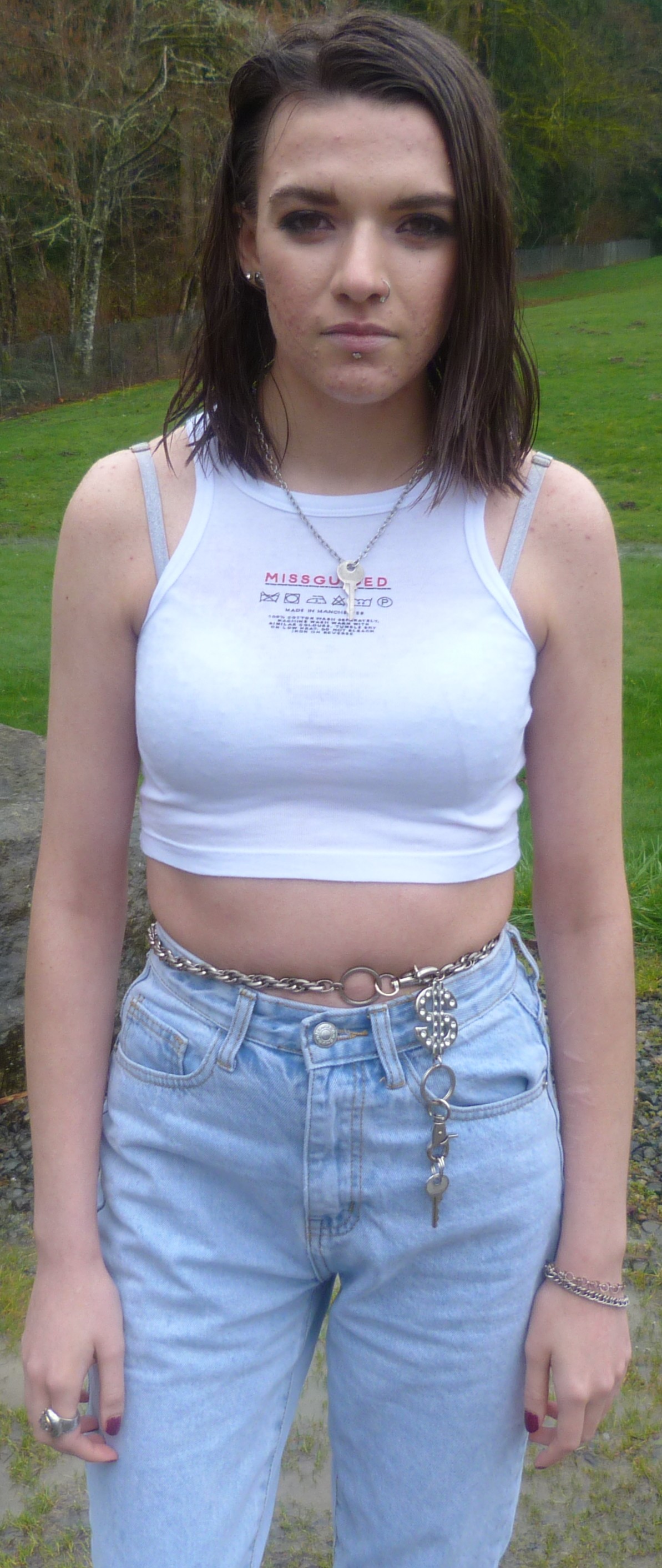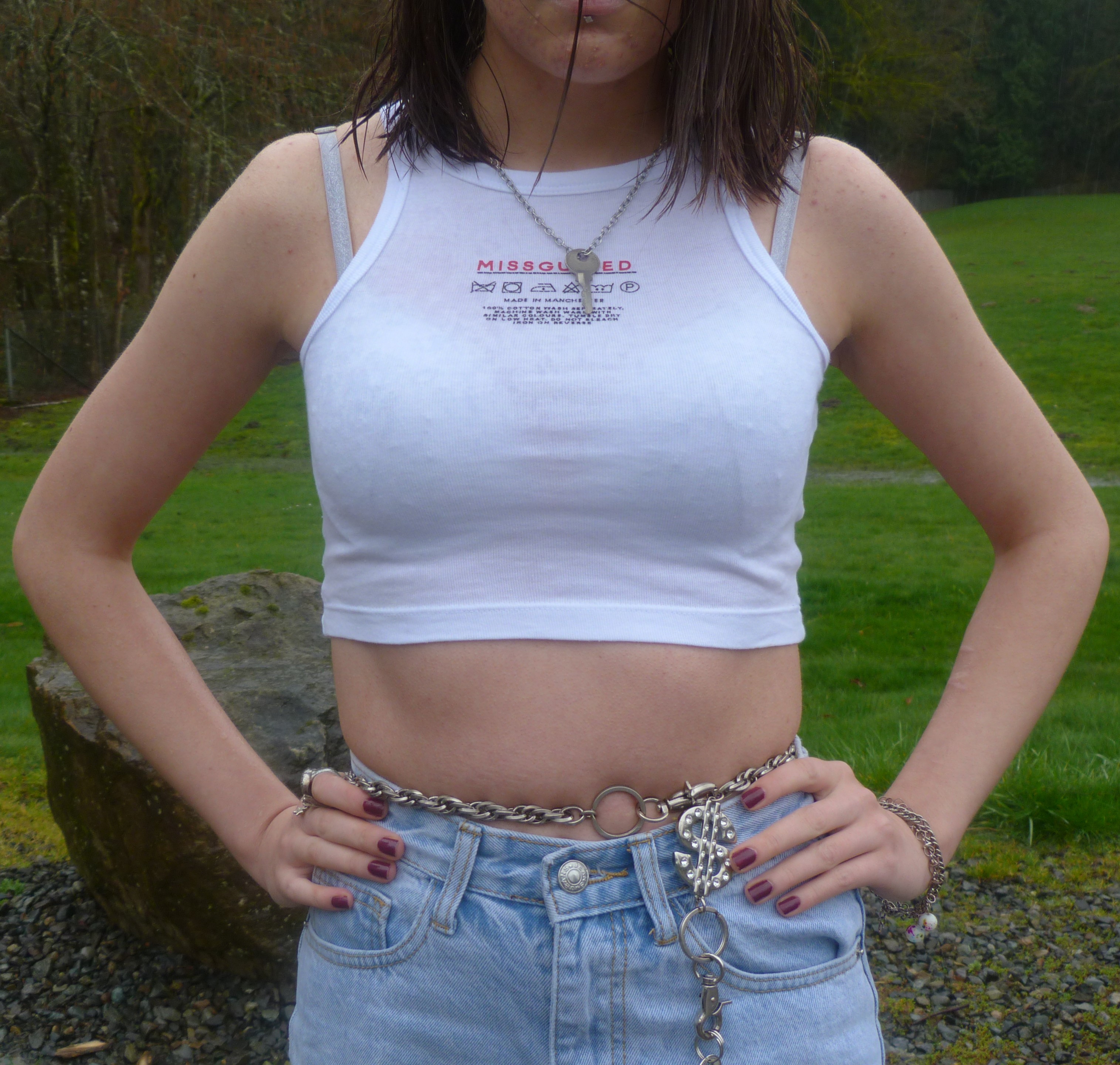 It’s a good afternoon here for me, I’ve been really liking my consistent nature with blogging these days. I blog 2-3 times a month these days, and I’m doing pretty well with it here at home. On my days off I don’t do much, just watch cartoons or listen to music. I finally finished Breaking Bad again, as well as Better Call Saul, and that was a good era of watching those. I don’t normally watch shows like that but I love them when I do, so much. Dang, this month has been kind of hard for me, and I’m trying to get back to good habits these days. I stopped smoking cigarettes for a while but now I’m back at them. I go through them so quickly, too. But I’ll get out of this, and find something that serves me. For example, Matt & I did this photoshoot together at the park down the road from my house, and it turned out okay but we had some lighting problems. It was raining outside, so that was interesting. I lost my camera’s microfiber cloth but it was okay since Matt had one in his car. I swear, even though Matt & I are taking a break from hanging out for a bit, we have a cool kind of chemistry with doing photoshoots together. I created a category for my photoshoots called by Matt, so you can check that out and see all of what we’ve done together so far. I have done so much for this blog just by myself, so it’s refreshing to do something with someone else. Care Label is good, I was wearing a key around my neck and a key around my waist, both being the same key actually. It originally goes to a lockbox, but I don’t even have one that works anymore. I have one pink lockbox with a broken lock, and that’s about it. I’ve mentioned a bunch of different silver keys in my blog posts over the past 6 months (or year) and they’re pretty significant to me, they hold a lot of metaphorical meaning. I mean, the lock on my bedroom door doesn’t even work yet I have a key for that. It’s on a necklace right now, I’ll post it sometime. I have like 10 different keys in terms of jewelry. Oh but how I love this top from MissGuided, I did an order for there earlier this spring. I just love this crop top, it has a care label on it, saying how to wash it & such. Let’s get into this photoshoot!