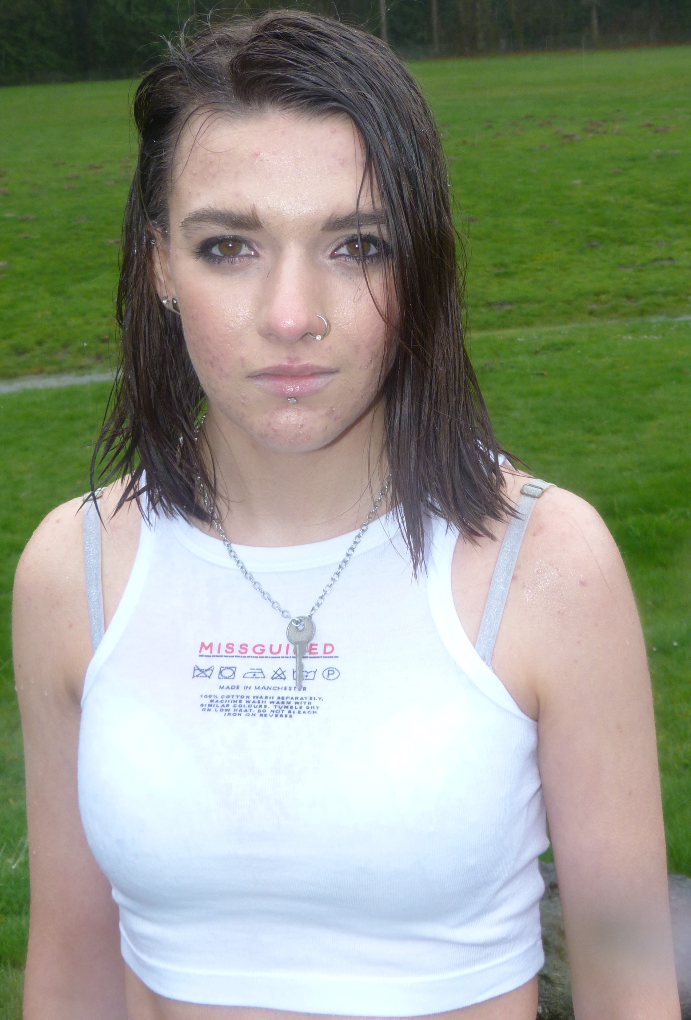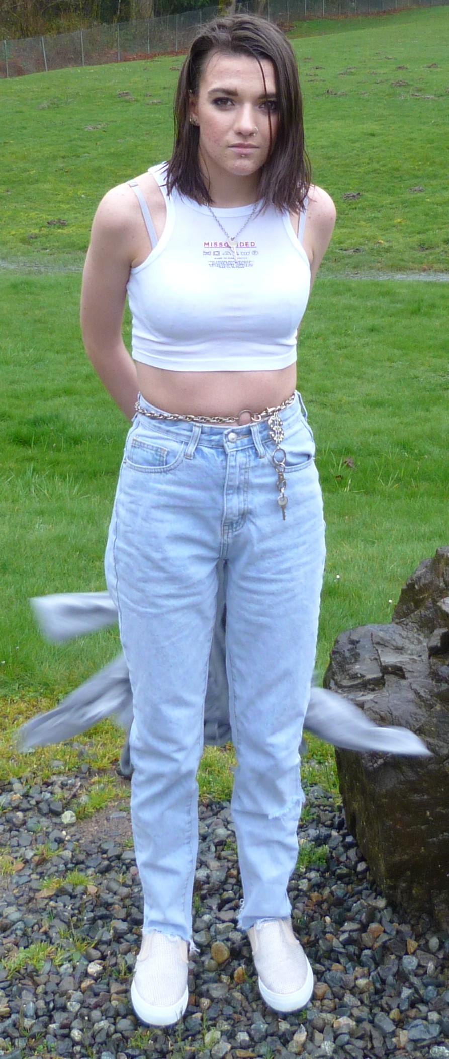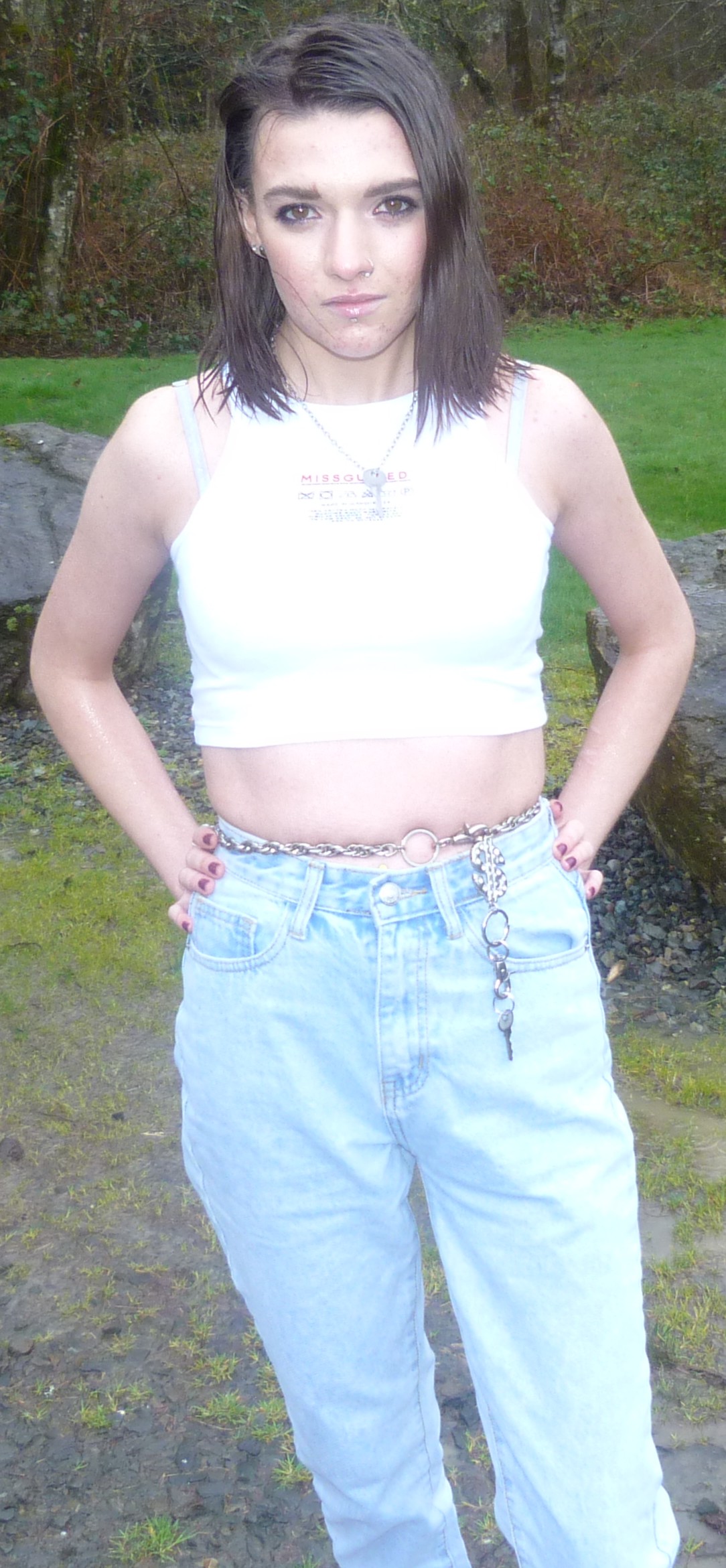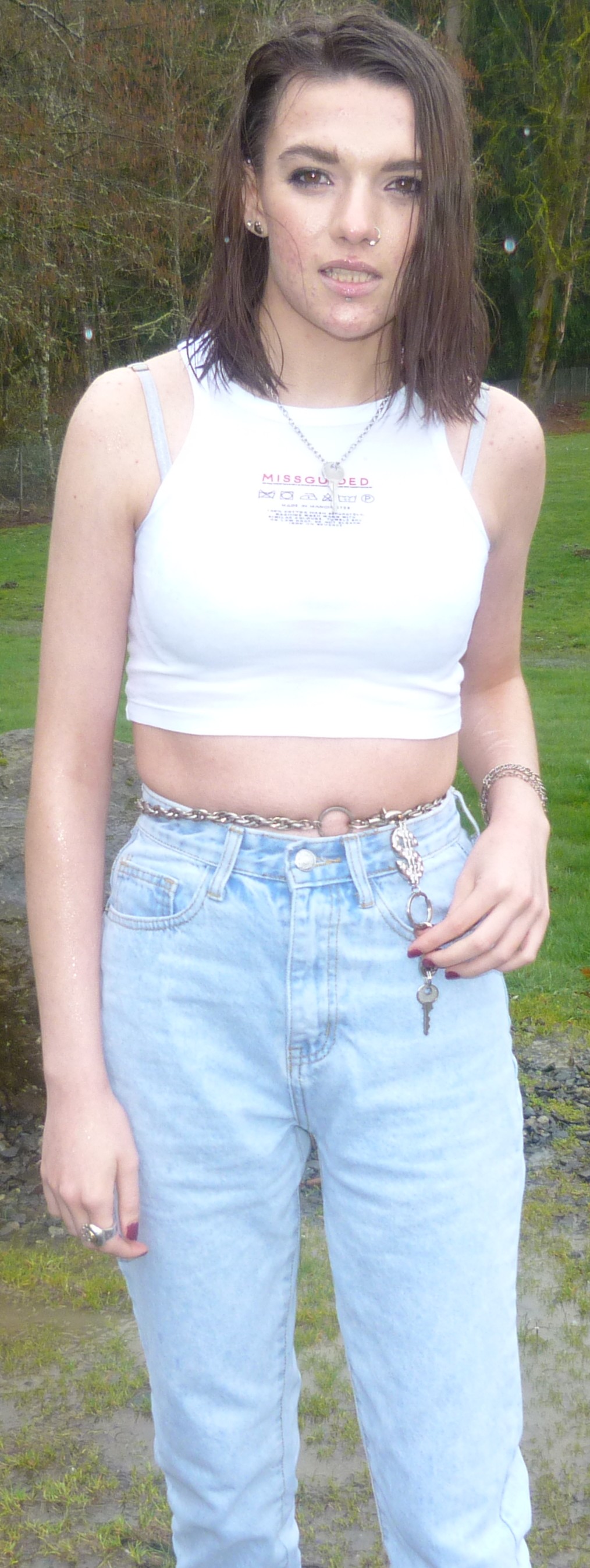 It’s a good afternoon here for me, I’ve been really liking my consistent nature with blogging these days. I blog 2-3 times a month these days, and I’m doing pretty well with it here at home. On my days off I don’t do much, just watch cartoons or listen to music. I finally finished Breaking Bad again, as well as Better Call Saul, and that was a good era of watching those. I don’t normally watch shows like that but I love them when I do, so much. Dang, this month has been kind of hard for me, and I’m trying to get back to good habits these days. I stopped smoking cigarettes for a while but now I’m back at them. I go through them so quickly, too. But I’ll get out of this, and find something that serves me. For example, Matt & I did this photoshoot together at the park down the road from my house, and it turned out okay but we had some lighting problems. It was raining outside, so that was interesting. I lost my camera’s microfiber cloth but it was okay since Matt had one in his car. I swear, even though Matt & I are taking a break from hanging out for a bit, we have a cool kind of chemistry with doing photoshoots together. I created a category for my photoshoots called by Matt, so you can check that out and see all of what we’ve done together so far. I have done so much for this blog just by myself, so it’s refreshing to do something with someone else. Care Label is good, I was wearing a key around my neck and a key around my waist, both being the same key actually. It originally goes to a lockbox, but I don’t even have one that works anymore. I have one pink lockbox with a broken lock, and that’s about it. I’ve mentioned a bunch of different silver keys in my blog posts over the past 6 months (or year) and they’re pretty significant to me, they hold a lot of metaphorical meaning. I mean, the lock on my bedroom door doesn’t even work yet I have a key for that. It’s on a necklace right now, I’ll post it sometime. I have like 10 different keys in terms of jewelry. Oh but how I love this top from MissGuided, I did an order for there earlier this spring. I just love this crop top, it has a care label on it, saying how to wash it & such. Let’s get into this photoshoot!