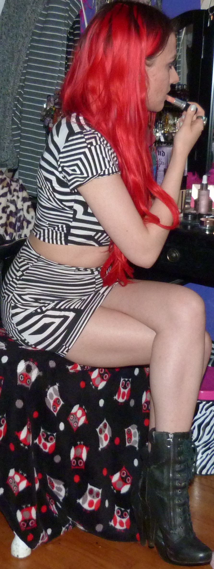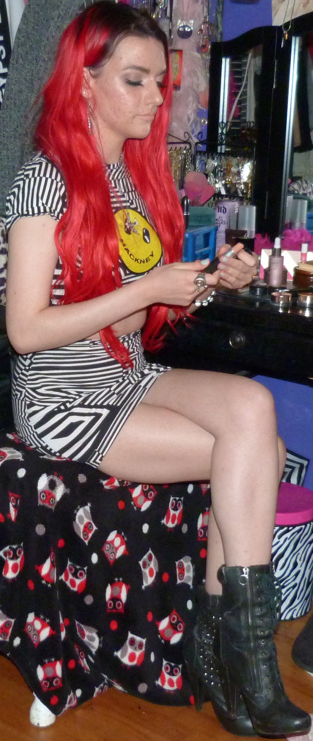 I ended up doing the cutest thing with this photoshoot. I might’ve ended up flashing the camera slightly in a few of the pictures, so I copied the ‘Hackney’ logo from one of the pictures and put it over my skirt in a bunch of pictures! Funny and cute, I like the way it ended up looking. It ended up being perfect for the photoshoot and everything. Anyway, I sure love getting to do photoshoots like this. I thought the red hair was perfectly timed to get in my second post of June, and I can’t wait to see what photoshoots I’m going to do for July. It’s been half a year of doing two posts a month and I’m doing pretty good with all of it. I love that the post I did right before this was another blonde-hair, merchandise photoshoot – you can check that out here if you haven’t read it yet! That was a good outfit for June, but so was this. I’m not exactly sure how warm it is out here sometimes but it’s definitely getting a lot warmer. Finally it’s seeming to transition, I think we had a little too cold of a month until more recently. It’ll be cool to see what happens next, in the last week I haven’t done too much but I’m glad I’m already getting up my second blog post for this round. I’m still really into makeup and stuff these past few months, that’ll be good to do next. Finally, glam with false lashes on and everything! My glue was too old and I had to order a new one, and that was the reason why I didn’t wear falsies for my last photoshoot. That’s too bad, but I got them on for this one. I also think it’s crazy that I haven’t gotten my Glam Bag yet this month, but I really hope I will! They let us pick some of our own products this month which was cool – I wanted to include the bag in this photoshoot but it didn’t show up in time, so maybe for the next shoot or something! The details for my makeup look for this shoot are in the next paragraph. I also sure really love the first two pictures in the second row of the collage below, those turned out pretty rad! I love this photoshoot so much.
