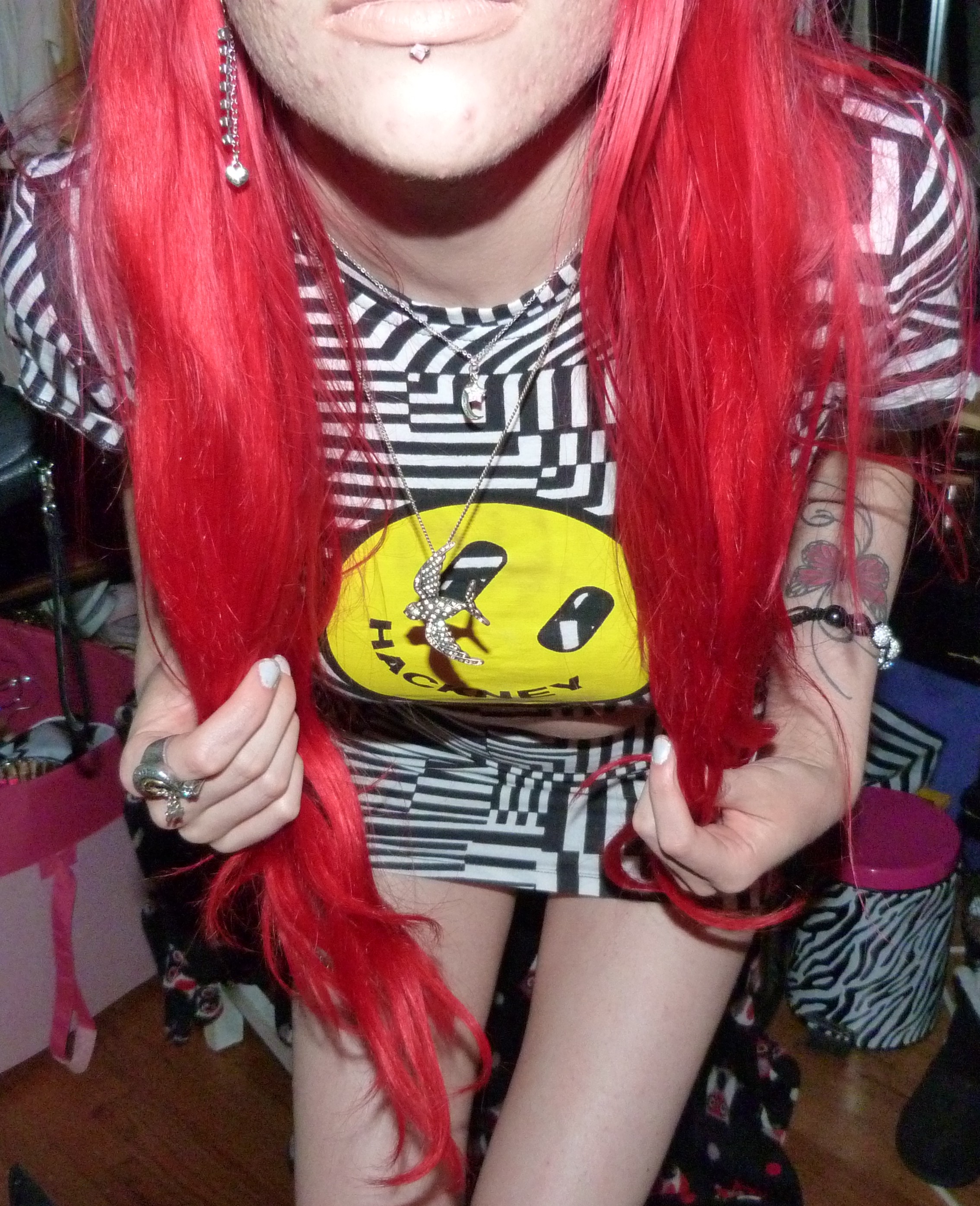 I’m so excited about how this photoshoot turned out, I finally put together something good like this with my extensions in and everything. I love my red hair with all my heart, it’s been red since 2018 and I’m still not done with it! Especially since I have these red extensions I want to utilize more and more as I go. I am totally good with my hair fading to blonde sometimes, but I do love getting to re-vamp and re-dye my hair back to red sometimes. This time, I ended up using Lime Crime’s red hair dye in the color Valentine. I have dyed my hair with this one before, too, like in my other blog post Solved the Problem which is from August 2019. The color ended up matching my extensions, too, but I didn’t use them as much back then. I love my red extensions, they are TestaRossa ones from Bellami in 22″ that I got that same year, bright red. I use all of them when I use them, and it turns out super rockstar I love it. The last time I ended up using my extensions in a photoshoot was this year, in January, in my photoshoot I called Stoke the Fire. I loved that outfit and everything a lot, and I love when I get to do merch, but it was even more fun putting this ‘Hackney’ outfit together and getting it to work really well in this shoot! I love getting to do more on the glam side types of photoshoots and outfits, that’s always super cool with my ‘urban glam’ style overall. I also ended up doing a slightly longer photoshoot than usual with this one, and ended up getting like 54 pictures! So that’s pretty cool this time, let’s get into the blog post! Read more to see more of the photoshoot and all as well.