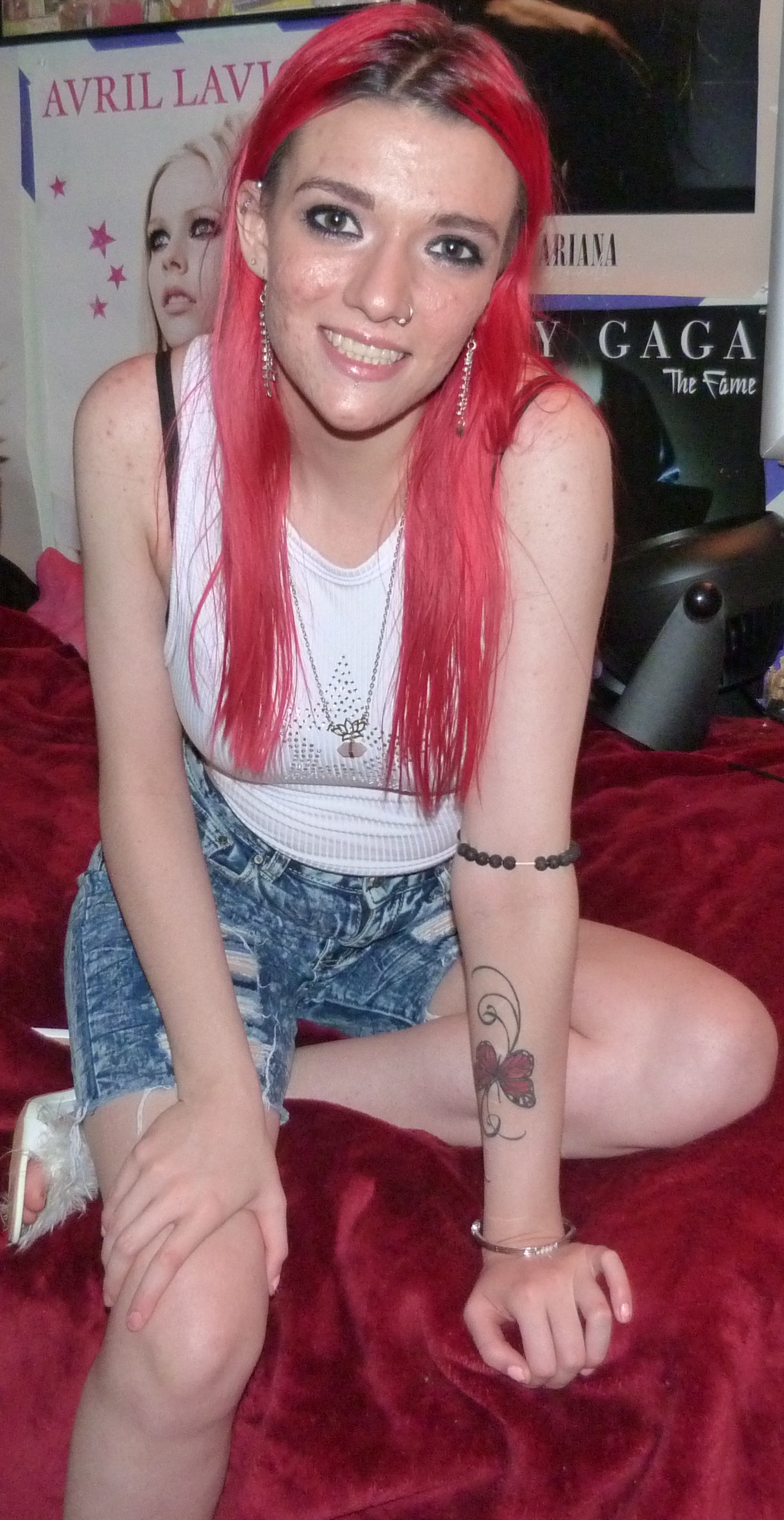 - Rhinestone dangly earrings with a heart & star charm on either one that my stepmom made for me (with her BossKty line) recently with rhinestone chain pieces I had leftover from something else.