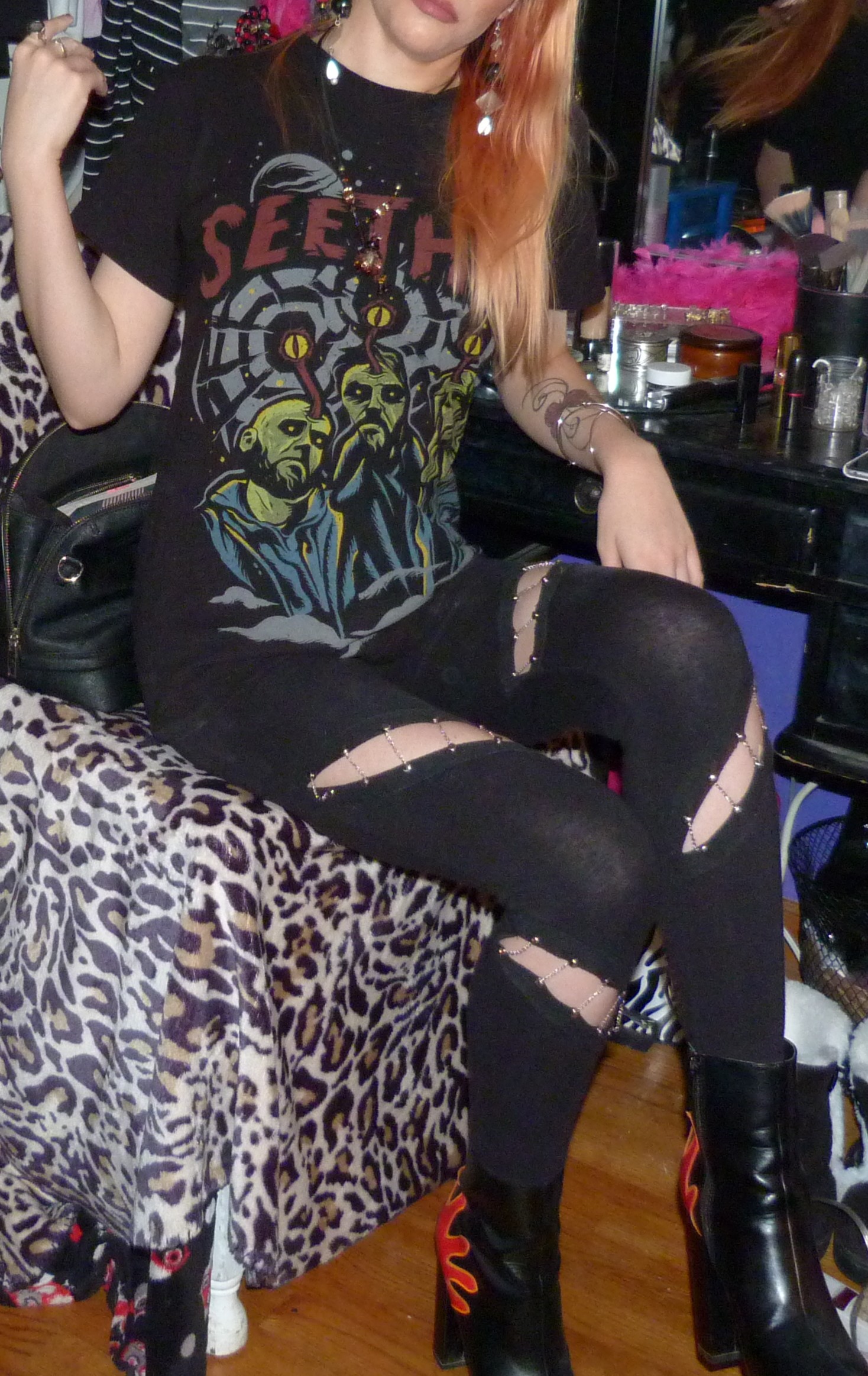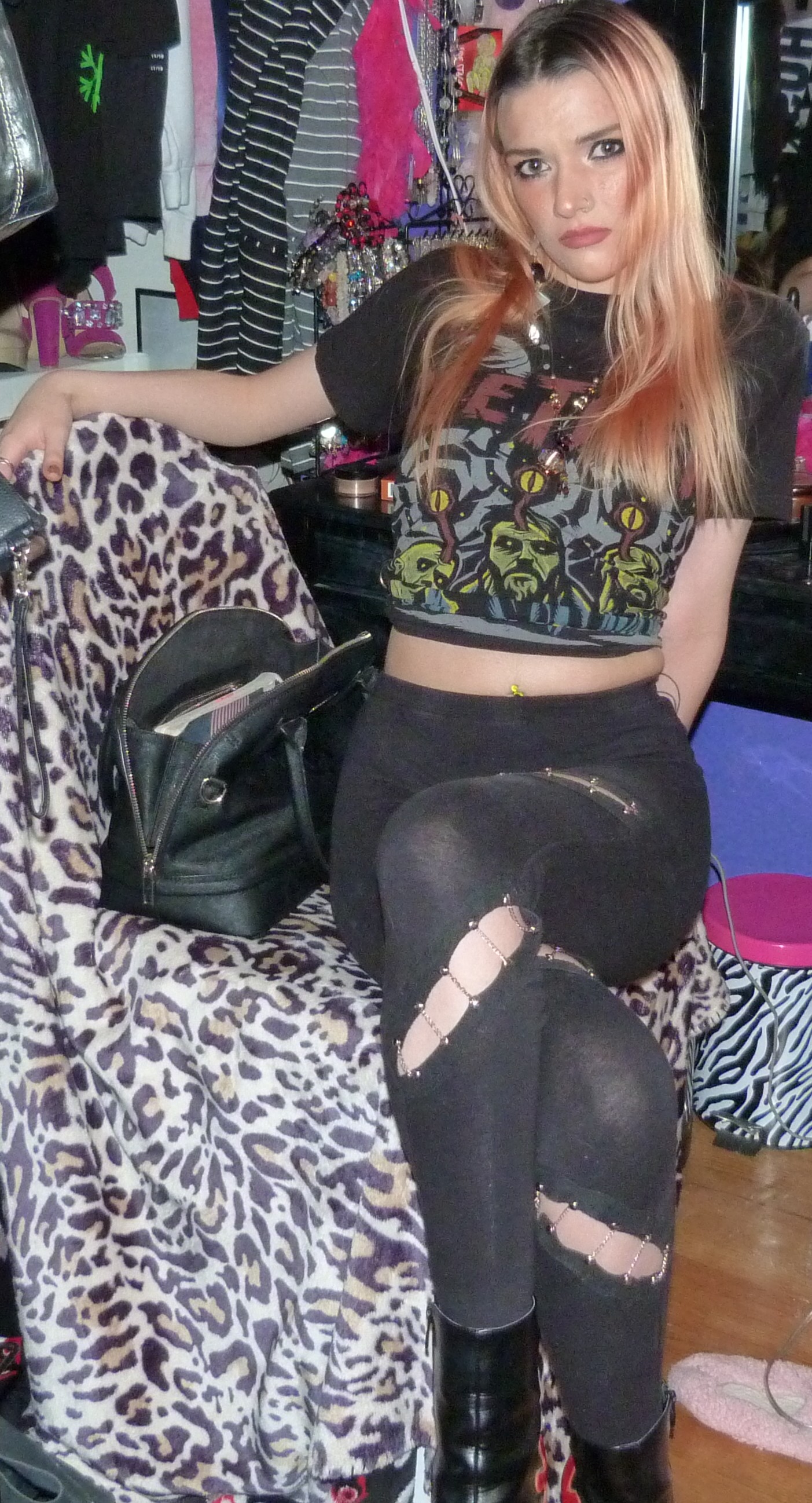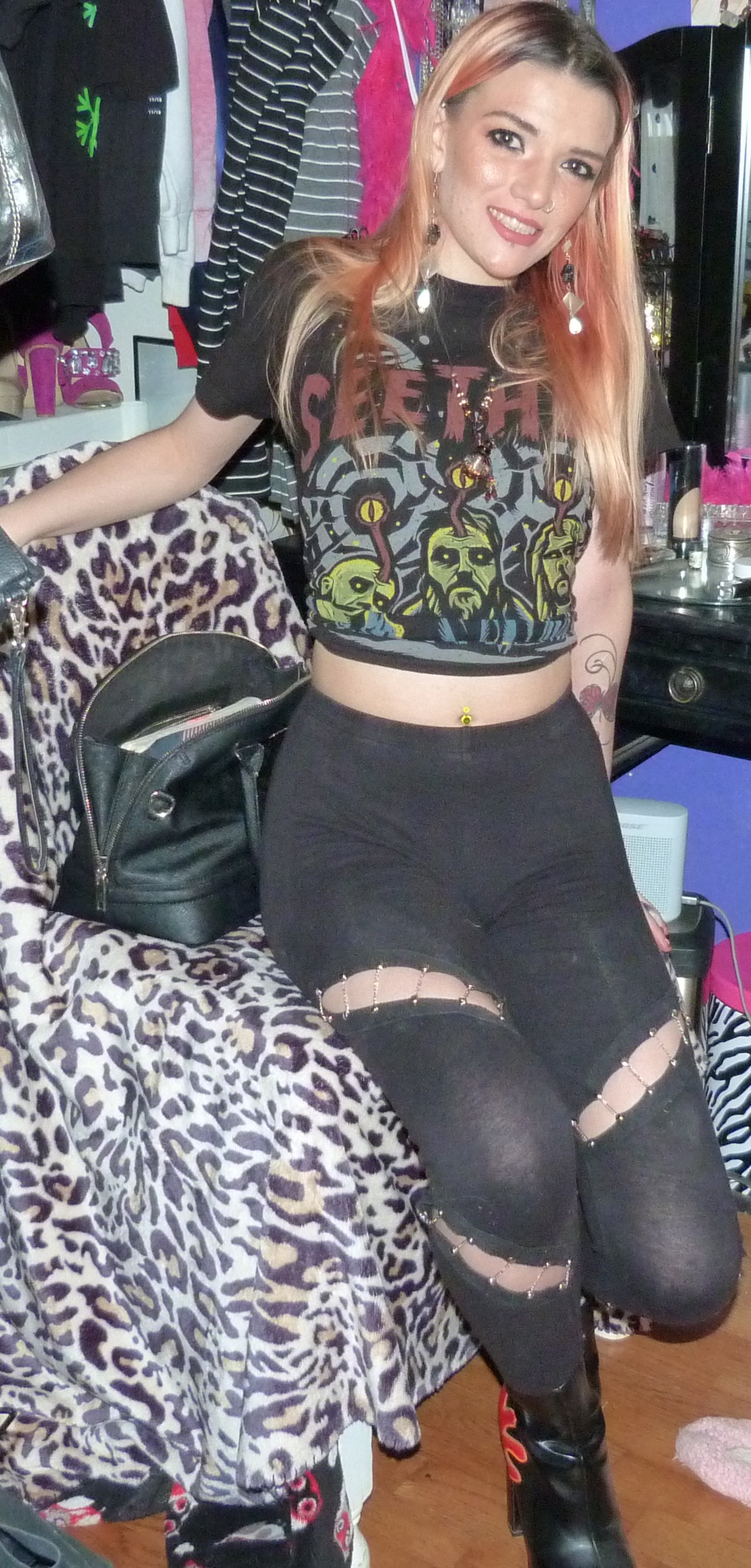 • Chain leggings that I got when I was 15 from Boohoo online. My dad recently replaced a bunch of the chains that were broken, but then I found a rip in them when I was doing this shoot! Oh well!