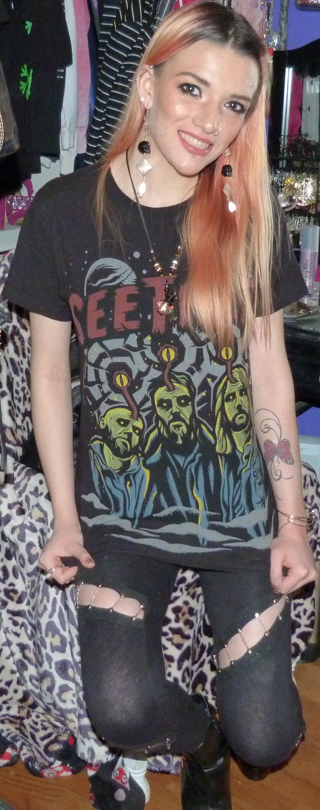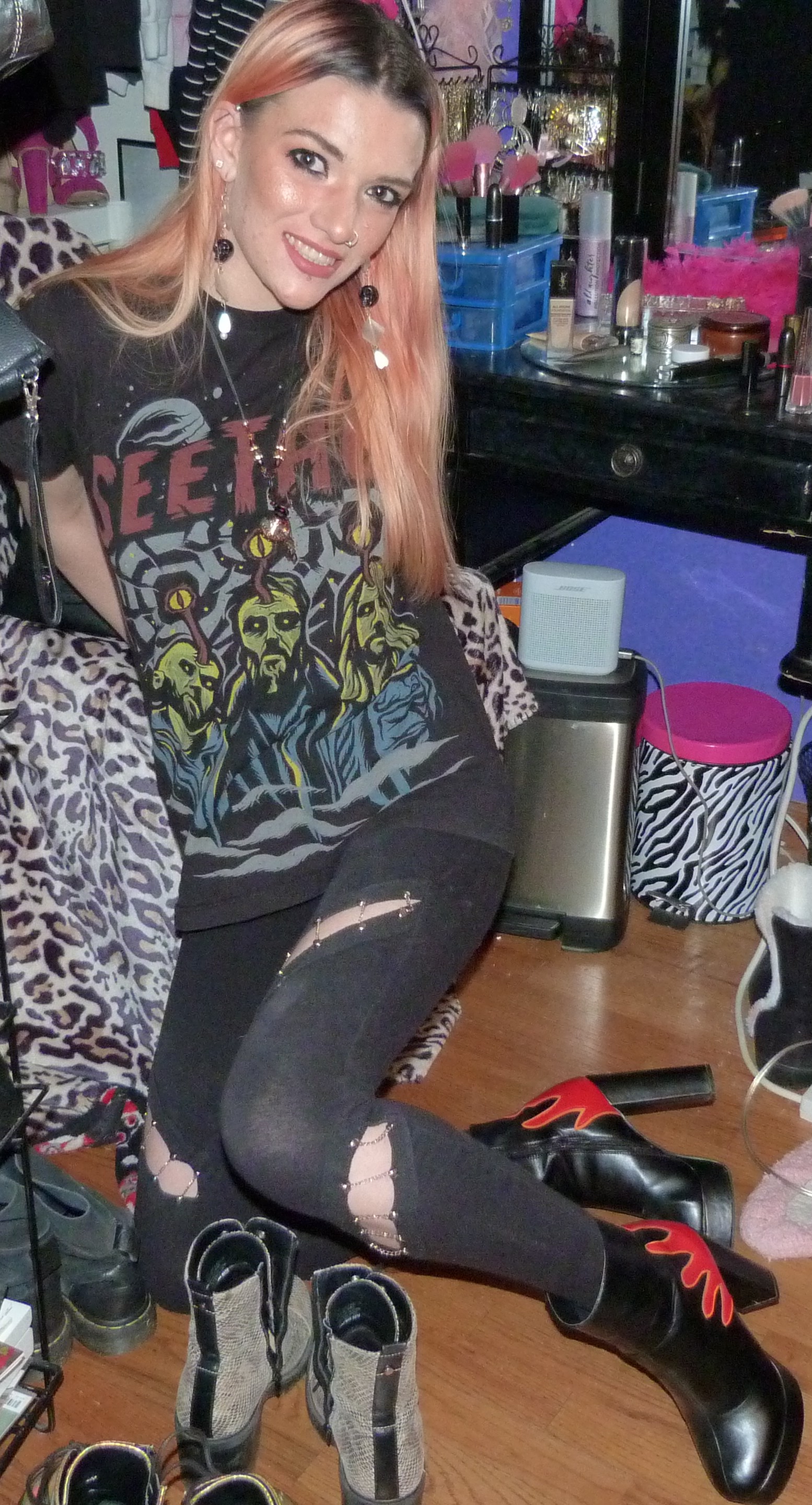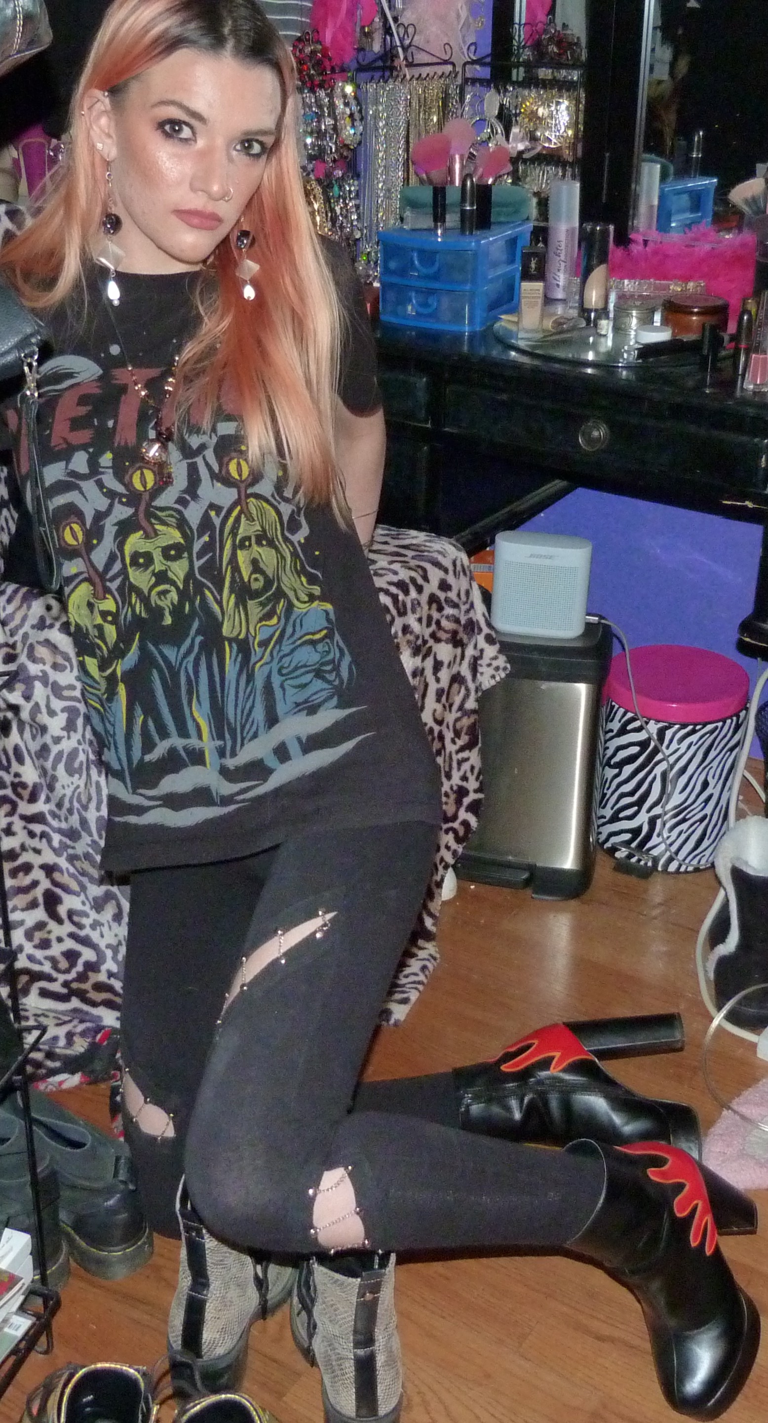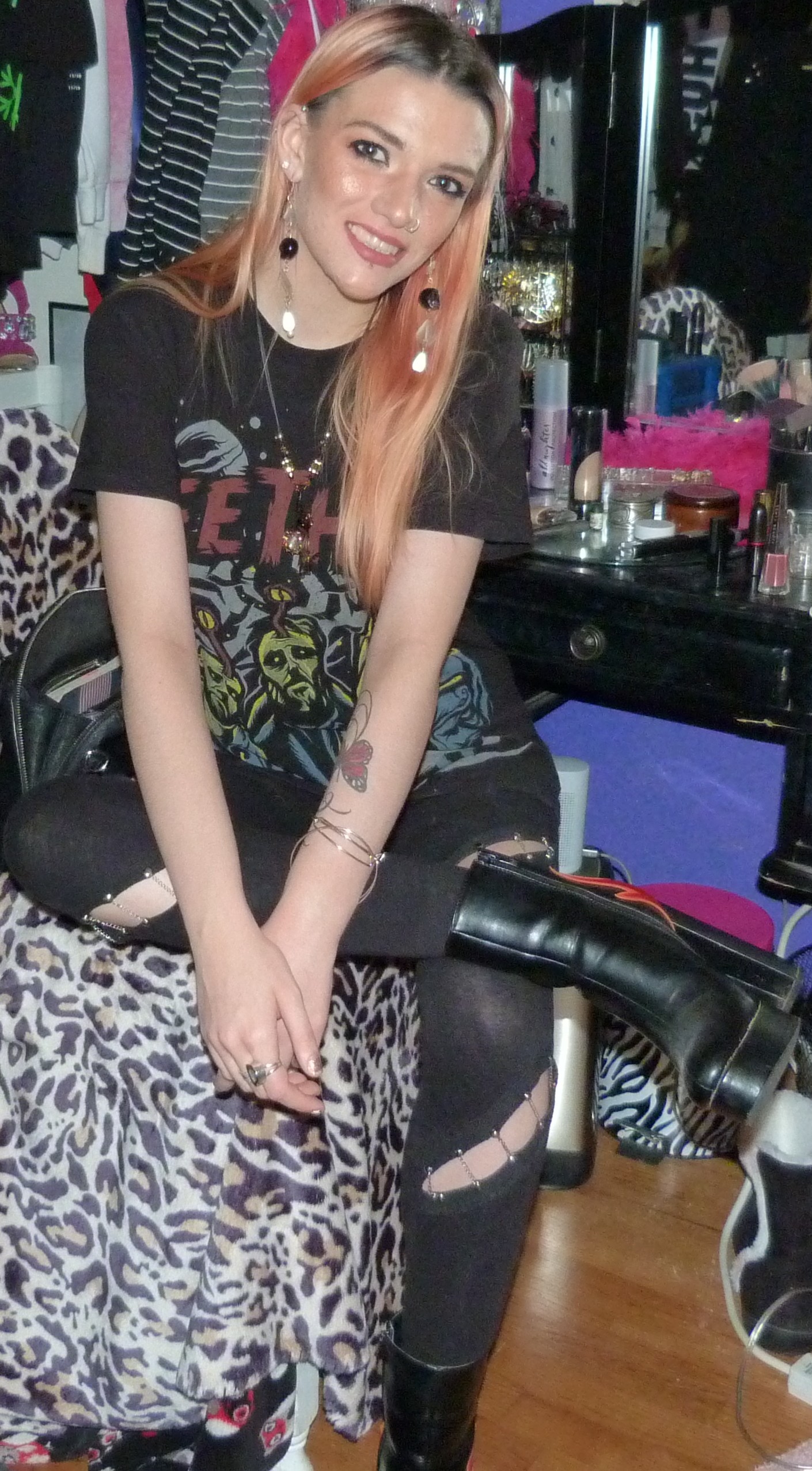 • Chain leggings that I got when I was 15 from Boohoo online. My dad recently replaced a bunch of the chains that were broken, but then I found a rip in them when I was doing this shoot! Oh well!
