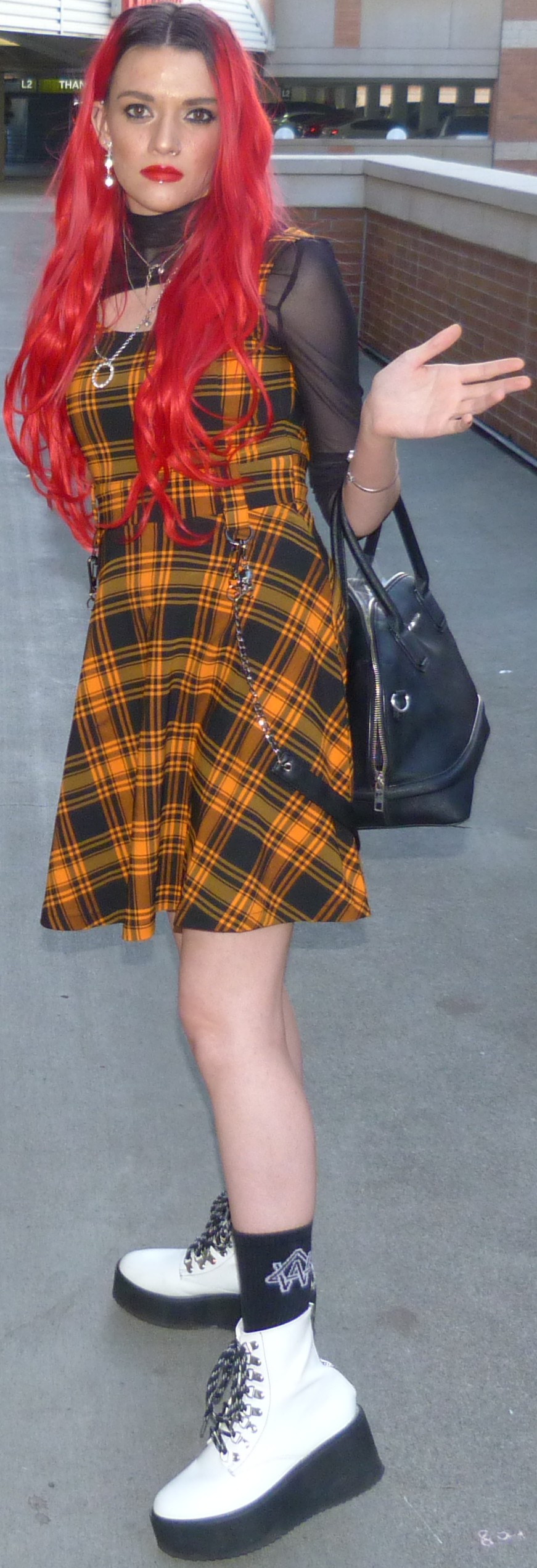 - Think Twice Platform Boots $78 from Dolls Kill in January 2020. I always love these boots of mine. They’re one of my favorite pairs of shoes that I have. They looked pretty fun with this dress too!