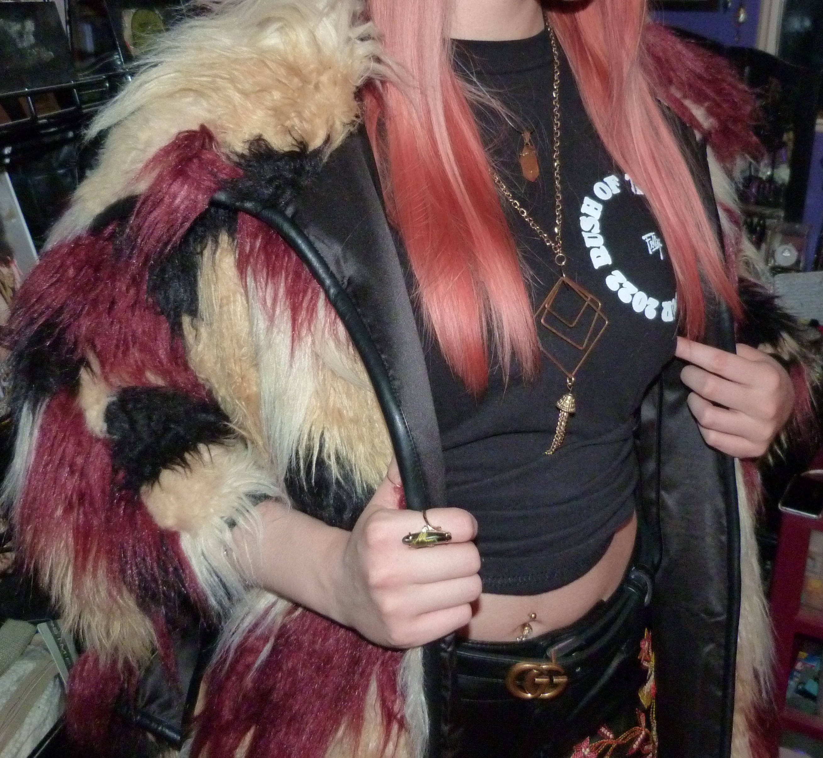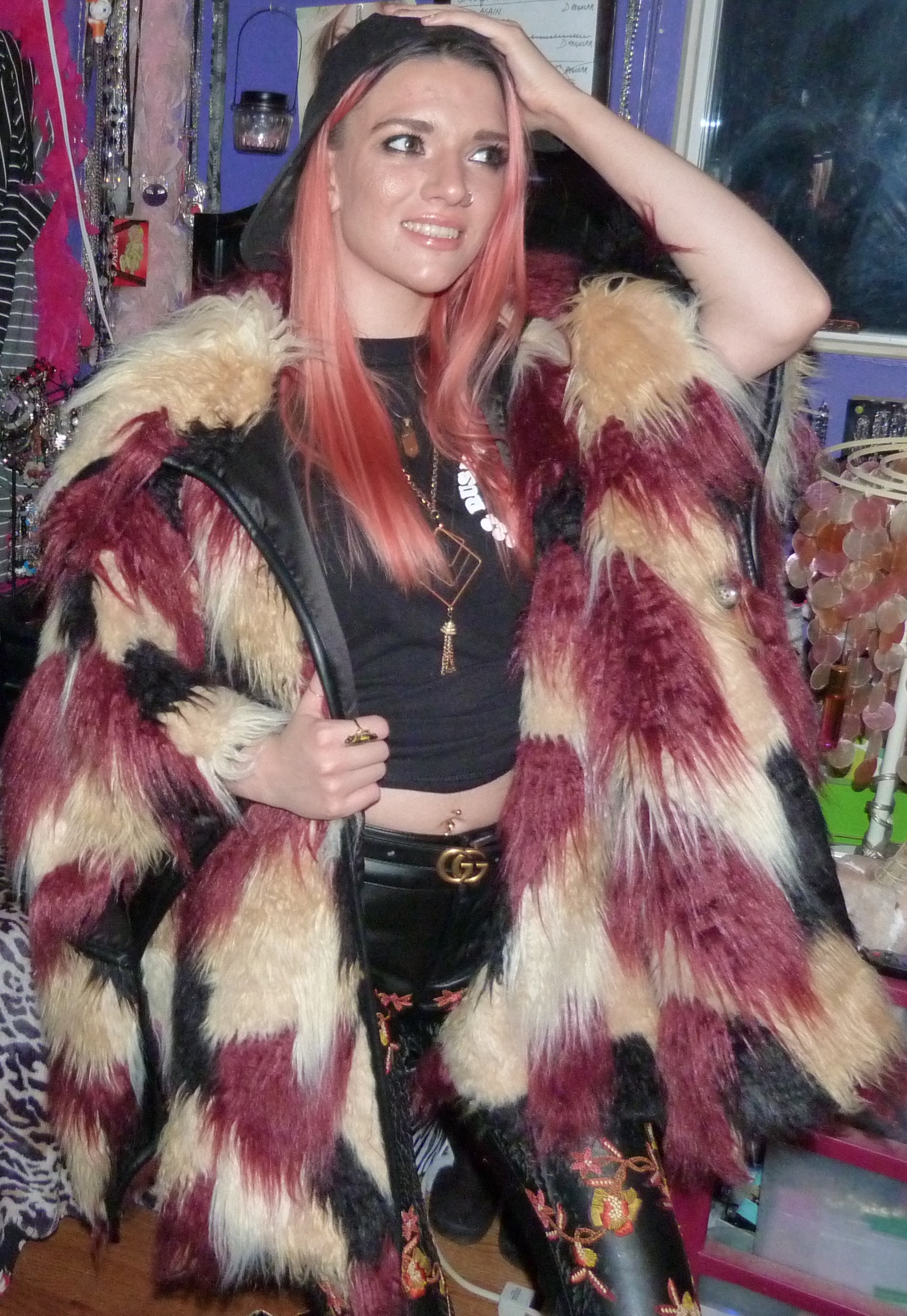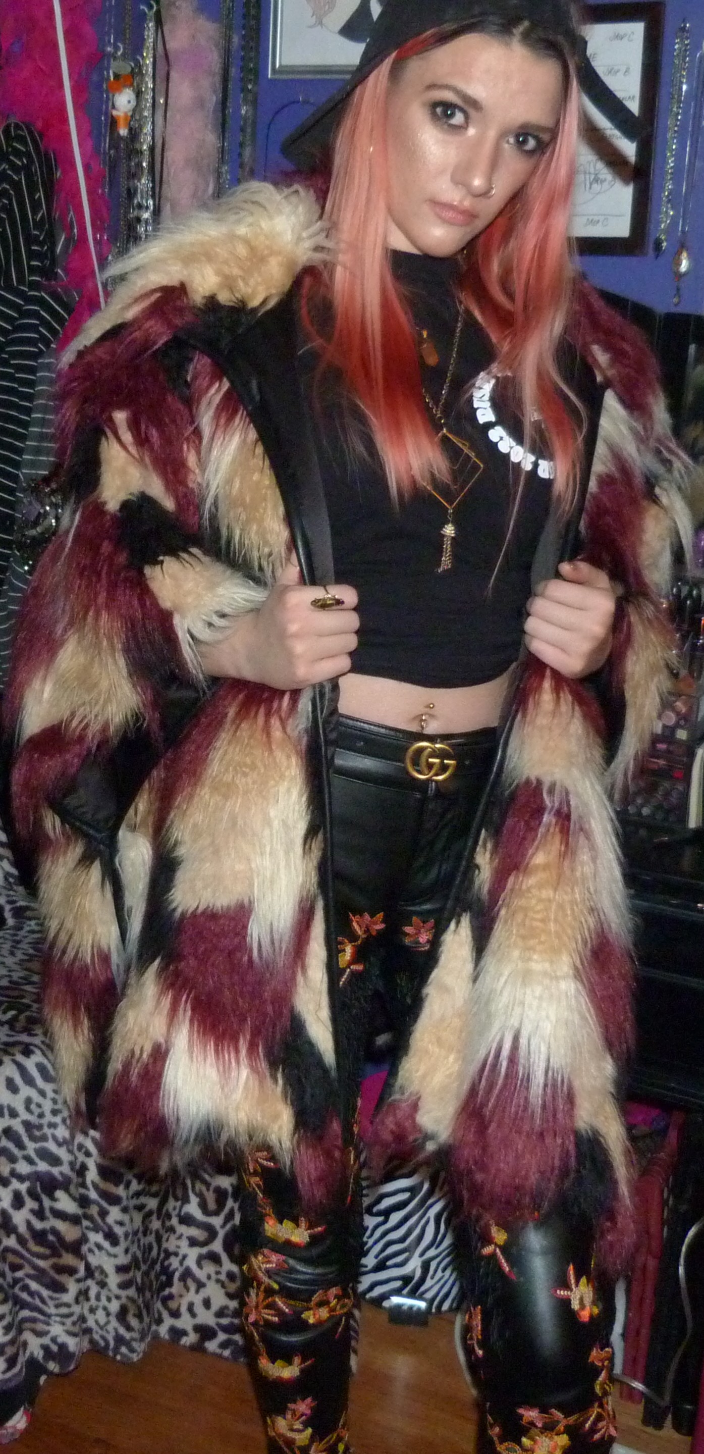 - Faux fur red, cream & black colored coat from like 2016 (Pictured Later) that I got from Nasty Gal. I also wore it twice in 2017, first in Bound To You and then in Culture Shock. January-December!