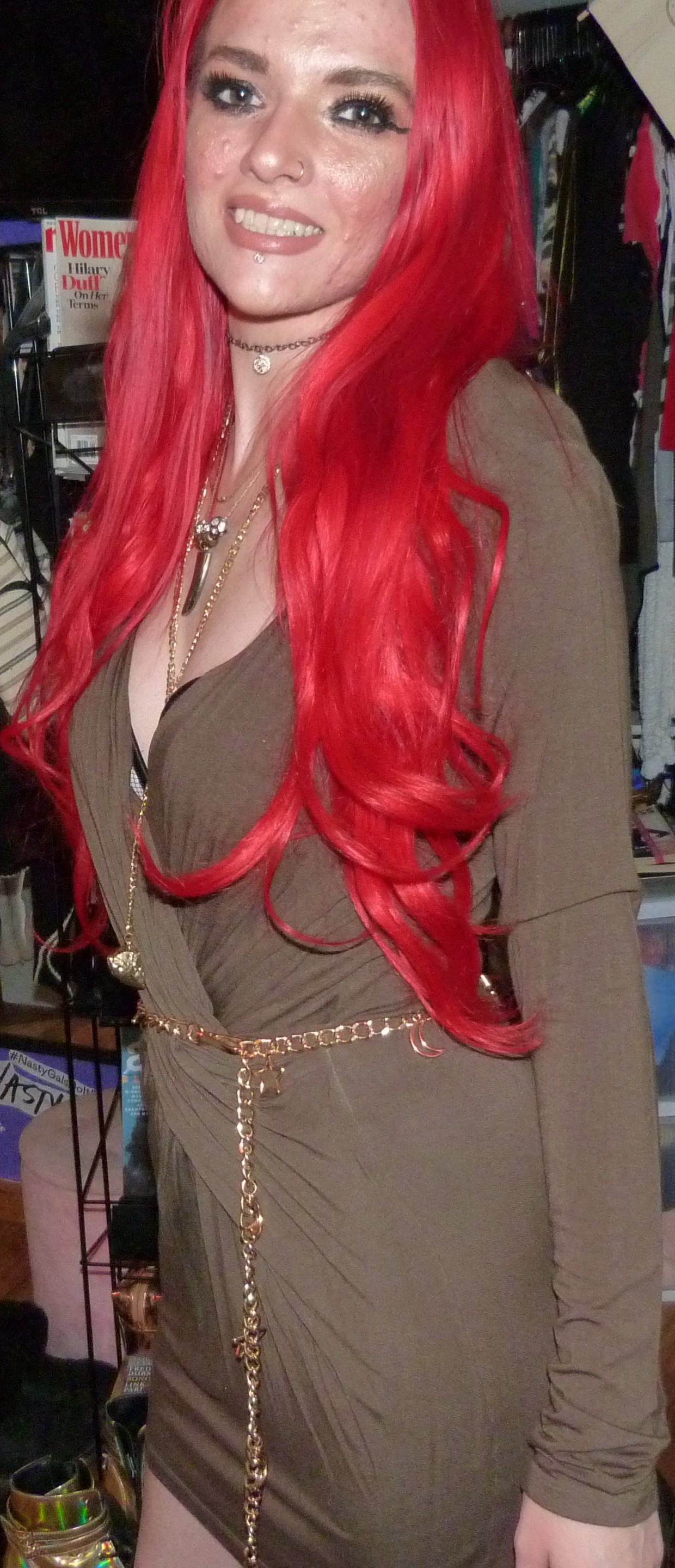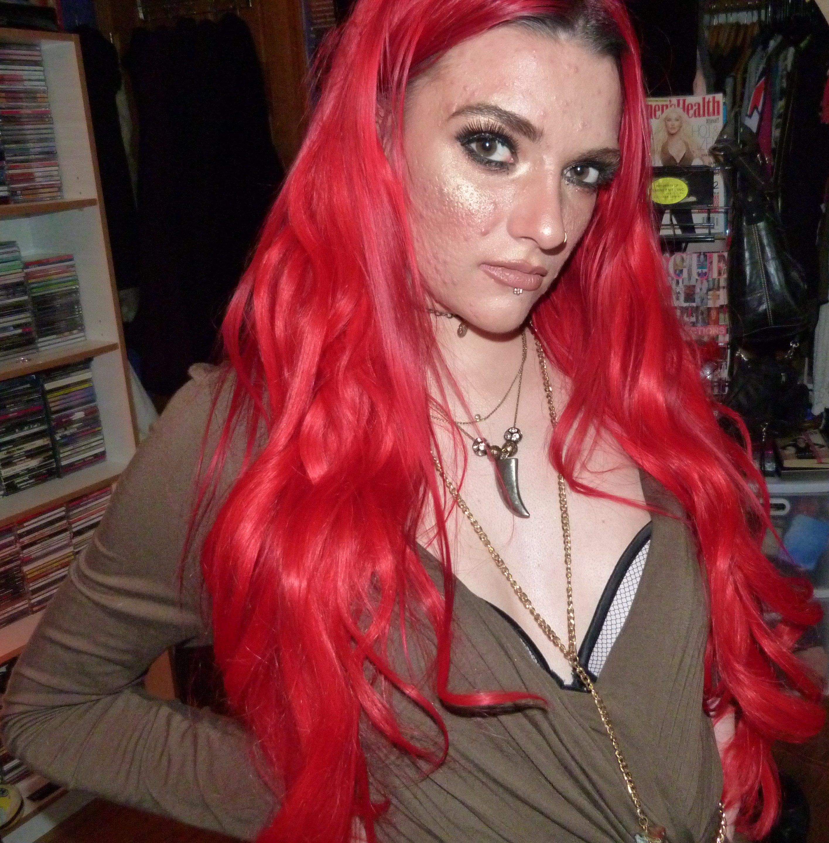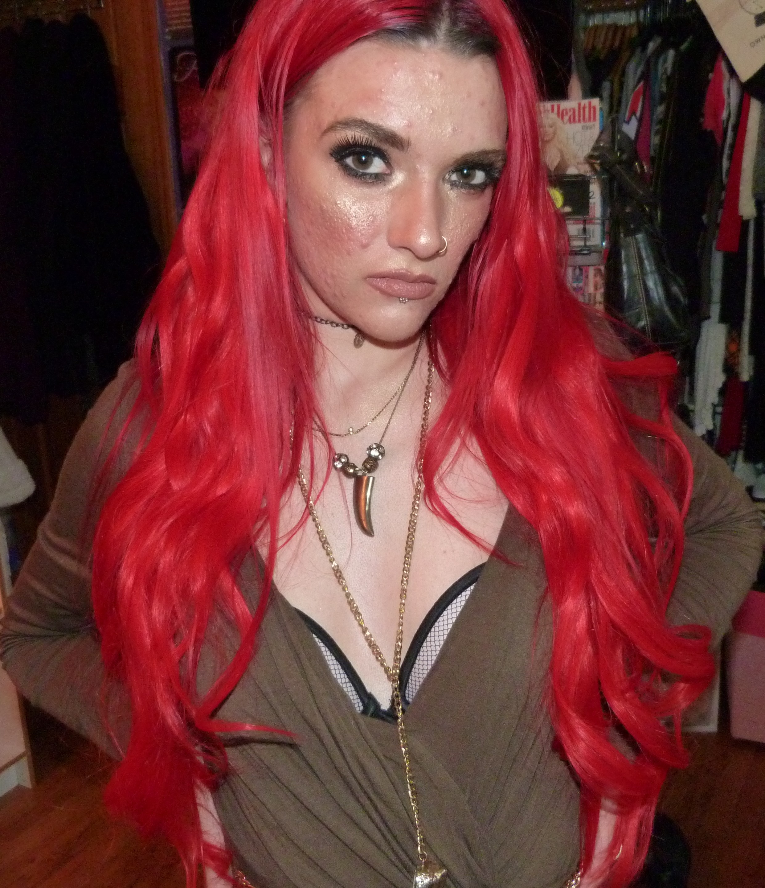 - Natalie Eva Marie 22″ TestaRossa Bright Red Hair Extensions $290 from Bellami Hair that I LOVE! So far I’ve worn them, at first in a 2019 post, & in 2022’s Stoke the Fire, Hackney, Pull Up & Killstar.