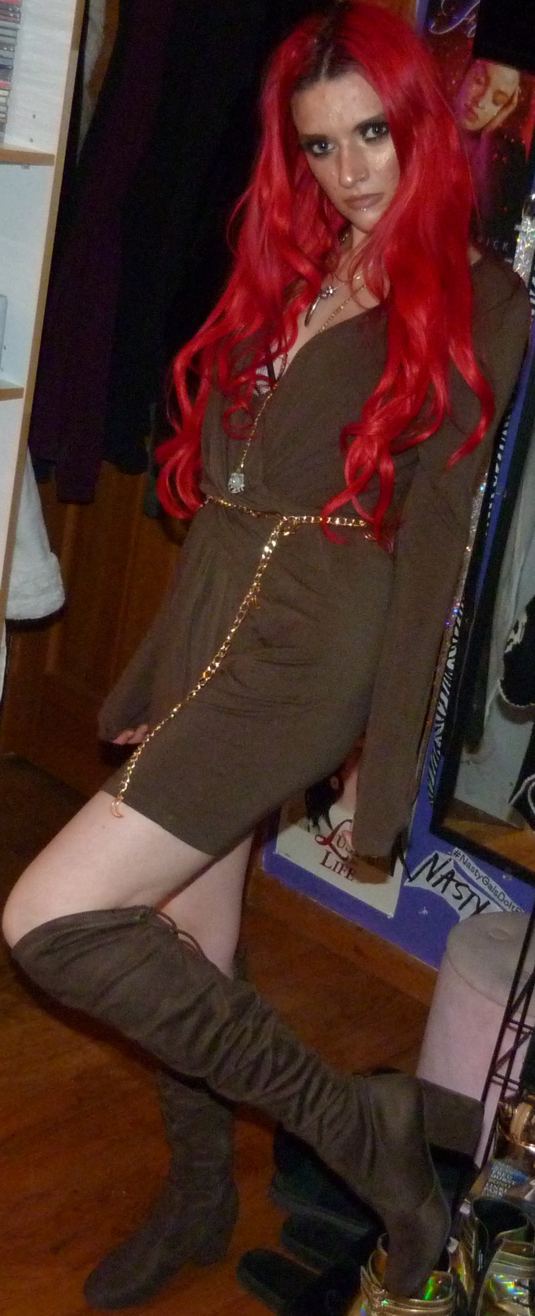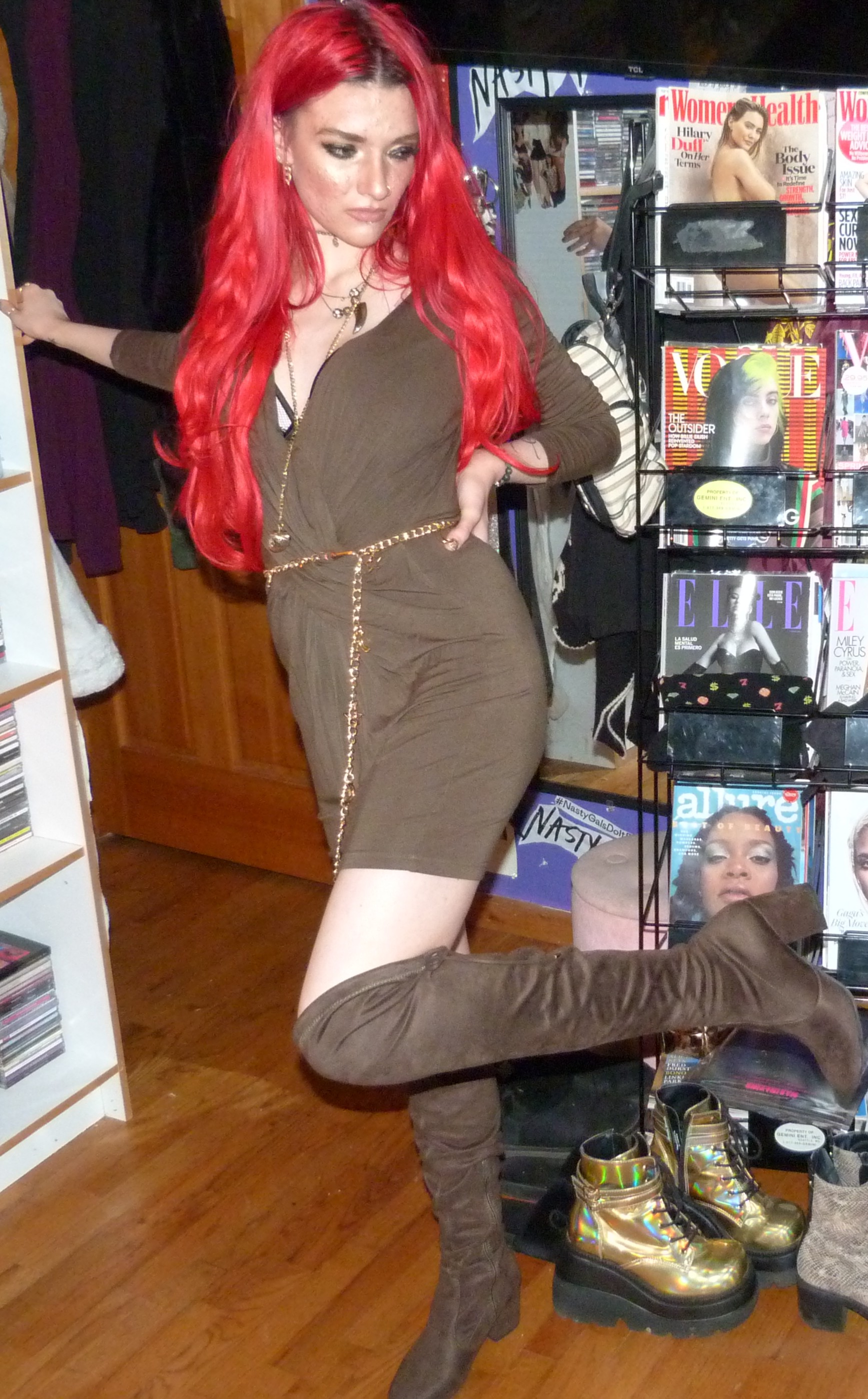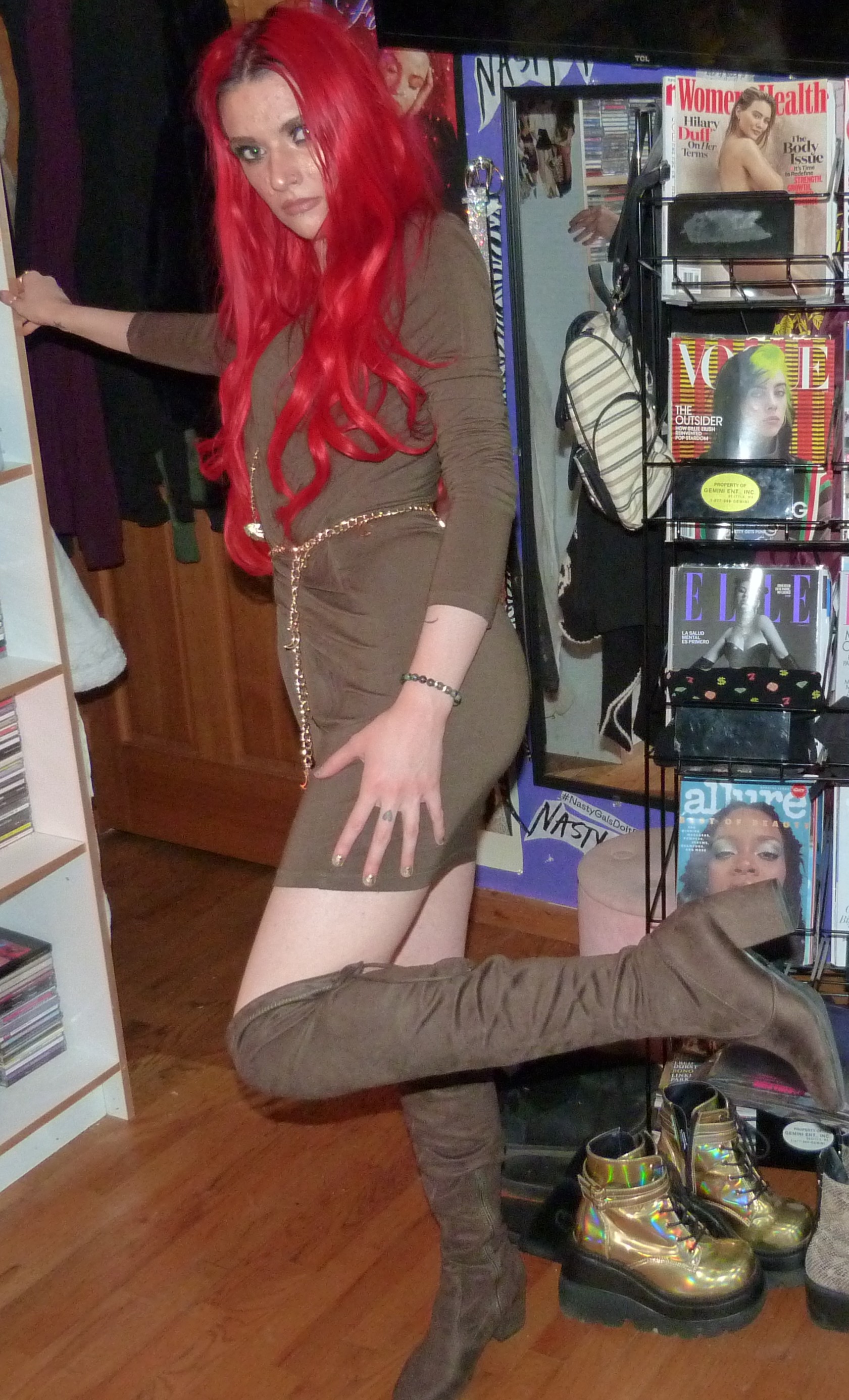 That’s it for this blog post, I’m glad about how it turned out! The dress looked green enough in the end with my lighting so that’s awesome, that’s what I was hoping for at least. I love wearing my extensions, I just got my hair redyed last week which was great! So far, this is now the 6th blog post I’ve worn my extensions in, which is crazy because I want to wear them more often. So I’m going to try this year to wear them more, maybe dye my hair more, and see what happens because I would love to use them more often! I wore them to the club the other day too, it was perfect with my outfit. You can find pictures of that on my Instagram probably, maybe check that out to see some pictures from the club & concerts I’ve been posting and everything! I love going to the club Trinity in Seattle with my friend Kwame, it’s awesome every single week. We’ll see how the rest of this month goes, hopefully I can do more photoshoots with my extensions but I would just love to catch up on that. Go back to outfit details to see some of the other photoshoots I wore these extensions in, it was 4 last year and they turned out pretty good. Once in 2019, and then this is my first time this year using them. But I really love my bright red hair with all my heart and I’m always happy when it’s back! Thanks so much for checking me out, I’ll see you guys later, hopefully with more red hair again too!