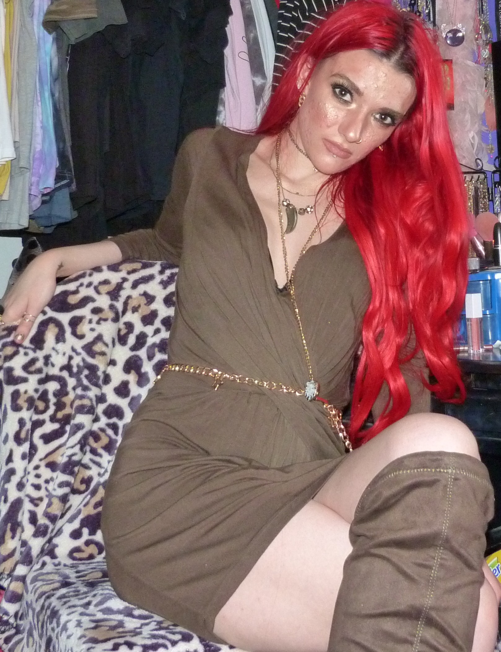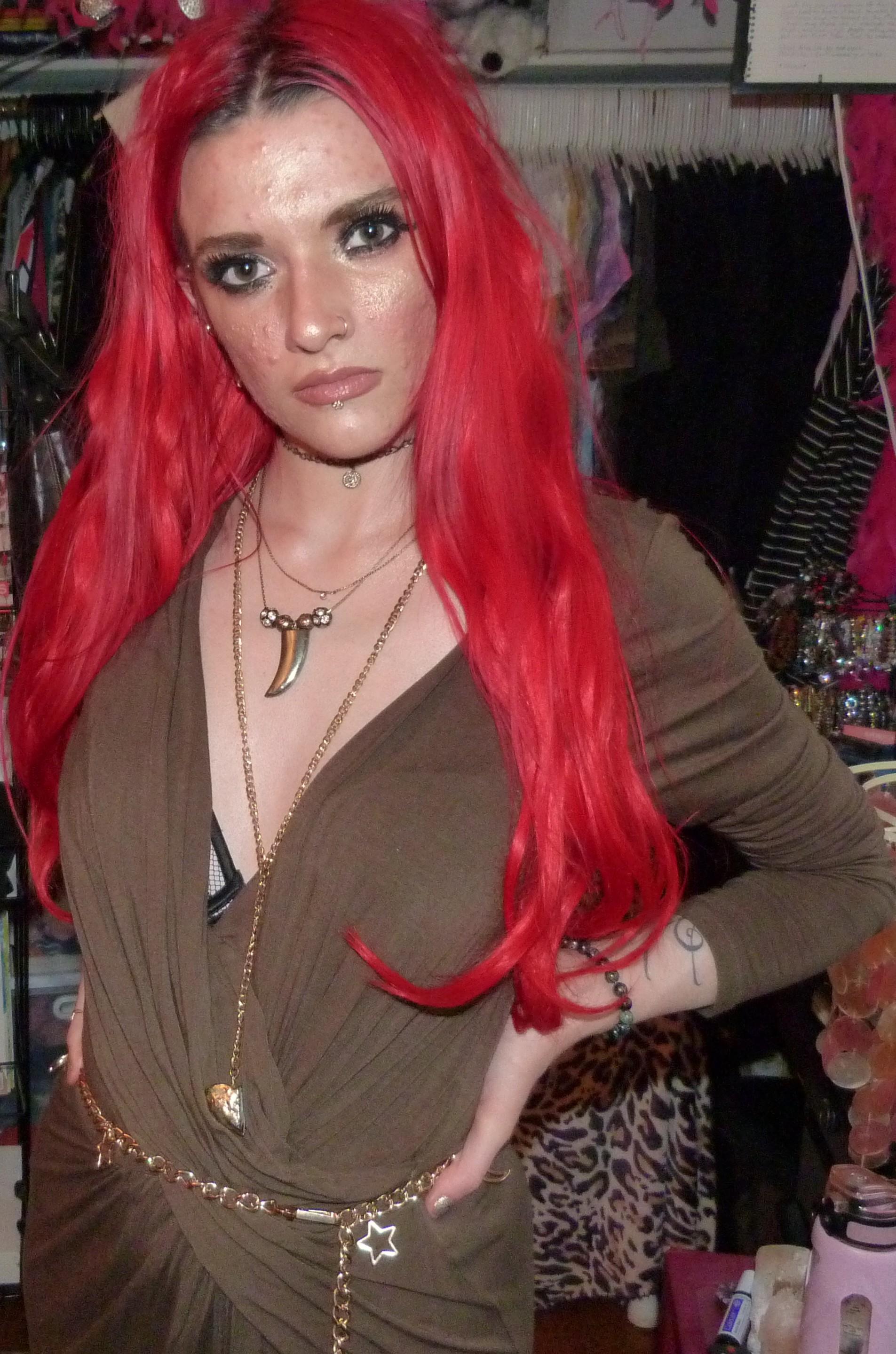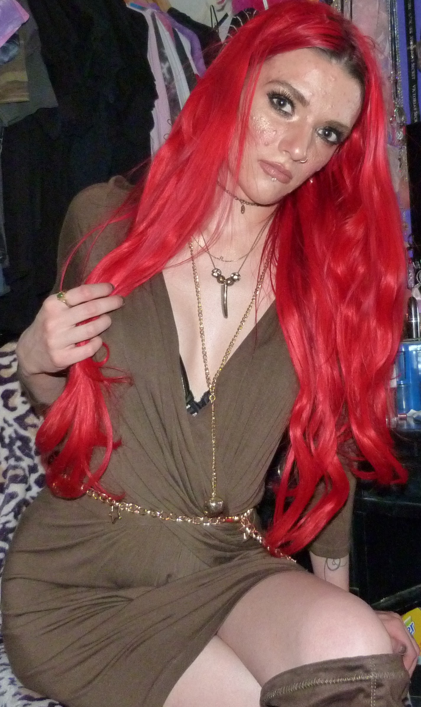 That’s it for this blog post, I’m glad about how it turned out! The dress looked green enough in the end with my lighting so that’s awesome, that’s what I was hoping for at least. I love wearing my extensions, I just got my hair redyed last week which was great! So far, this is now the 6th blog post I’ve worn my extensions in, which is crazy because I want to wear them more often. So I’m going to try this year to wear them more, maybe dye my hair more, and see what happens because I would love to use them more often! I wore them to the club the other day too, it was perfect with my outfit. You can find pictures of that on my Instagram probably, maybe check that out to see some pictures from the club & concerts I’ve been posting and everything! I love going to the club Trinity in Seattle with my friend Kwame, it’s awesome every single week. We’ll see how the rest of this month goes, hopefully I can do more photoshoots with my extensions but I would just love to catch up on that. Go back to outfit details to see some of the other photoshoots I wore these extensions in, it was 4 last year and they turned out pretty good. Once in 2019, and then this is my first time this year using them. But I really love my bright red hair with all my heart and I’m always happy when it’s back! Thanks so much for checking me out, I’ll see you guys later, hopefully with more red hair again too!