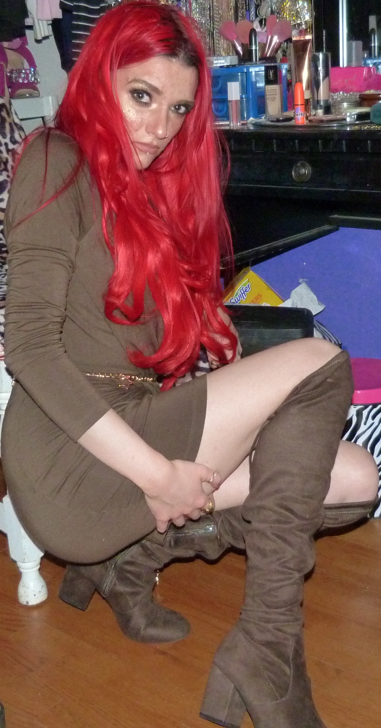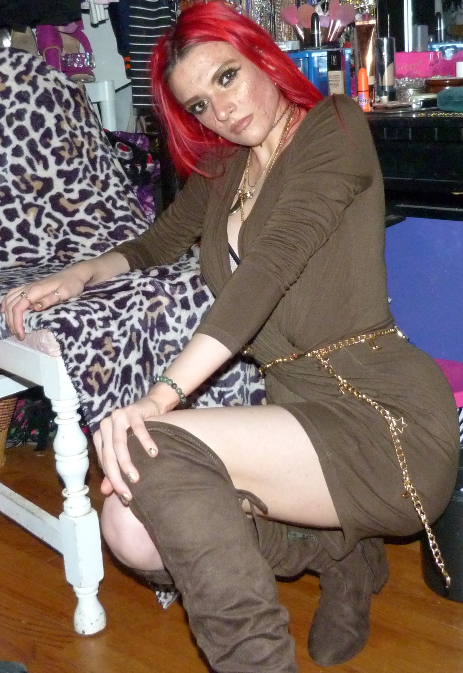 - Over-the-knee brown colored boots that I also got from StitchFix with the dress in 2017 as well! I also featured these boots in last year’s Rebel, in 2018’s Keep On Singin’ My Song plus a 2017 post also.