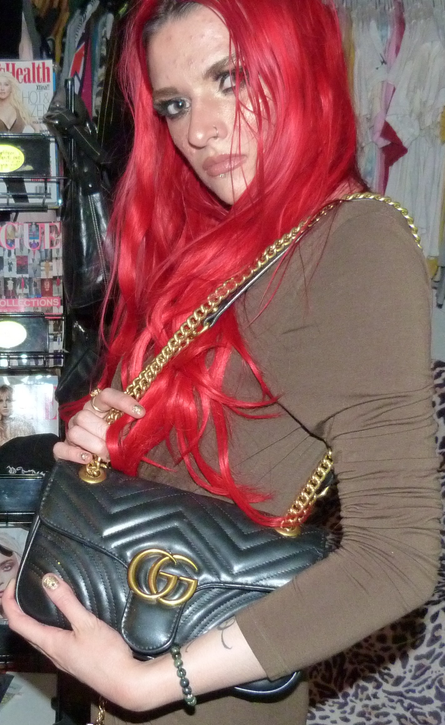 - GG Marmont small black leather shoulder bag $2,550 by Gucci that I love with all my heart & got for Christmas from my mom! The pictures with this are in the last collage, & those turned out rad.