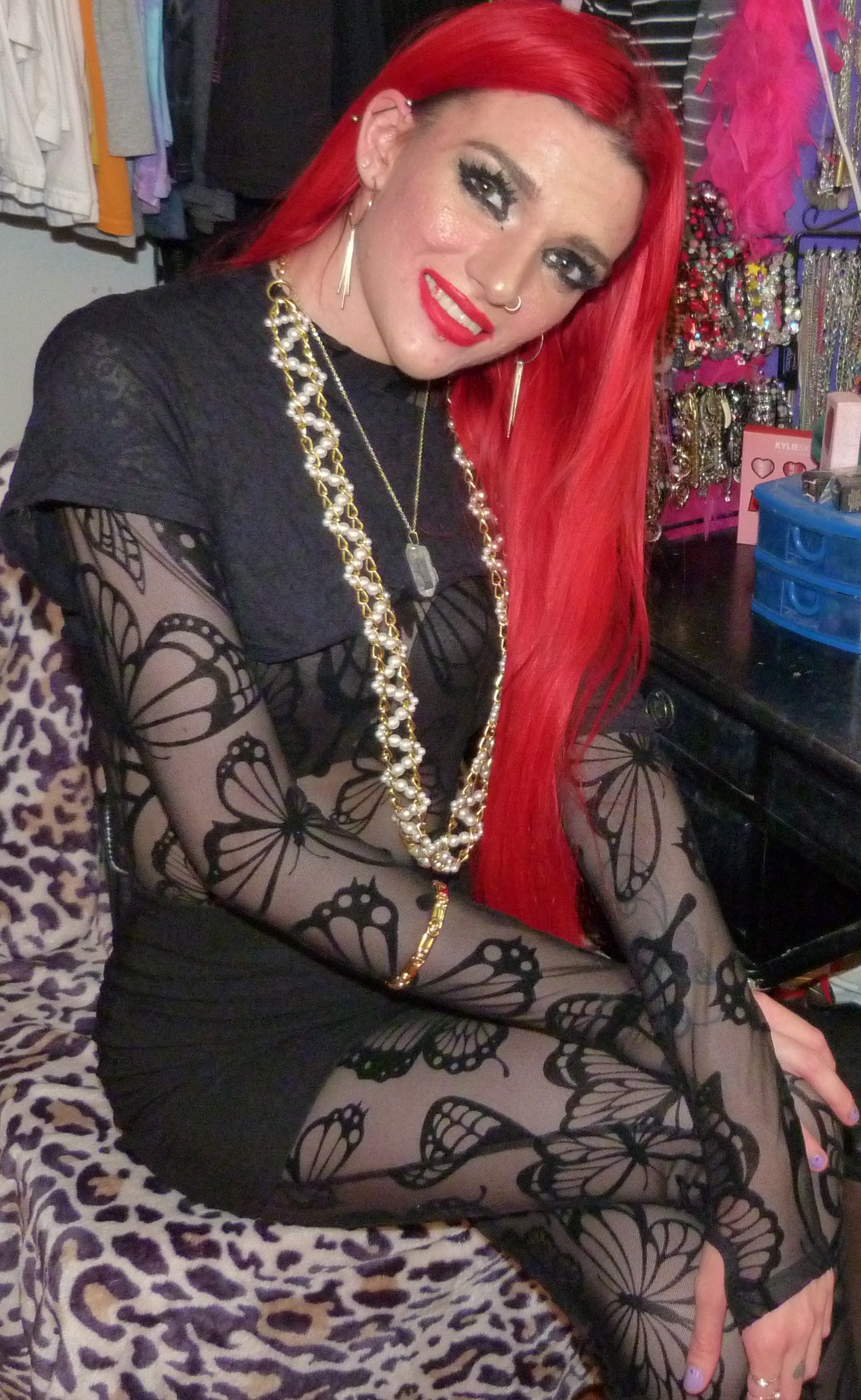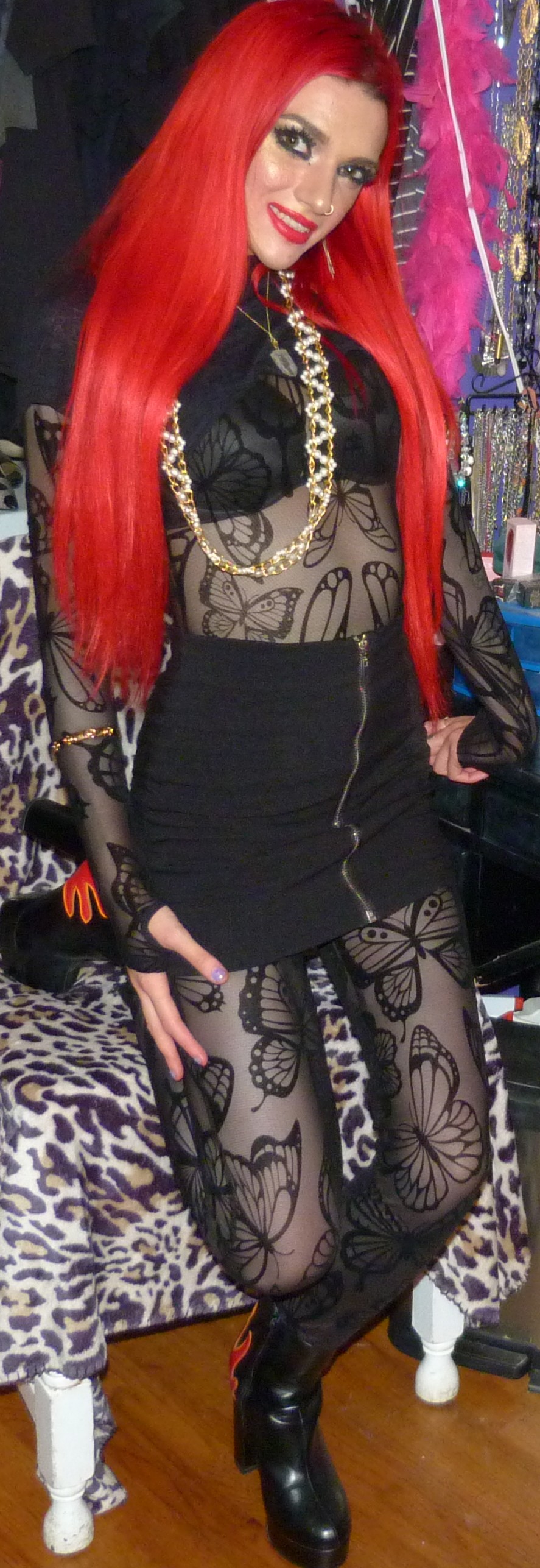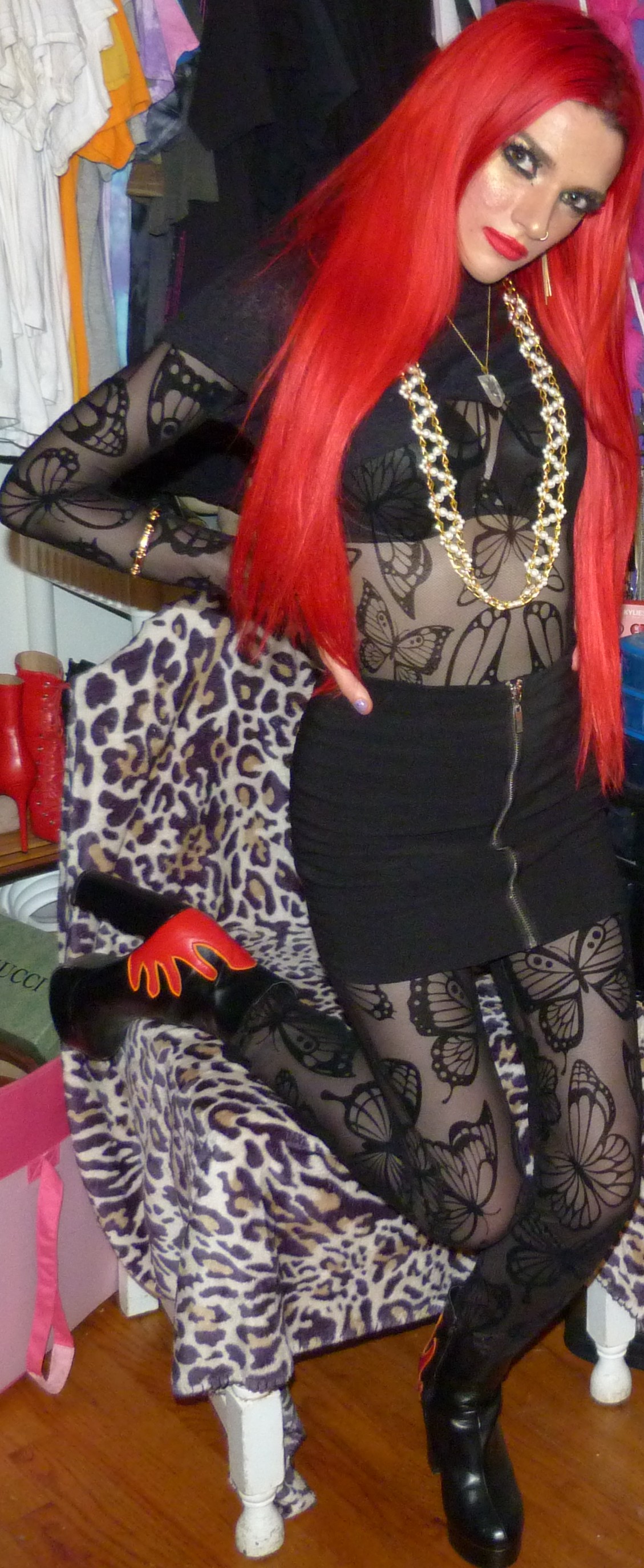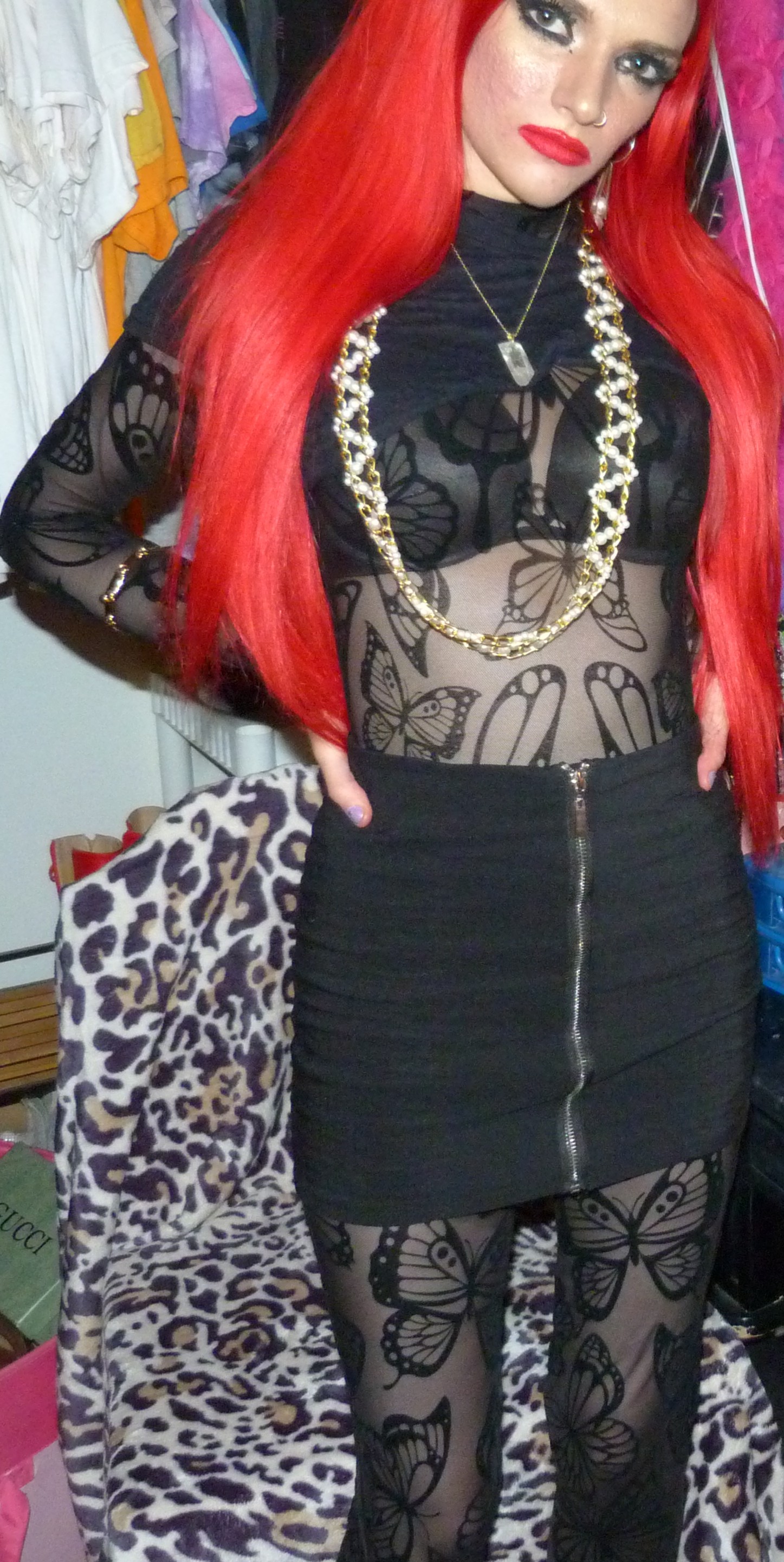 - Butterfly Utopia Mesh Catsuit $78 in size XXS by the brand Club Exx by Dolls Kill that I just got last month. It’s a black butterfly sheer catsuit that I totally love. This is so cute also, I loved this outfit!