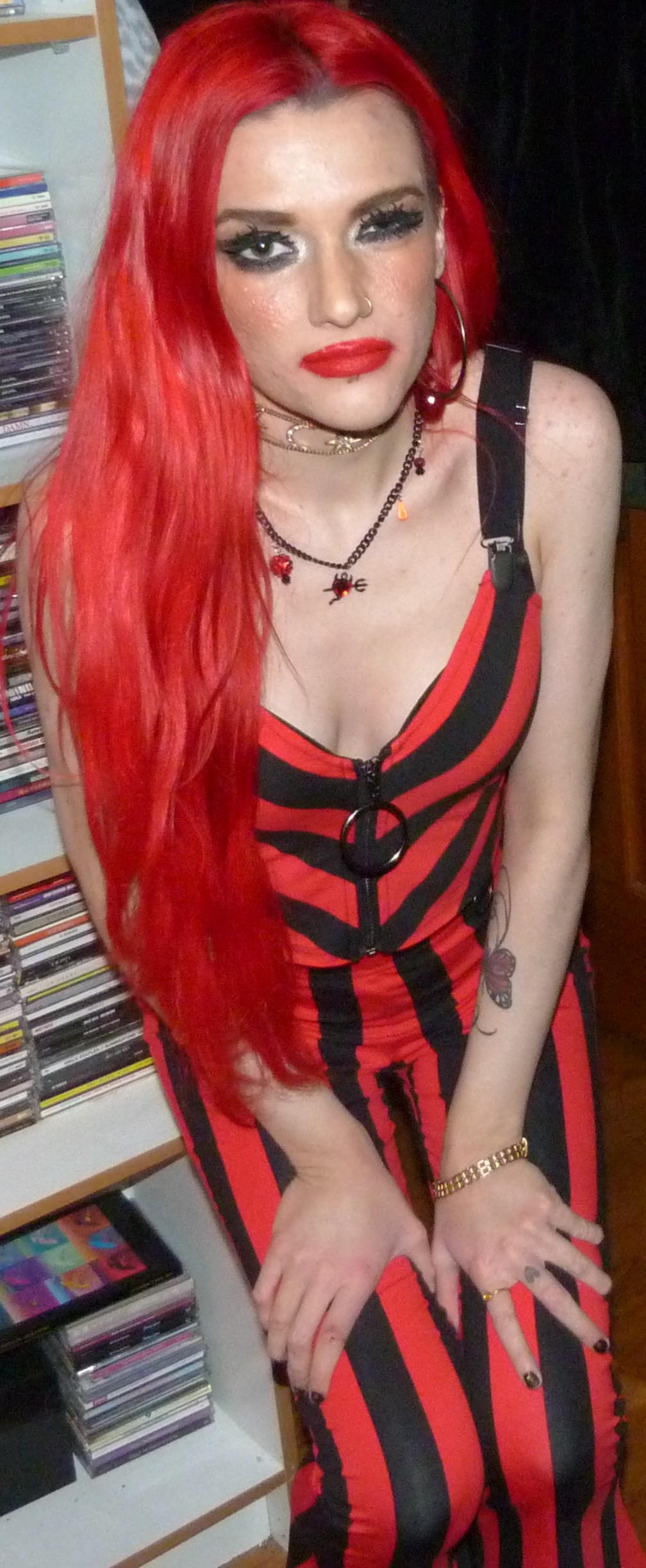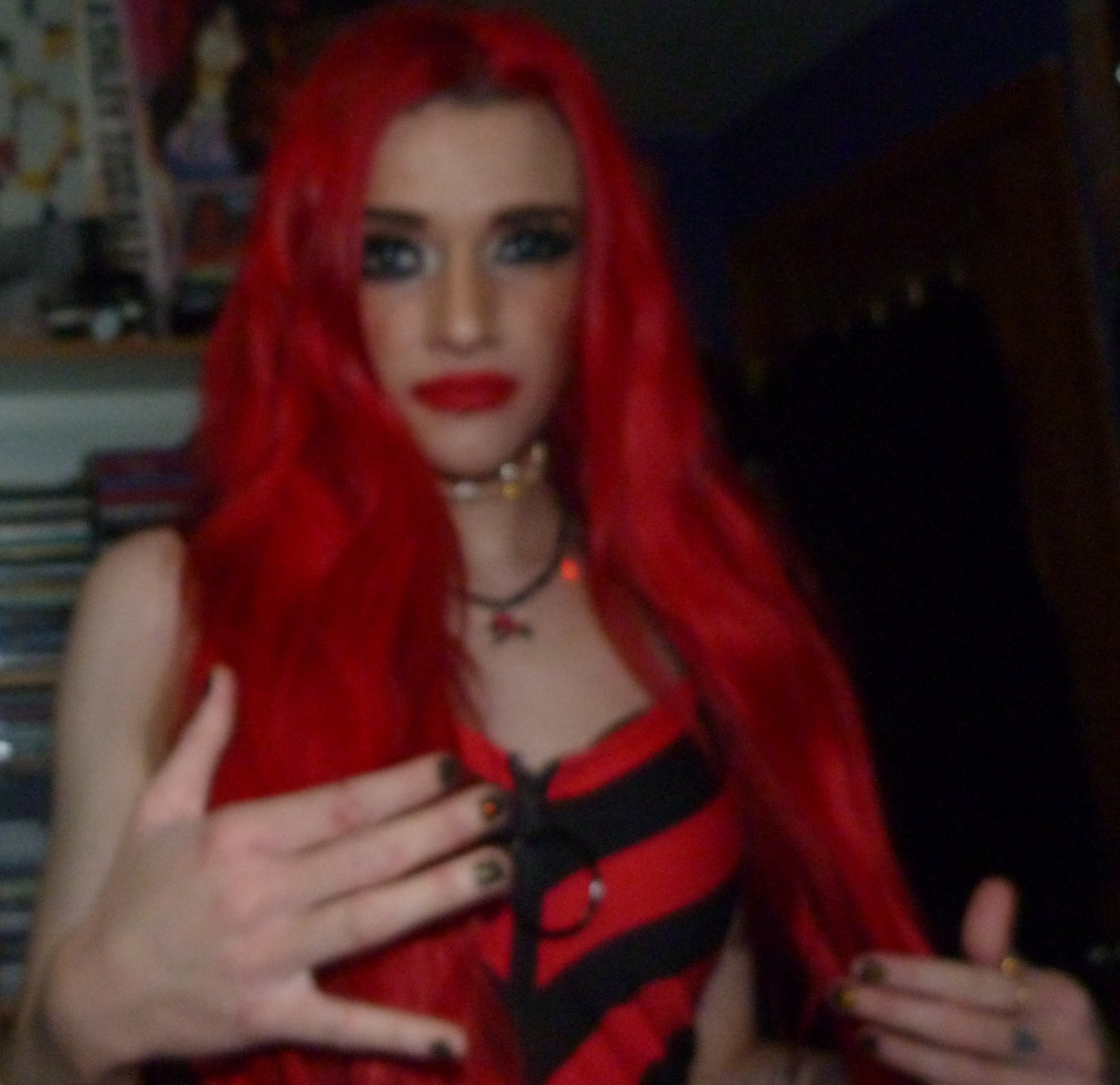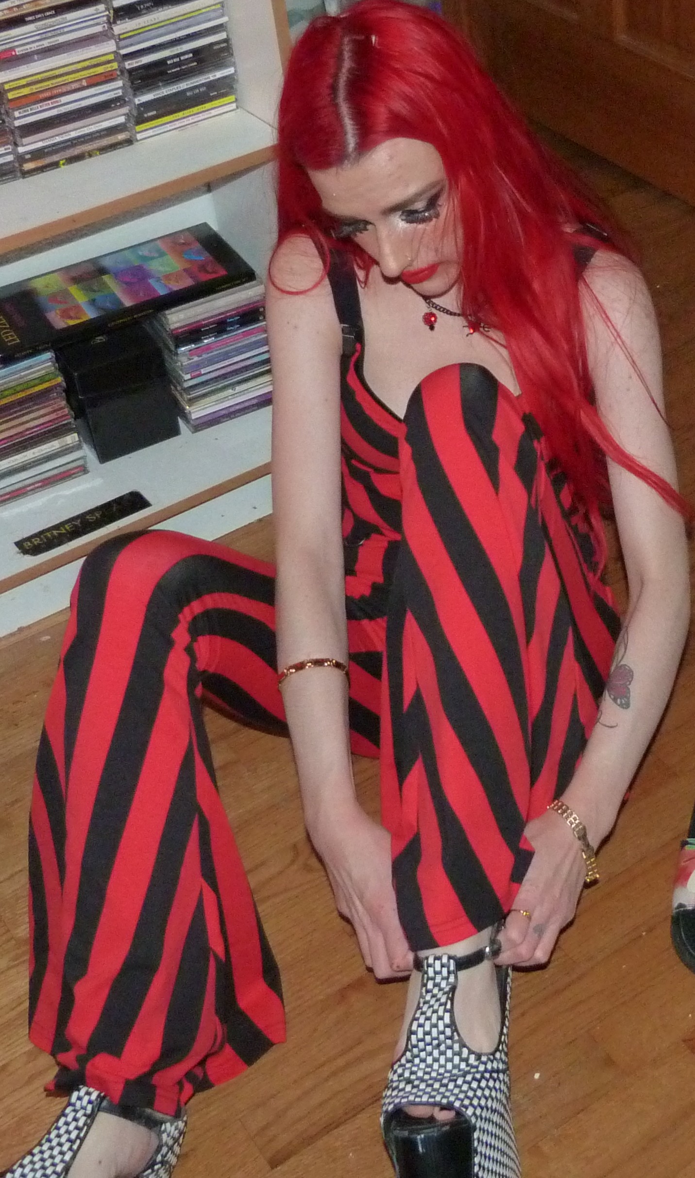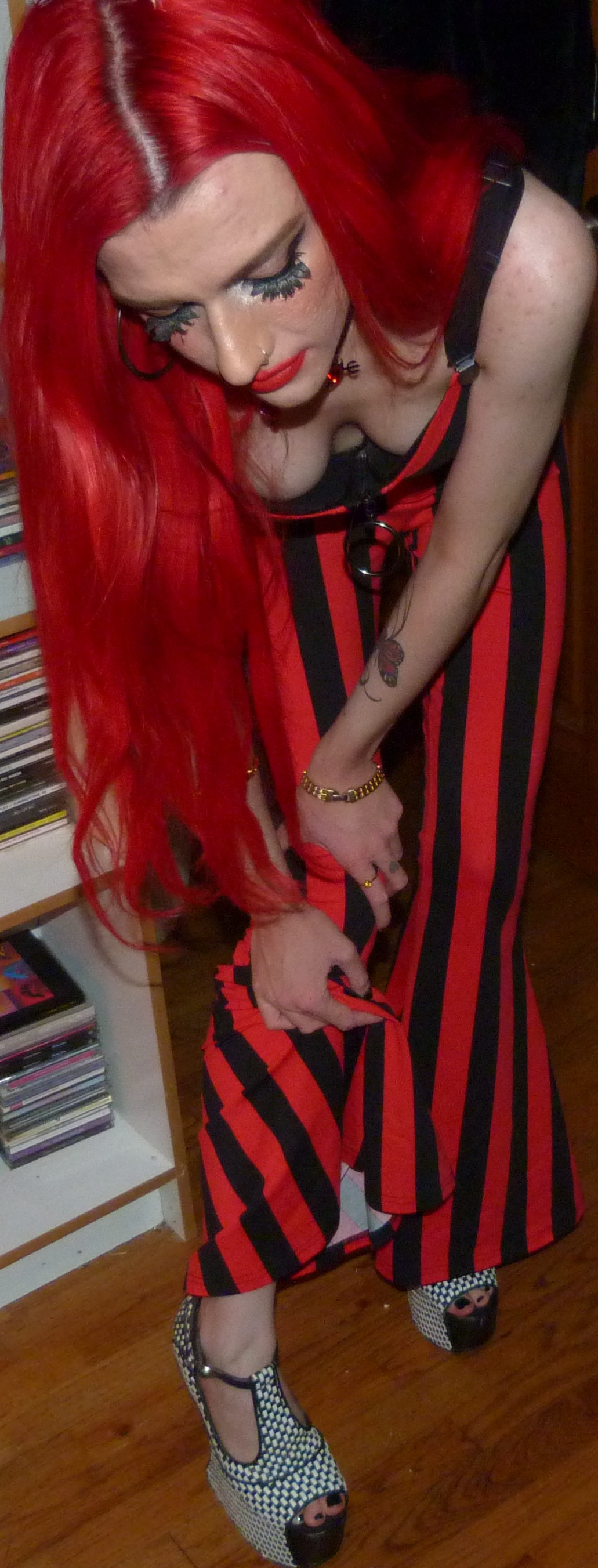 Another awesome outfit that I did with more from my recent Killstar x Avril Lavigne collection order. I did a different one last month but was excited to do this one, next! This outfit is made of two pieces of clothing from Avril’s third drop of clothes with Killstar, including this red & black striped chevron top called the Setlist Top as well as the red & black striped pants called Olley Flares I put together. It made a really cute outfit, I liked these two together, they’re awesome! These are the only two things I got from Avril’s third drop of clothes which was all like red & black clothes which are cool, but I got a bunch of clothes from her collections last time. I love that Avril did these collections for Killstar a lot, they’re really super awesome! All three drops happened last year which was cool. The first outfit I did with something from her collection was my Killstar (24th Birthday) post I did last November with the plaid dress from her second drop which was cool also. It’s going to be my 25th next week too which is awesome, I’m excited about that! The second Killstar post I ended up doing was with the pink dress from her first drop that I did last month, called KILLSTAR X AVRIL #2 which was two posts ago! I’m excited to finally do this one too, I’ve finally done at least one outfit from each of her drops from her collections! I have basically like two outfits left to do of Avril clothes I got last month but I’ll do those ones like maybe next month or in a couple months. I love everything I got a lot, I’m excited about this outfit as well because it looked really good with my red hair & lipstick this time! These were two cute pieces of clothing, I’m glad they looked this good together because they definitely looked like they go together. I love Avril Lavigne a lot & I’ve always really loved all her different clothing collections too! This outfit is a really good one, I’m glad I did this one next for November. I’m excited for this month!
