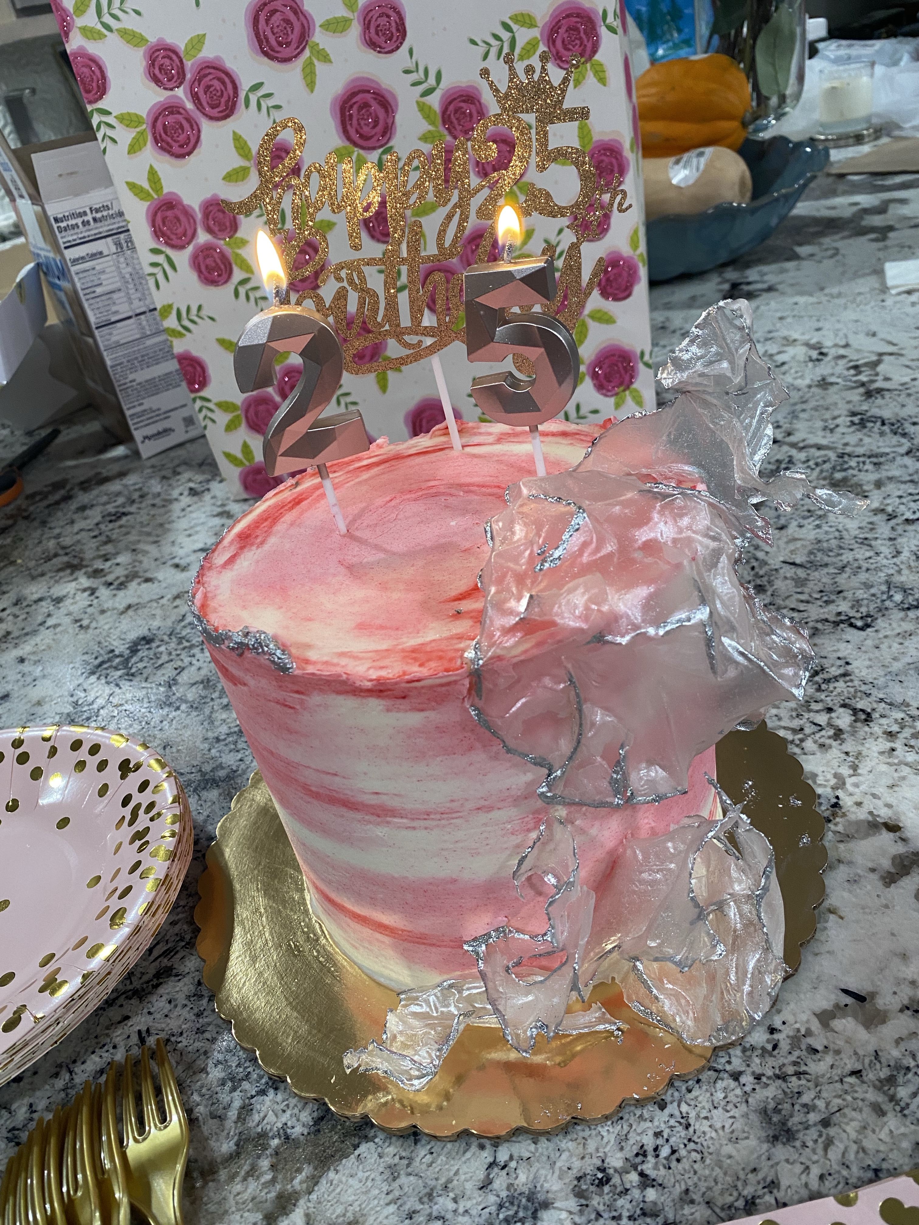 - Sparkly 25 Crown & It’s My 25th Birthday Sash 25th birthday box set from Amazon with the balloons, 25 candles & cake decoration as well. I loved that my mom got me this box set for my 25th birthday!