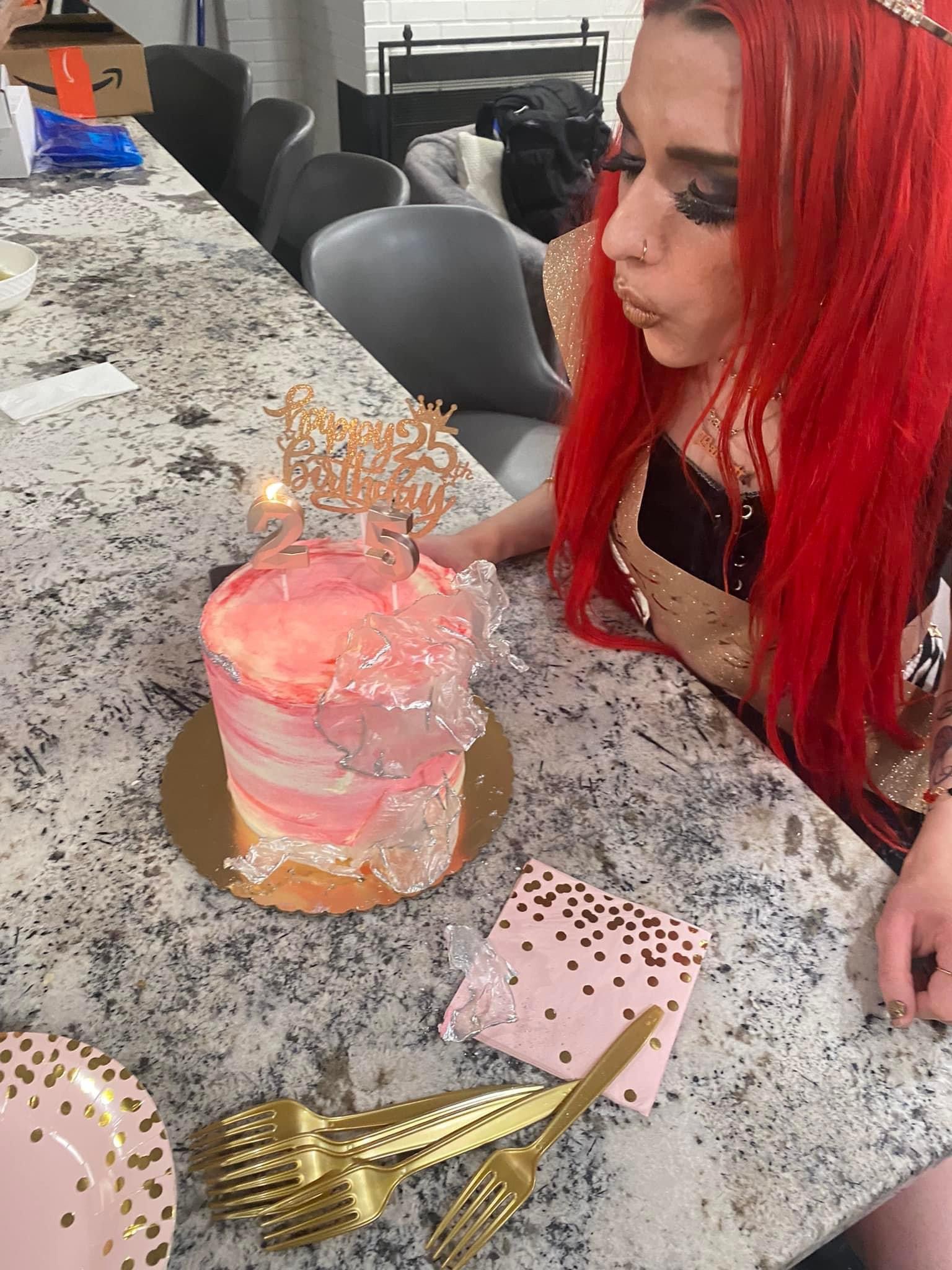 That was the end of my birthday post. I’m so glad I’m finally 25 & I had a really good birthday! I loved this one, everything was pretty awesome. I’m excited to see what I’m going to next, for like the rest of this year but also next year. This was an awesome outfit for my birthday as well, I’m so glad I had this one planned out. I even loved using my favorite eyeshadow palette ever with the look, I kind of made it like a pink-ish purple eyeshadow look but that is definitely my favorite eyeshadow palette. I usually do like pink looks with that Kesha palette but I blended it with the blue eyeshadow this time so it was more purple this time. It looked pretty cool with the red lipstick, I thought that was cool contrast too! I of course loved the red hair with this again, that is always awesome of course too. I’m excited about how my birthday went, the rest of the year is going to be good too & I can’t wait to see what I’m going to do next! I have some ideas for what’s next too & I’m excited to see what else I’ll do being 25 as well. Thanks so much for reading, I’ll see you guys with one more post for this month later in a week or so!