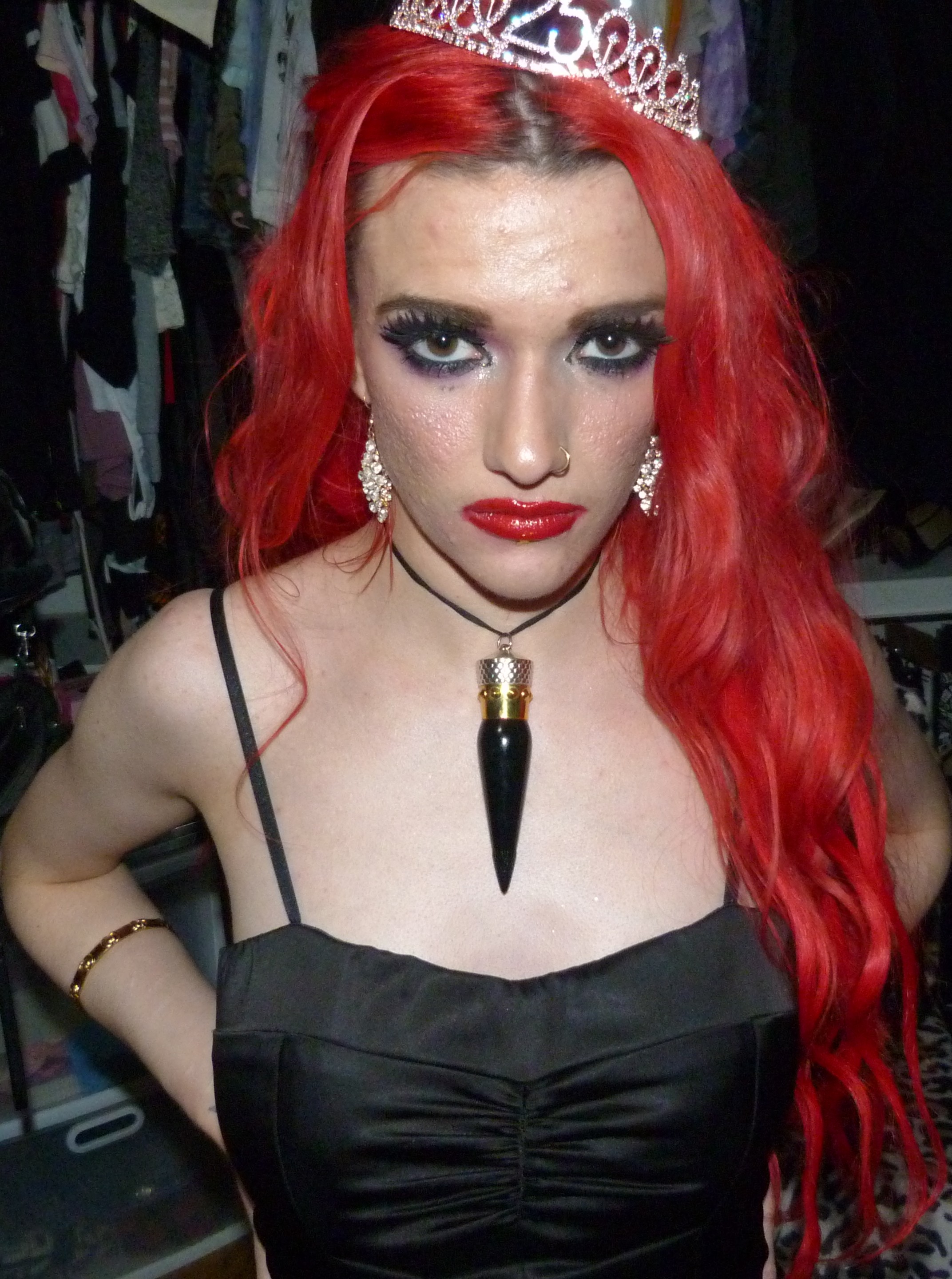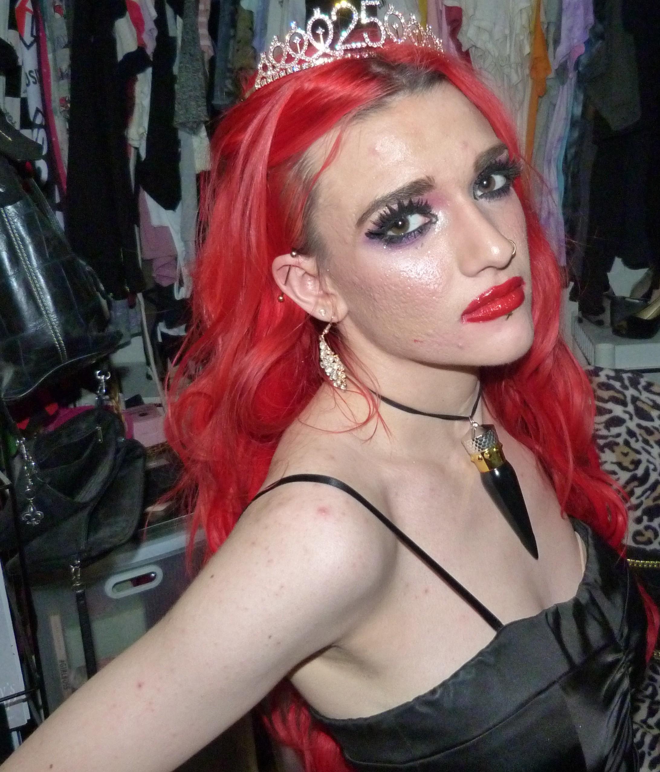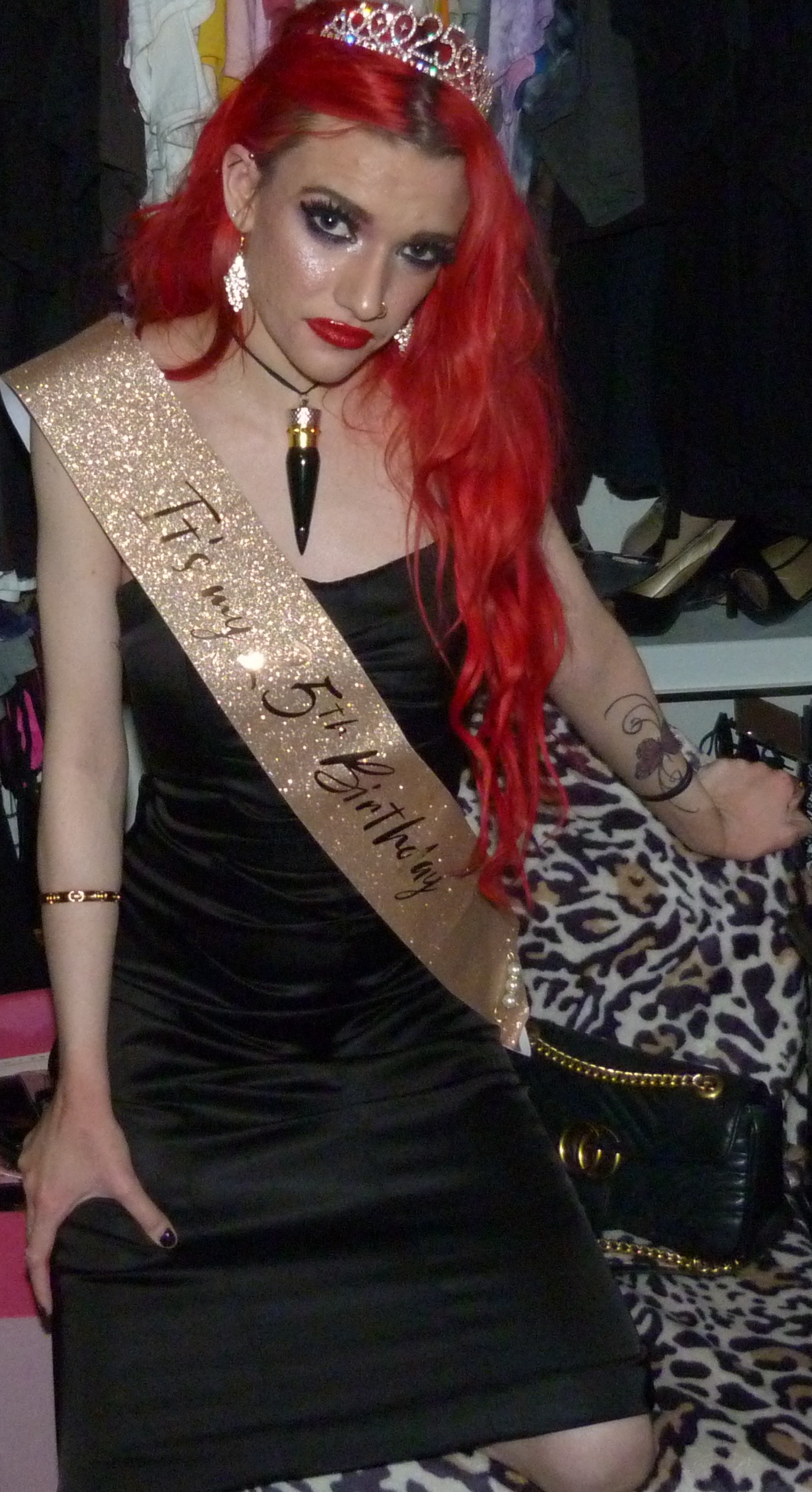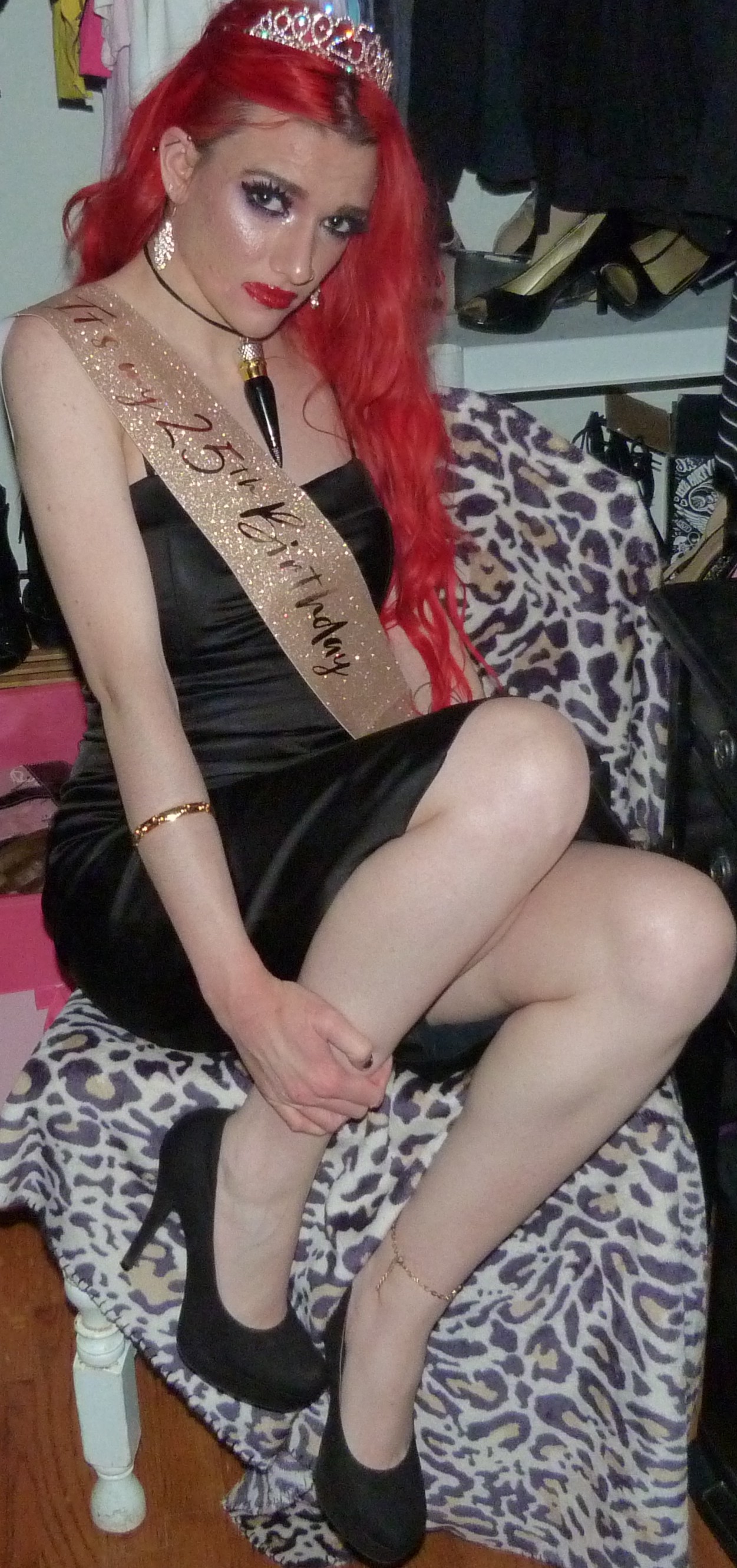 I finally just turned 25 & I’m super excited about that! I’m super happy it’s my birthday again too, this year was pretty awesome but I’m also really excited for another one. I’m also excited about this outfit & photoshoot too, it’s perfect for this birthday! Earlier in the year, I discovered that we had this black dress that I didn’t remember wearing to like anywhere else yet that we found & fixed the zipper on. It ended up being such an awesome dress & I was super happy that we had this for me! It was perfect to finally wear it for the first time for my 25th birthday too, it’s awesome that I saved the dress for this. I also got a few things for my birthday that I’ll be doing on here within the next month or two too but I’m glad about how this outfit turned out for my actual birthday! I even wore my Christian Louboutin lipstick necklace with the dress which is this really pretty red lipstick you can wear as a choker that I got back in the day! It’s a pretty luxurious lipstick with a ribbon attached to it so you can also use it as a choker. Finally, I even got this pretty sparkly 25 crown in a box of different things that I wore as well for my birthday. The crown is really awesome, I loved that my mom got this for me! This outfit ended up pretty awesome, I loved this one with the red hair again. You can also check out my birthday post from last year for my 24th Birthday! I’ve done a few other birthday posts other than that, but that one was a pretty awesome one too. I had a pretty good birthday this year, though & I’m happy about that!