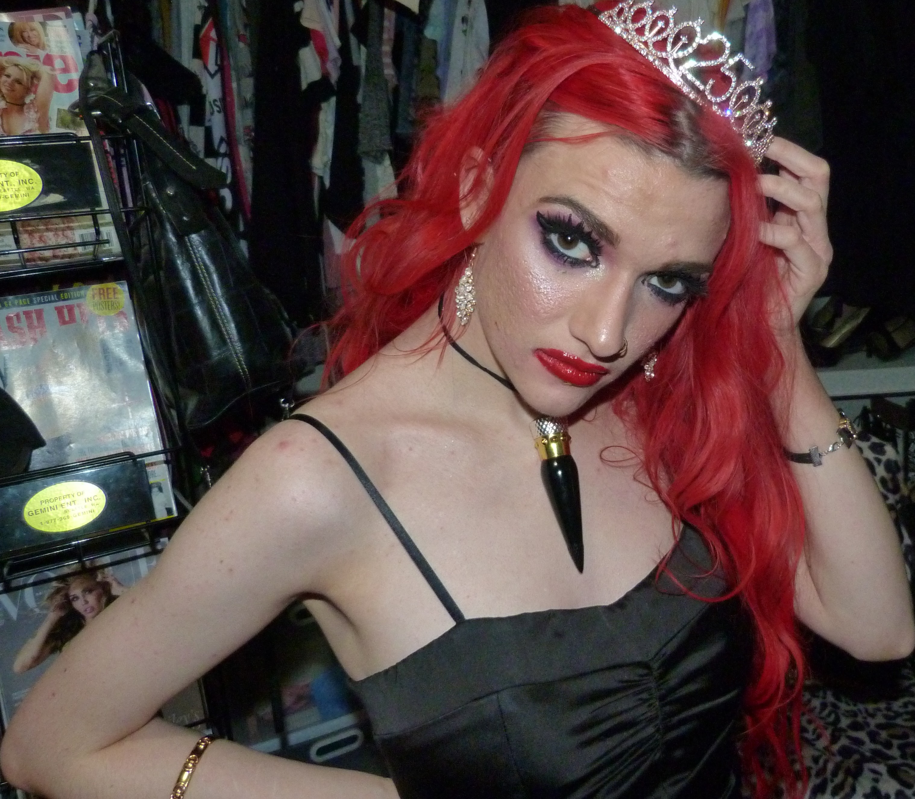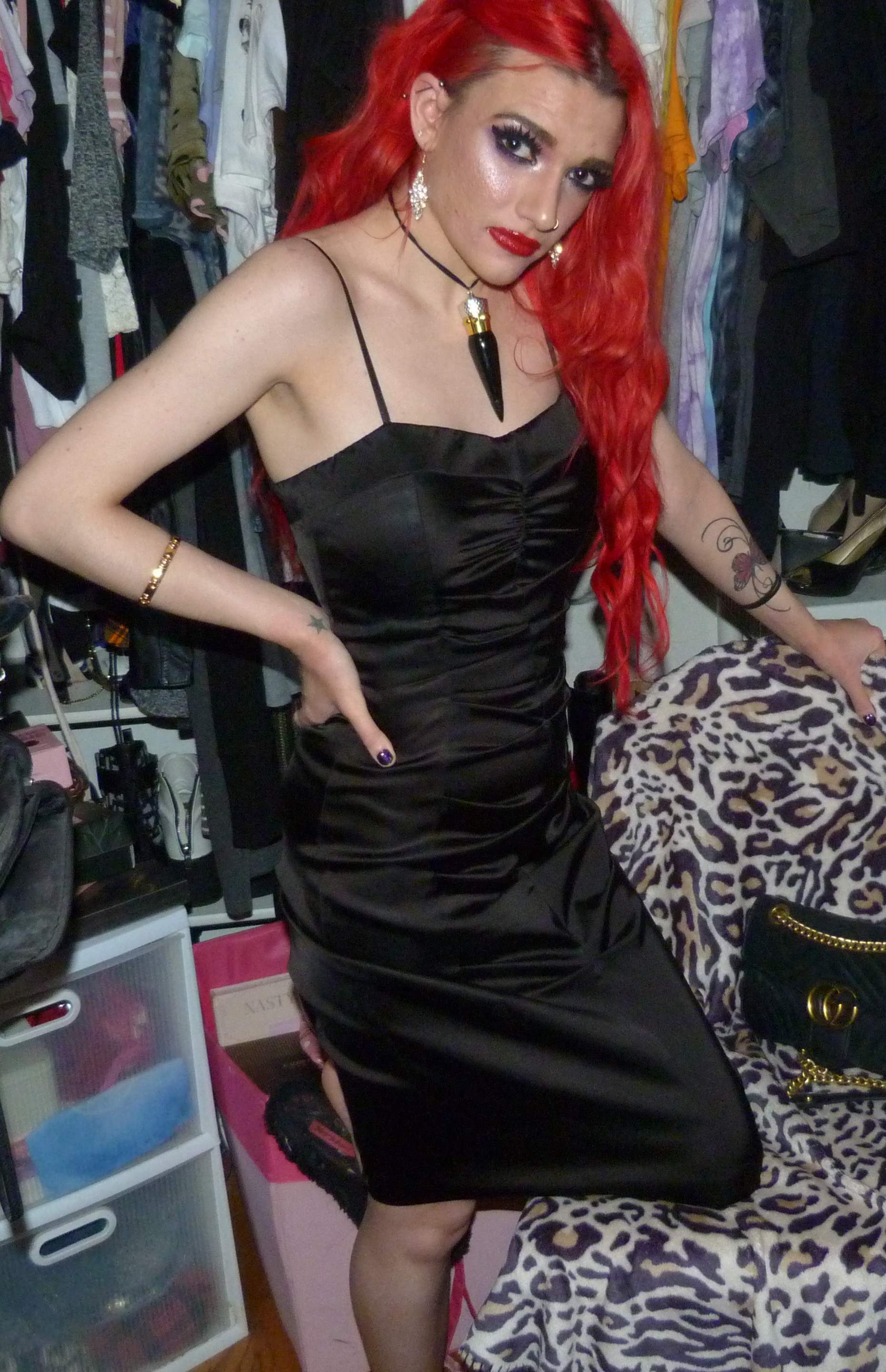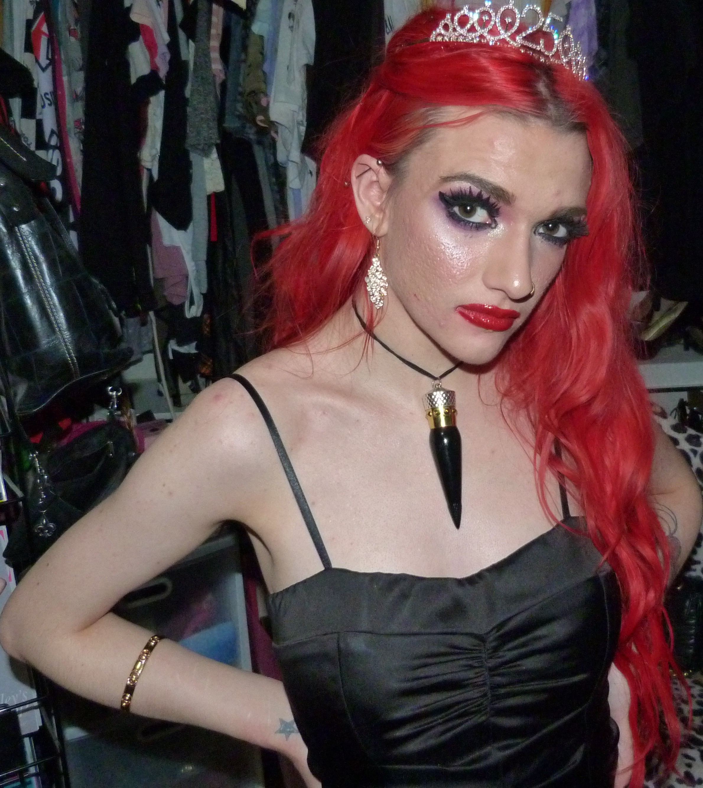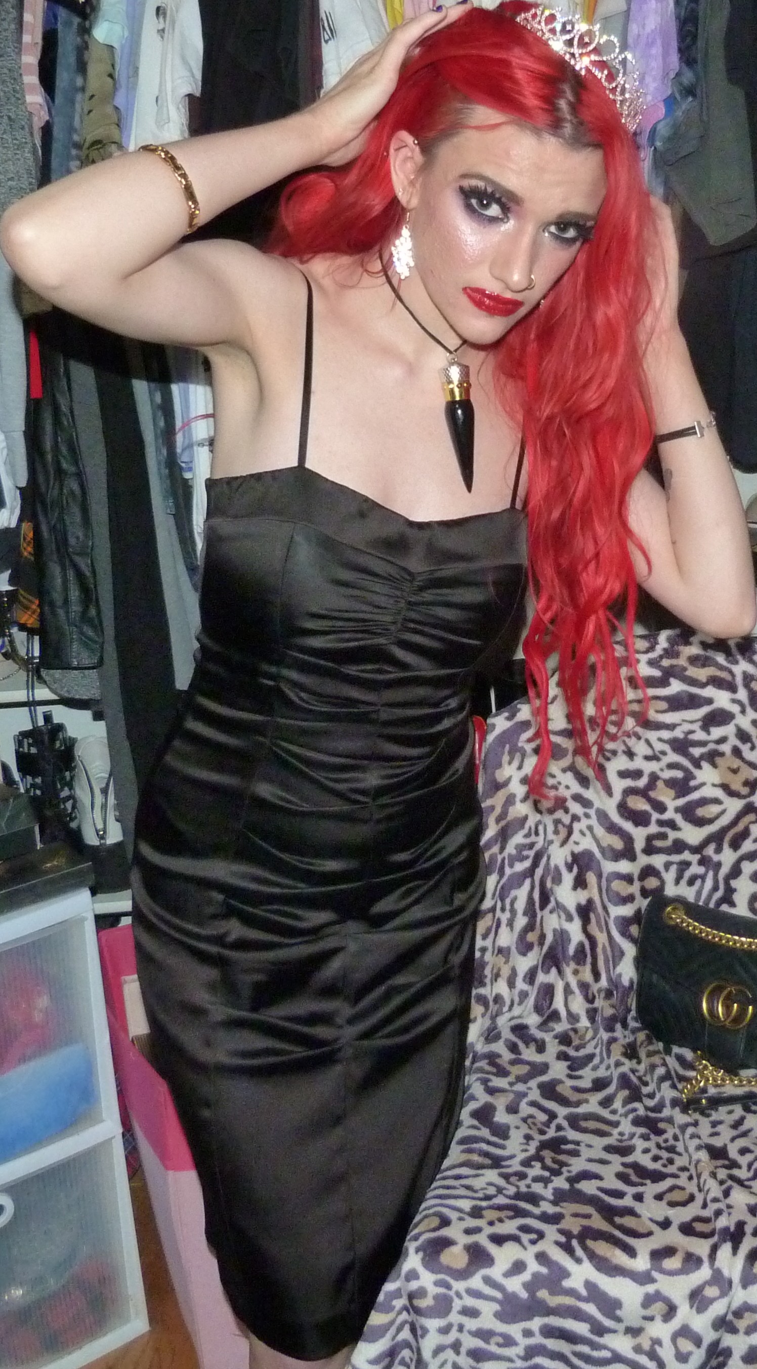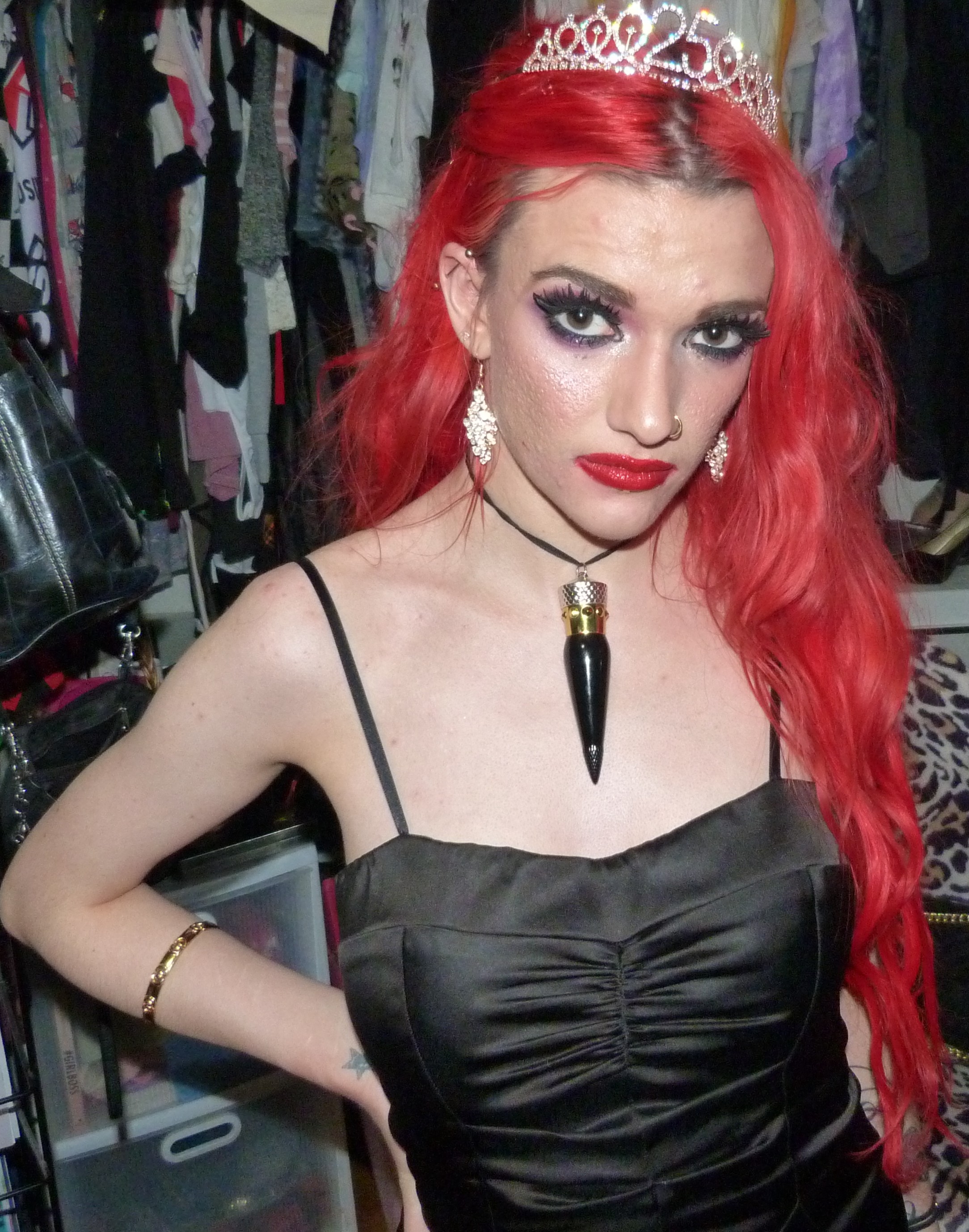I finally just turned 25 & I’m super excited about that! I’m super happy it’s my birthday again too, this year was pretty awesome but I’m also really excited for another one. I’m also excited about this outfit & photoshoot too, it’s perfect for this birthday! Earlier in the year, I discovered that we had this black dress that I didn’t remember wearing to like anywhere else yet that we found & fixed the zipper on. It ended up being such an awesome dress & I was super happy that we had this for me! It was perfect to finally wear it for the first time for my 25th birthday too, it’s awesome that I saved the dress for this. I also got a few things for my birthday that I’ll be doing on here within the next month or two too but I’m glad about how this outfit turned out for my actual birthday! I even wore my Christian Louboutin lipstick necklace with the dress which is this really pretty red lipstick you can wear as a choker that I got back in the day! It’s a pretty luxurious lipstick with a ribbon attached to it so you can also use it as a choker. Finally, I even got this pretty sparkly 25 crown in a box of different things that I wore as well for my birthday. The crown is really awesome, I loved that my mom got this for me! This outfit ended up pretty awesome, I loved this one with the red hair again. You can also check out my birthday post from last year for my 24th Birthday! I’ve done a few other birthday posts other than that, but that one was a pretty awesome one too. I had a pretty good birthday this year, though & I’m happy about that!