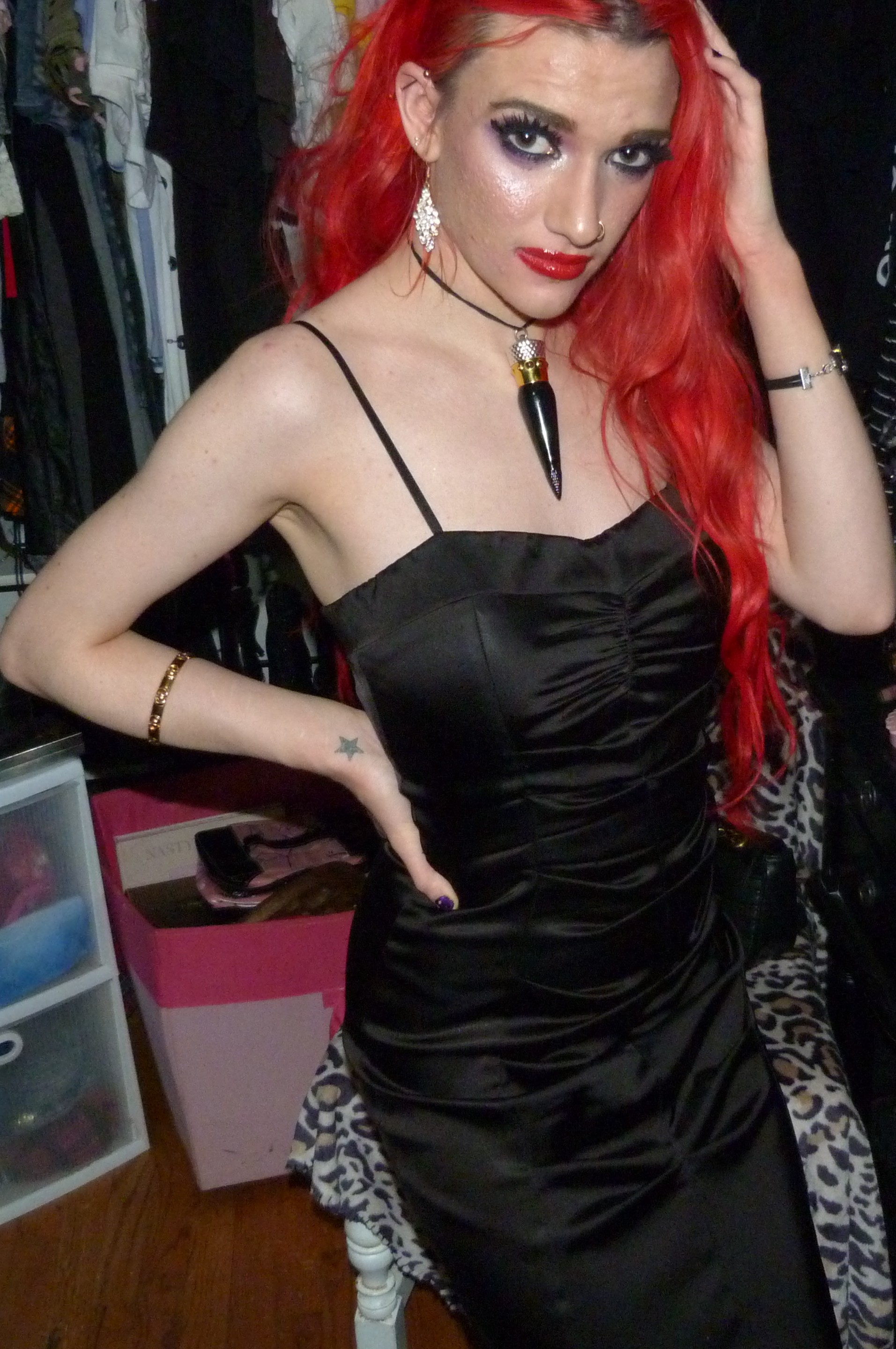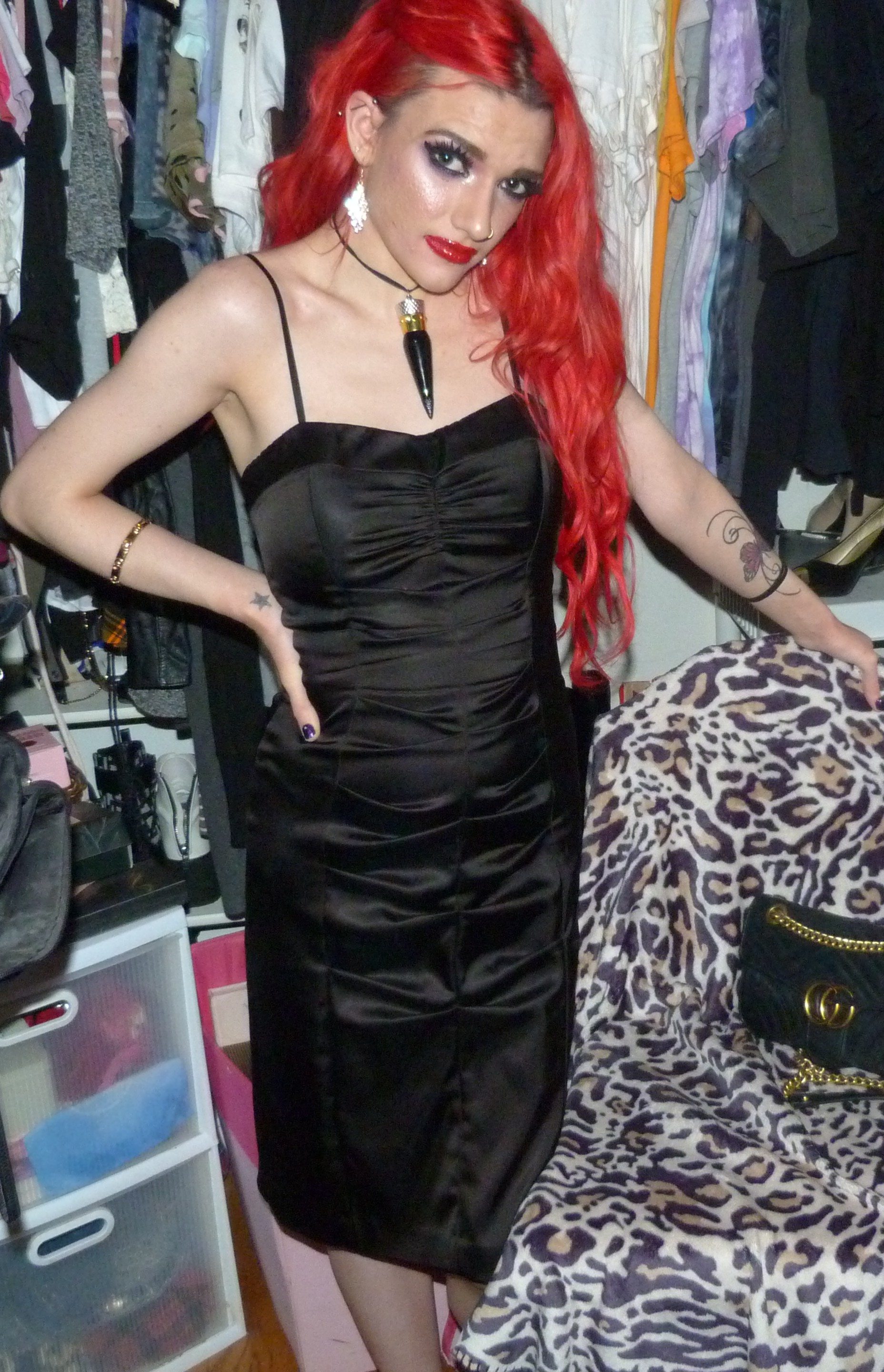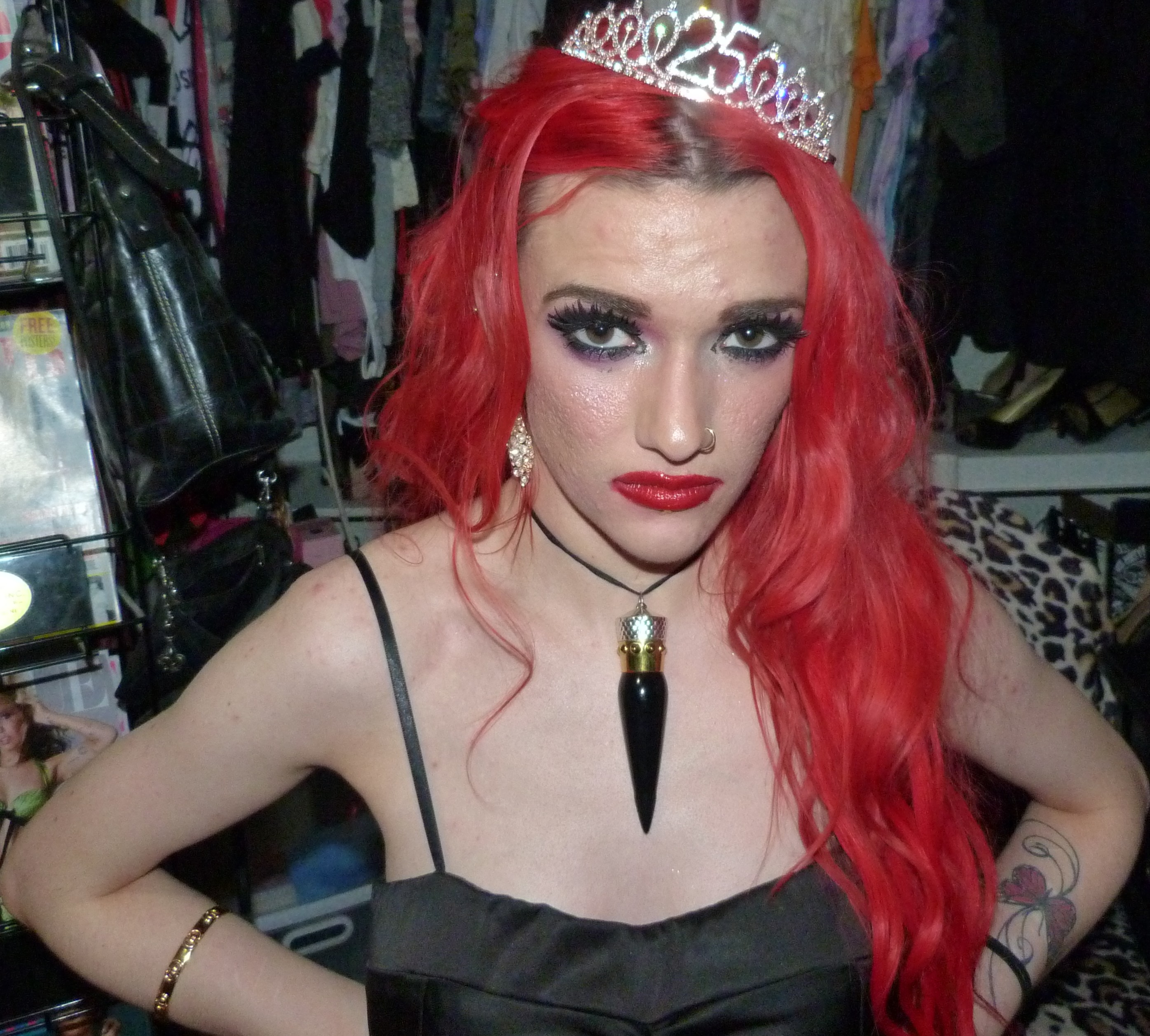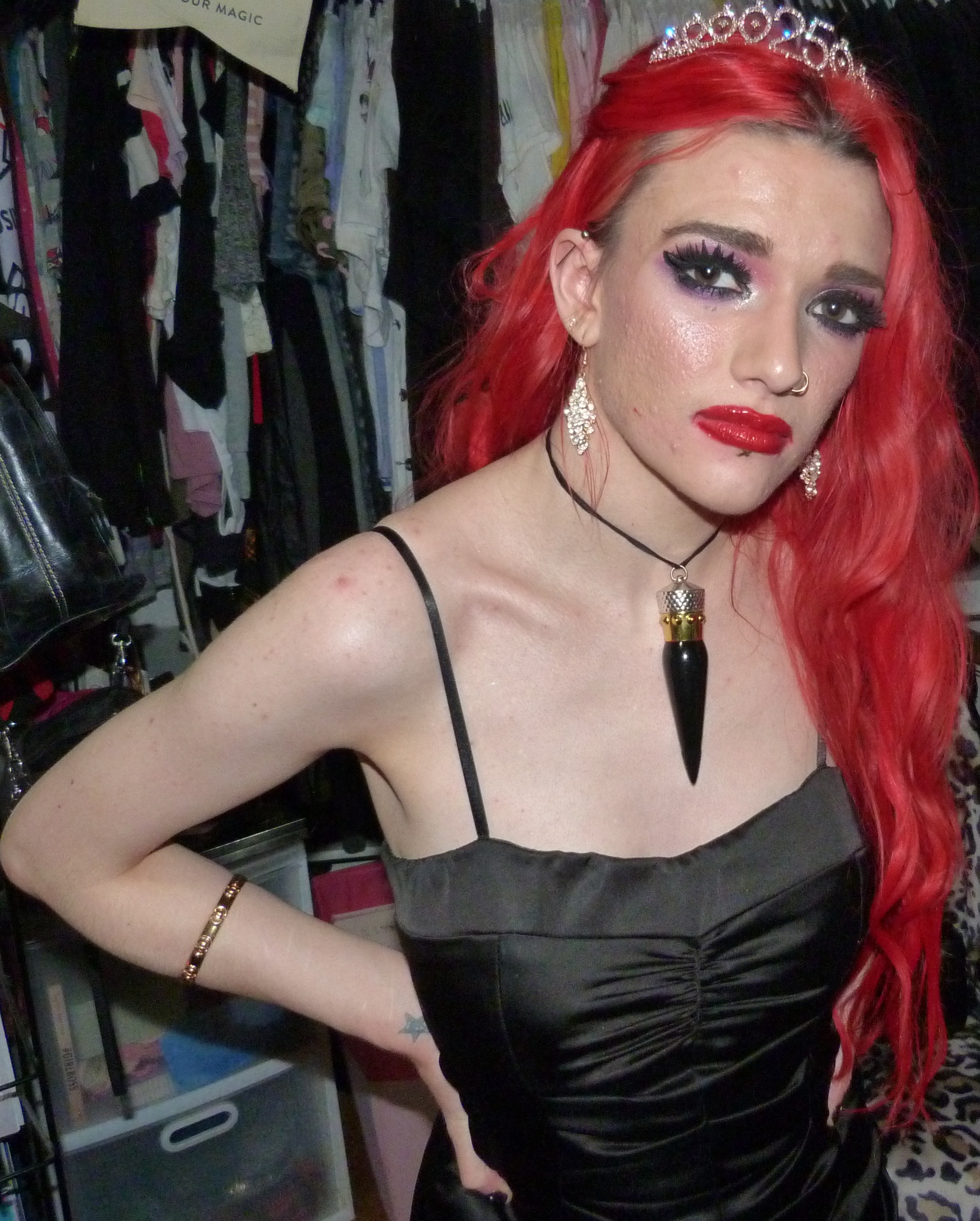 I finally just turned 25 & I’m super excited about that! I’m super happy it’s my birthday again too, this year was pretty awesome but I’m also really excited for another one. I’m also excited about this outfit & photoshoot too, it’s perfect for this birthday! Earlier in the year, I discovered that we had this black dress that I didn’t remember wearing to like anywhere else yet that we found & fixed the zipper on. It ended up being such an awesome dress & I was super happy that we had this for me! It was perfect to finally wear it for the first time for my 25th birthday too, it’s awesome that I saved the dress for this. I also got a few things for my birthday that I’ll be doing on here within the next month or two too but I’m glad about how this outfit turned out for my actual birthday! I even wore my Christian Louboutin lipstick necklace with the dress which is this really pretty red lipstick you can wear as a choker that I got back in the day! It’s a pretty luxurious lipstick with a ribbon attached to it so you can also use it as a choker. Finally, I even got this pretty sparkly 25 crown in a box of different things that I wore as well for my birthday. The crown is really awesome, I loved that my mom got this for me! This outfit ended up pretty awesome, I loved this one with the red hair again. You can also check out my birthday post from last year for my 24th Birthday! I’ve done a few other birthday posts other than that, but that one was a pretty awesome one too. I had a pretty good birthday this year, though & I’m happy about that!