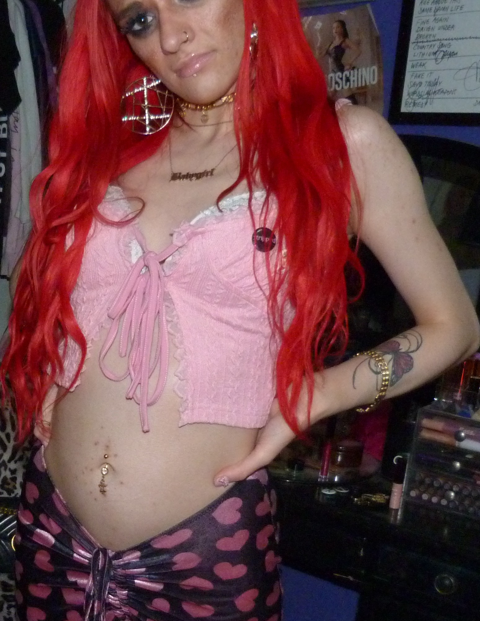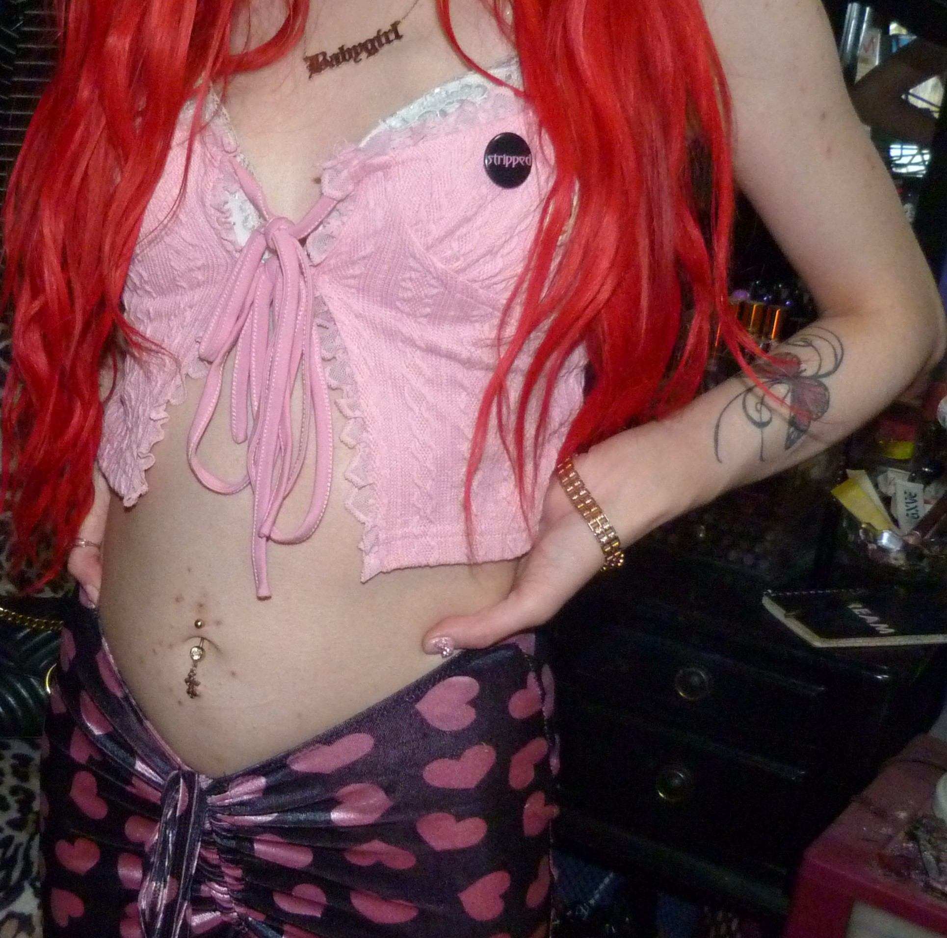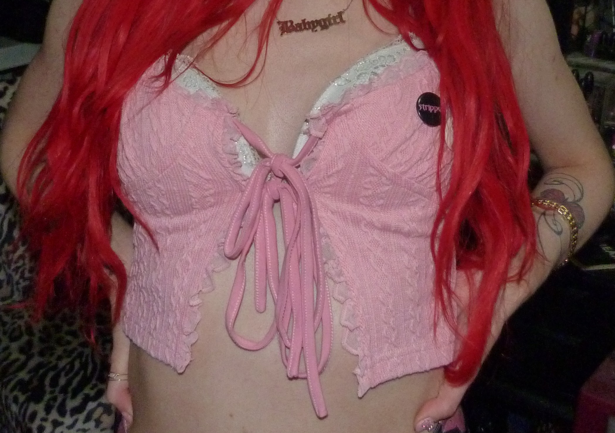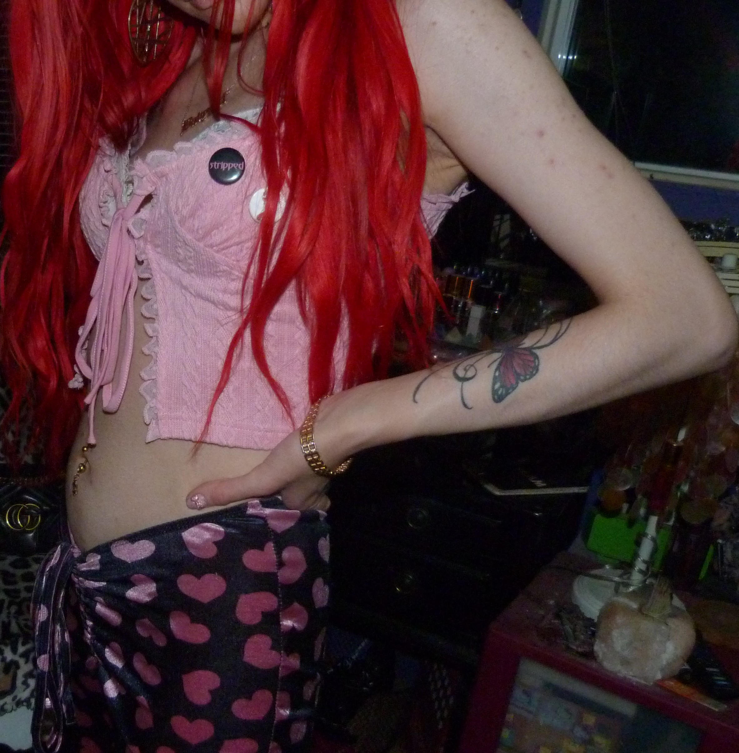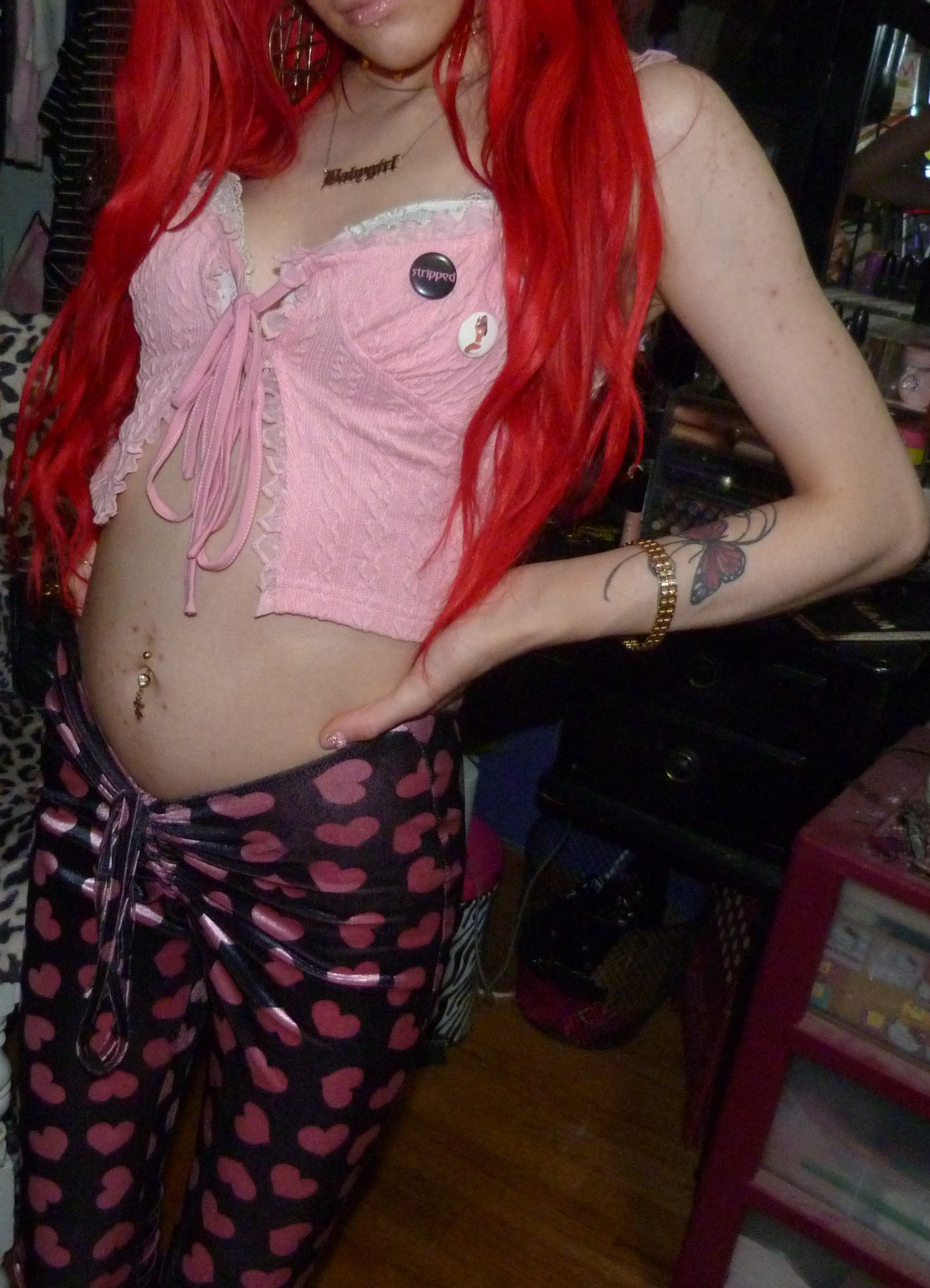 HAPPY VALENTINE’S DAY, I love Valentine’s Day every year! It is one of my favorite holidays to dress up for or whatever, I love celebrating V-Day so much! This year I did a really cool Xtina inspired shoot after the last one that I did, ‘WHAT A GIRL WANTS’ too! It was also a Valentine’s x Christina Aguilera related blog post of mine, based off her second main single. This is based off her second main album! They’re part of a three part series I’m doing this month. This post is the main Valentine’s Day post for the month though especially. I’m excited about this one with this really cool Stripped-era type pair of pants with a super cute frilly pink top, both by Sugar Thrillz from Dolls Kill. It ended up being a really fucking cute Stripped inspired outfit, of course one of my favorite albums from her! It’s this amazing album from 2002, I love it so much! I’ve always really loved it a lot & I loved doing this outfit inspired by the album cover & like era! I’ve done photoshoots inspired by a couple different songs of hers from that album before too but this was an awesome outfit to do with this! The pants & outfit were perfect for Valentine’s Day too, so I thought I would do this whole month of Valentine things with this outfit, of course to celebrate the actual day. I even realized that I had these super cute Stripped pins of Xtina too the other day, so they were so perfect to wear for this photoshoot! I’m so glad that I had these & I forgot about them but I LOVE them! I loved that album & era of Xtina’s so much too, it’s very perfect. I’m really happy about this year though, Valentine’s Day is perfect & I love it this year! I always loved celebrating the holiday, but this time especially, with my actual Valentine finally! That was awesome, the photoshoot turned out pretty good too but this cute outfit is mainly the best thing ever this time!