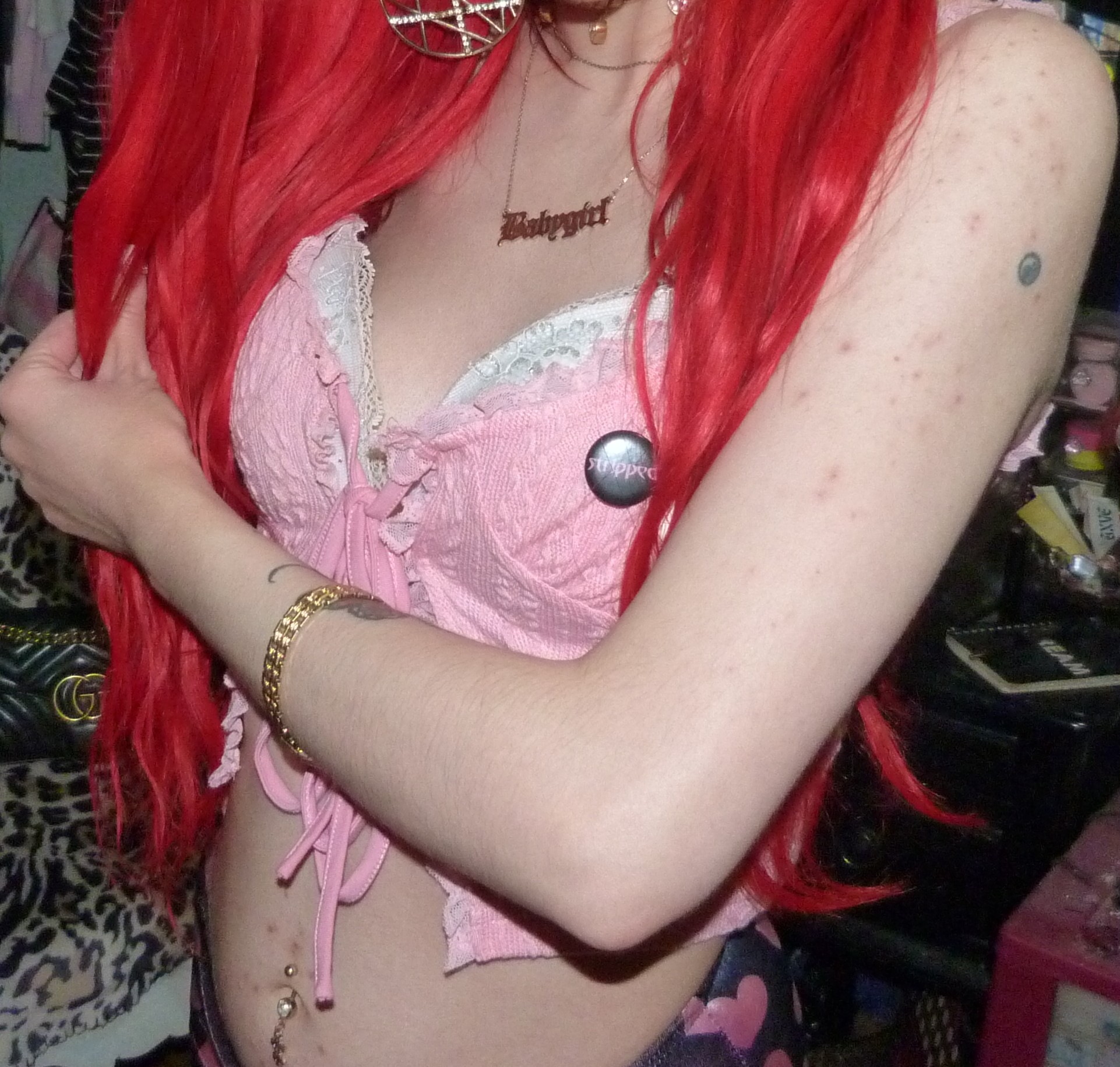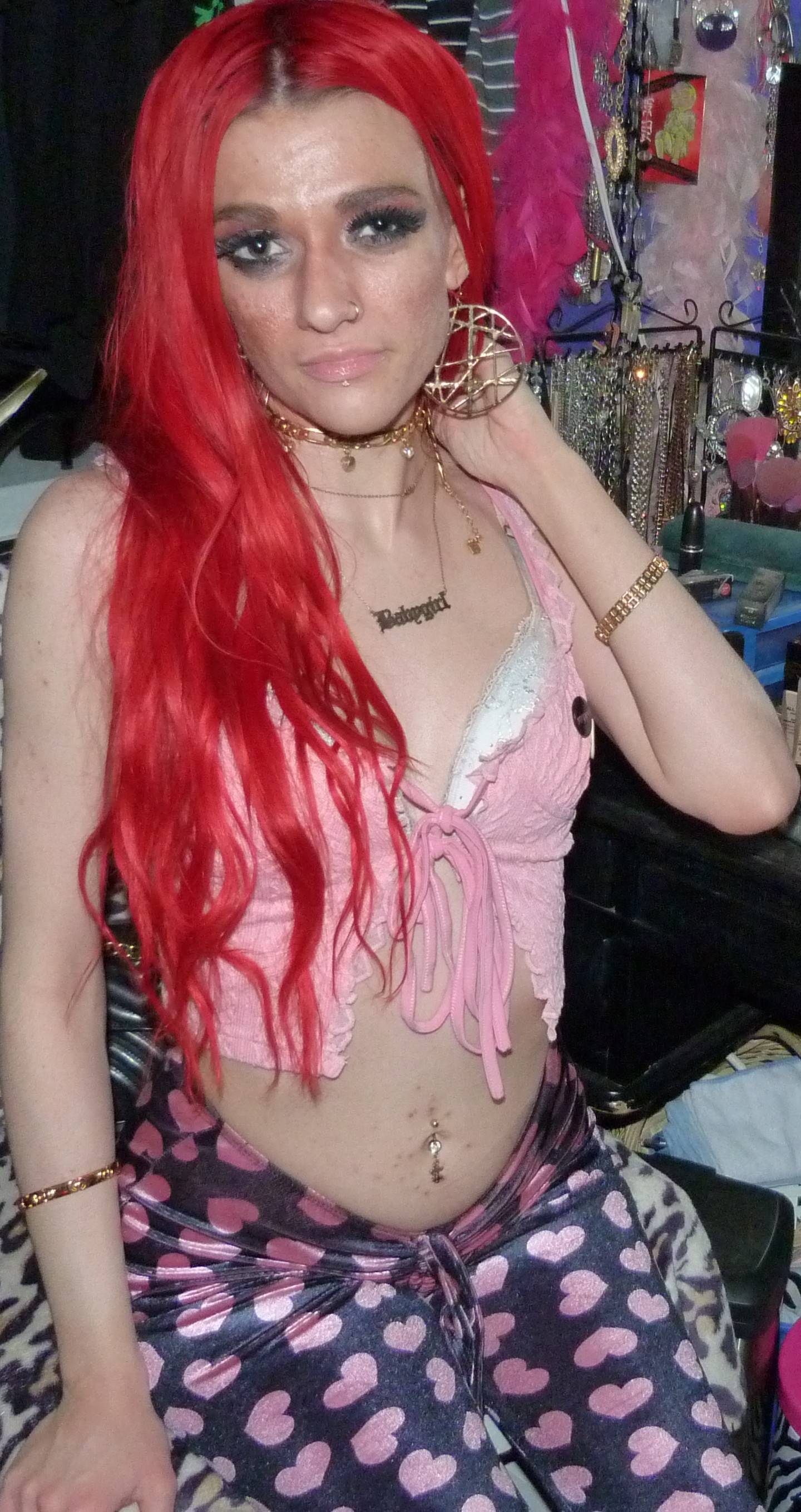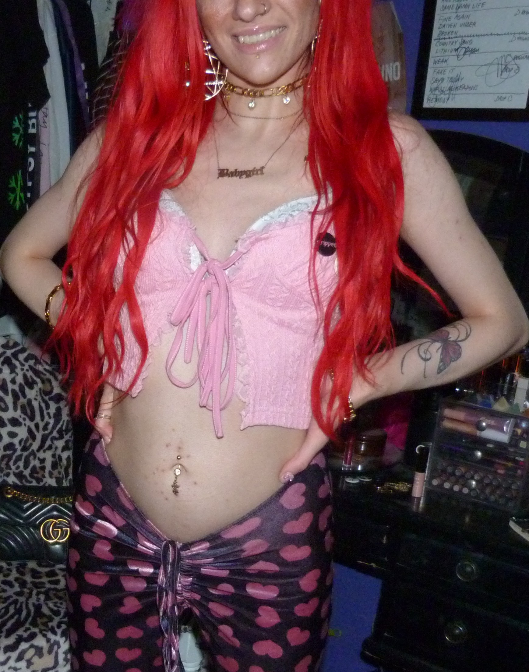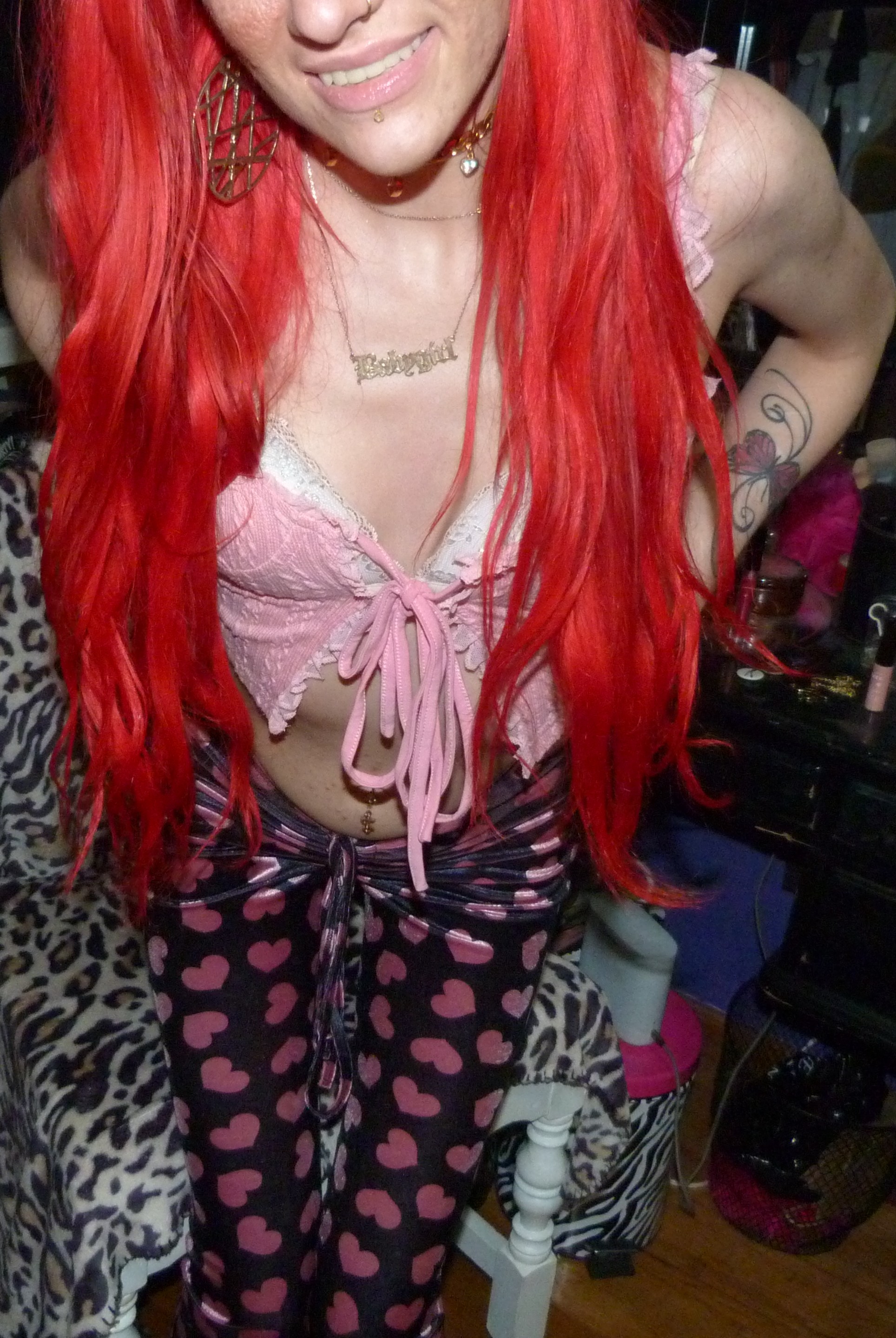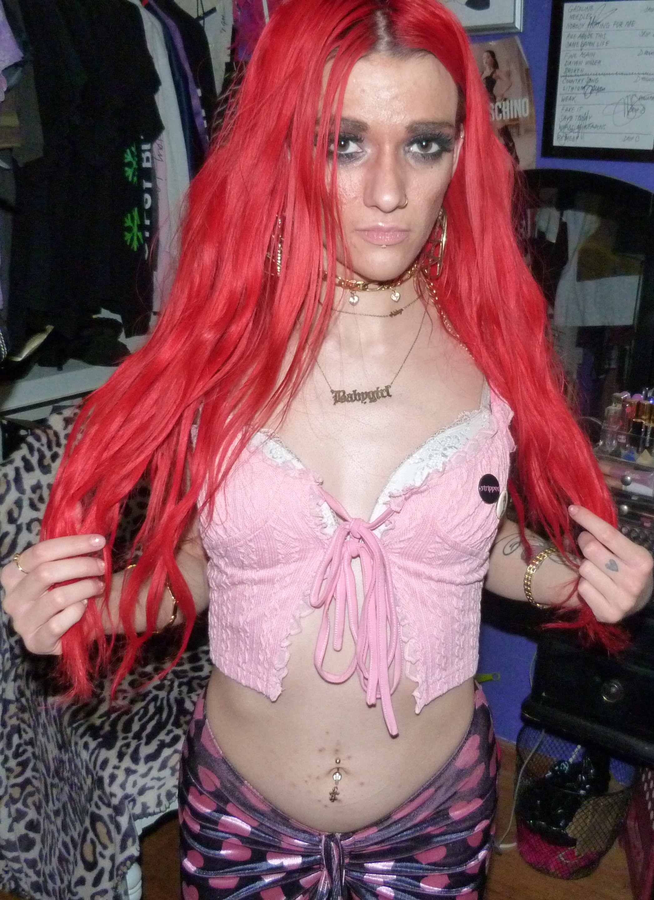 HAPPY VALENTINE’S DAY, I love Valentine’s Day every year! It is one of my favorite holidays to dress up for or whatever, I love celebrating V-Day so much! This year I did a really cool Xtina inspired shoot after the last one that I did, ‘WHAT A GIRL WANTS’ too! It was also a Valentine’s x Christina Aguilera related blog post of mine, based off her second main single. This is based off her second main album! They’re part of a three part series I’m doing this month. This post is the main Valentine’s Day post for the month though especially. I’m excited about this one with this really cool Stripped-era type pair of pants with a super cute frilly pink top, both by Sugar Thrillz from Dolls Kill. It ended up being a really fucking cute Stripped inspired outfit, of course one of my favorite albums from her! It’s this amazing album from 2002, I love it so much! I’ve always really loved it a lot & I loved doing this outfit inspired by the album cover & like era! I’ve done photoshoots inspired by a couple different songs of hers from that album before too but this was an awesome outfit to do with this! The pants & outfit were perfect for Valentine’s Day too, so I thought I would do this whole month of Valentine things with this outfit, of course to celebrate the actual day. I even realized that I had these super cute Stripped pins of Xtina too the other day, so they were so perfect to wear for this photoshoot! I’m so glad that I had these & I forgot about them but I LOVE them! I loved that album & era of Xtina’s so much too, it’s very perfect. I’m really happy about this year though, Valentine’s Day is perfect & I love it this year! I always loved celebrating the holiday, but this time especially, with my actual Valentine finally! That was awesome, the photoshoot turned out pretty good too but this cute outfit is mainly the best thing ever this time!