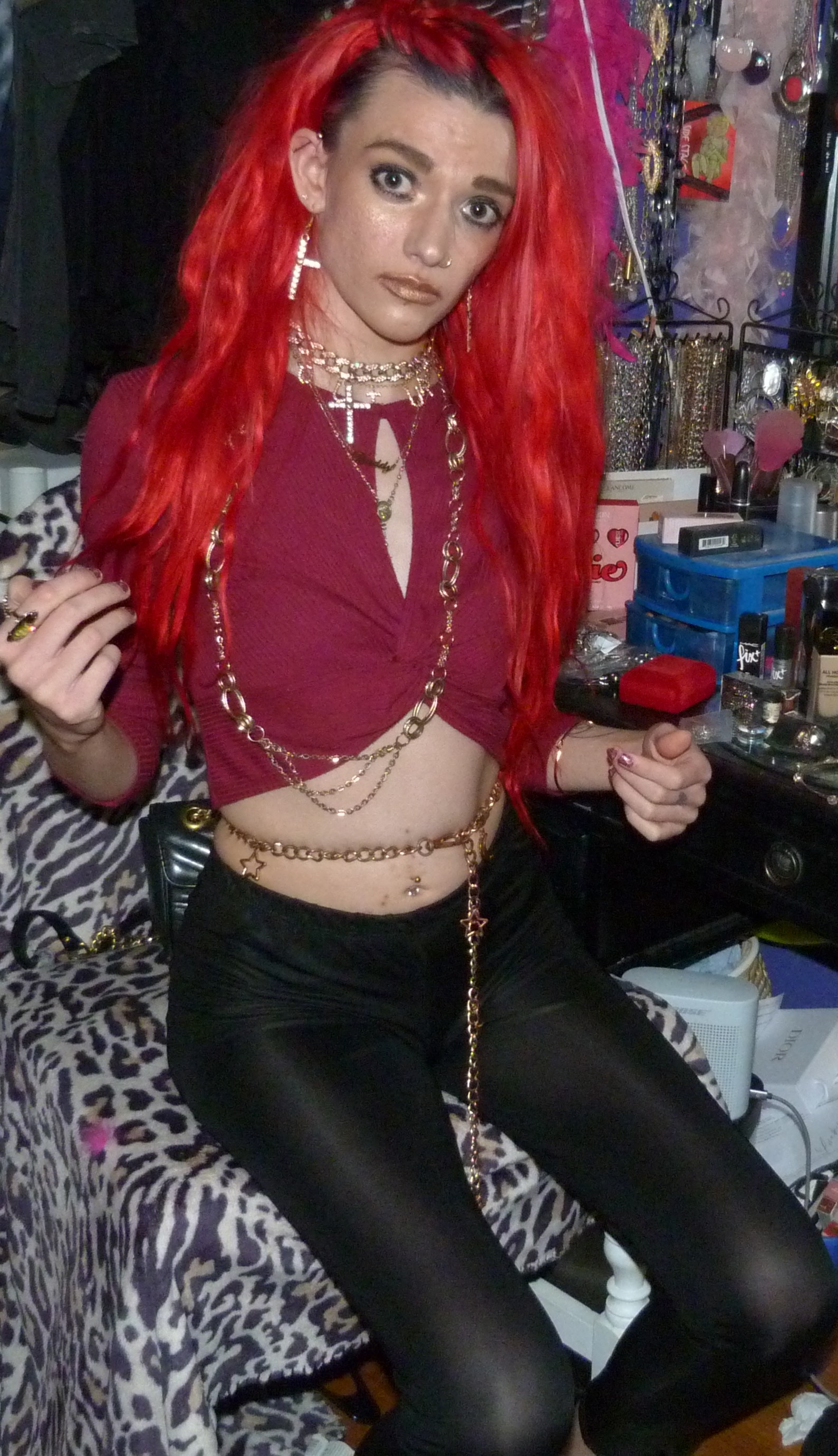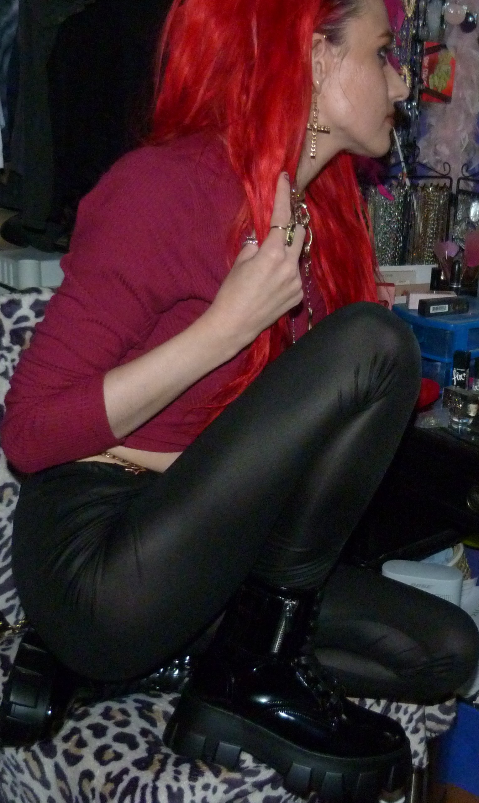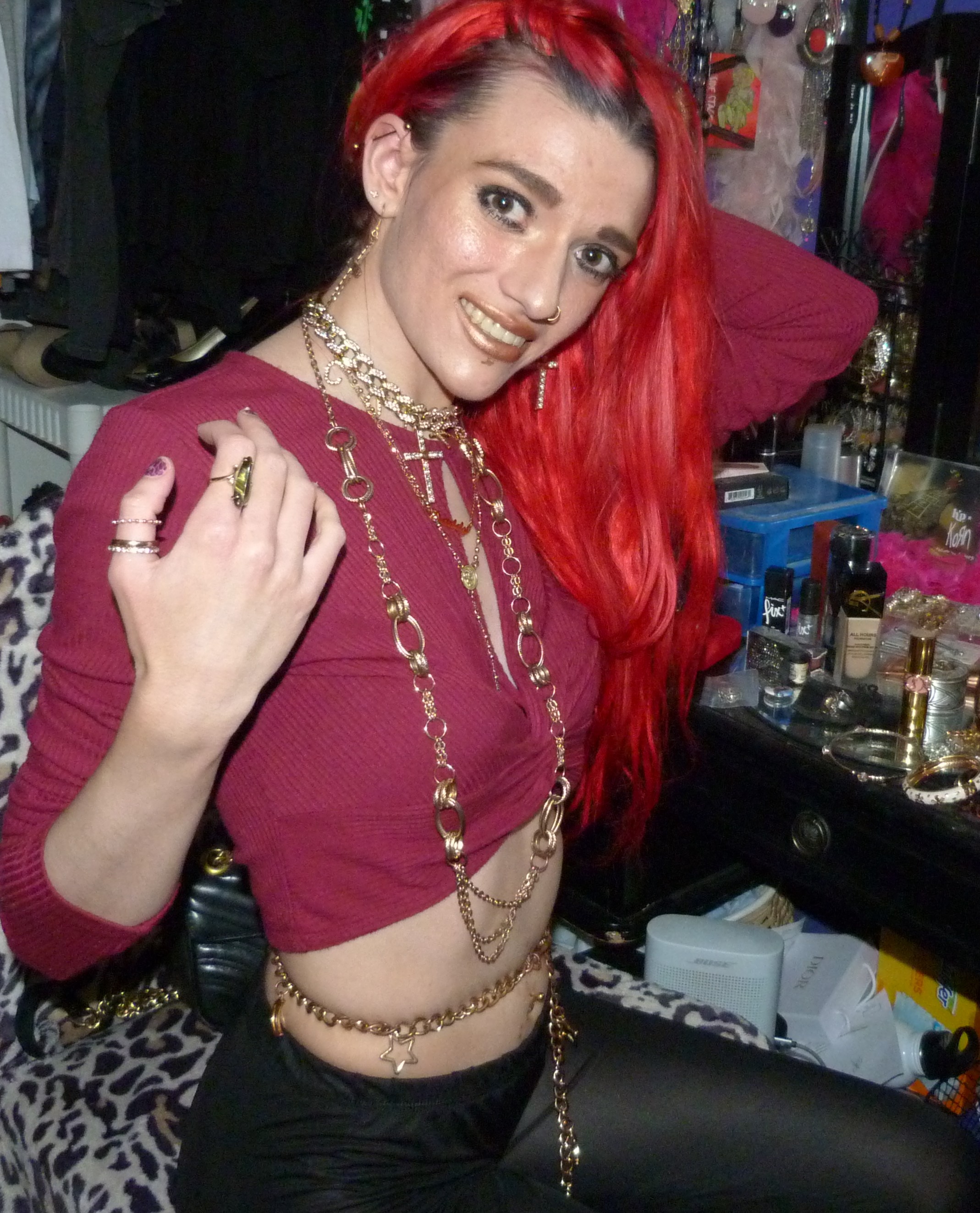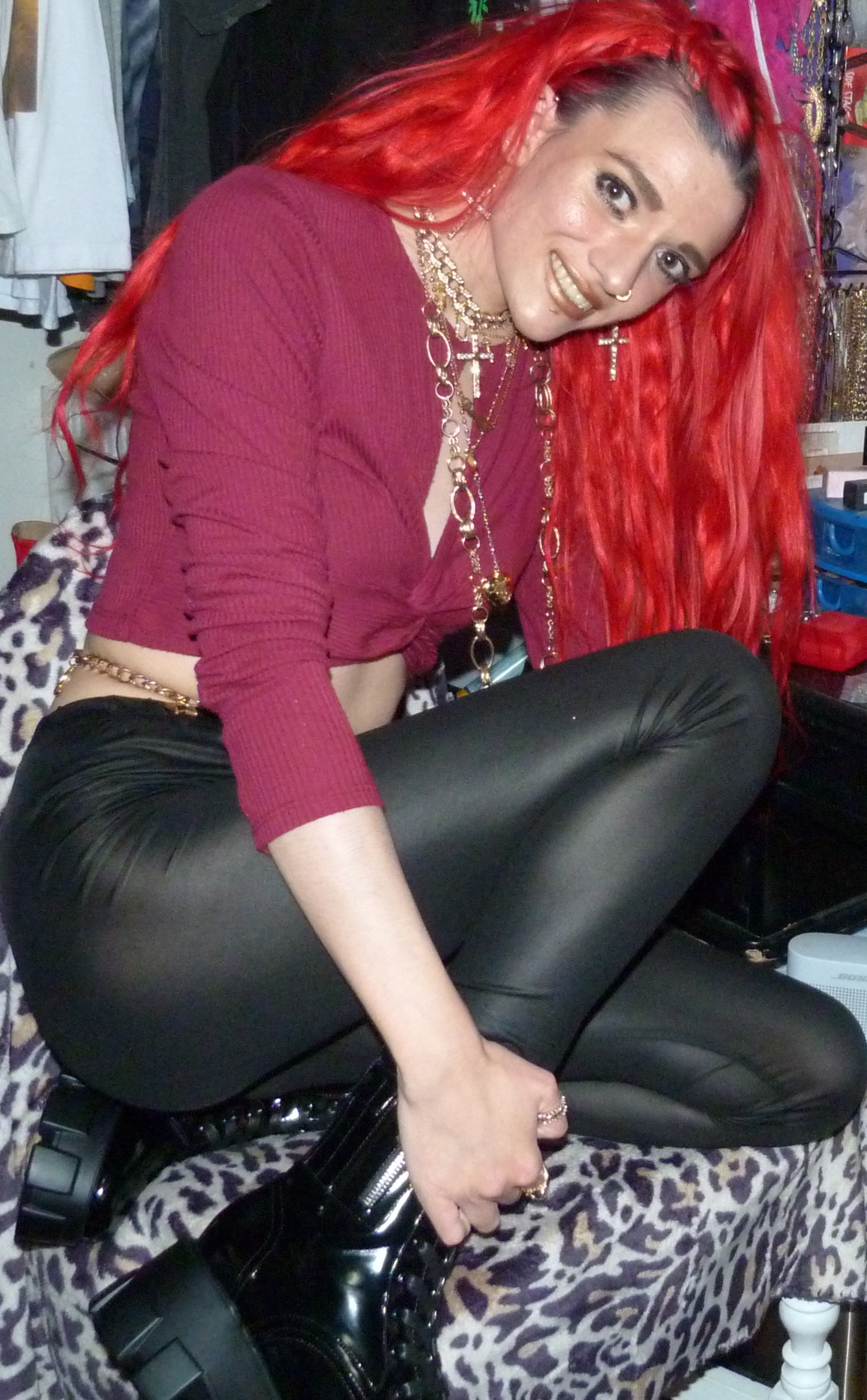 Just a photoshoot with a Dolls Kill Top & leggings from 2021 & gold jewelry! Loved the red hair still!