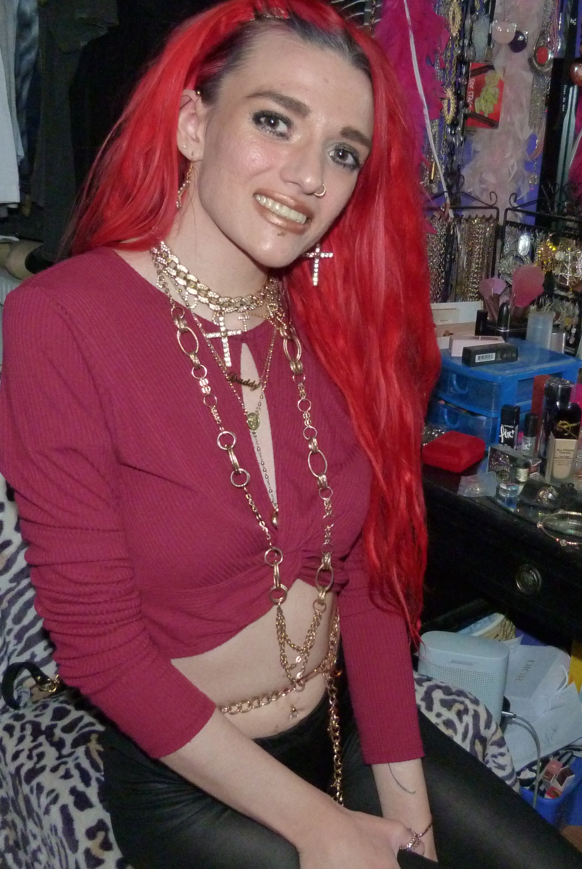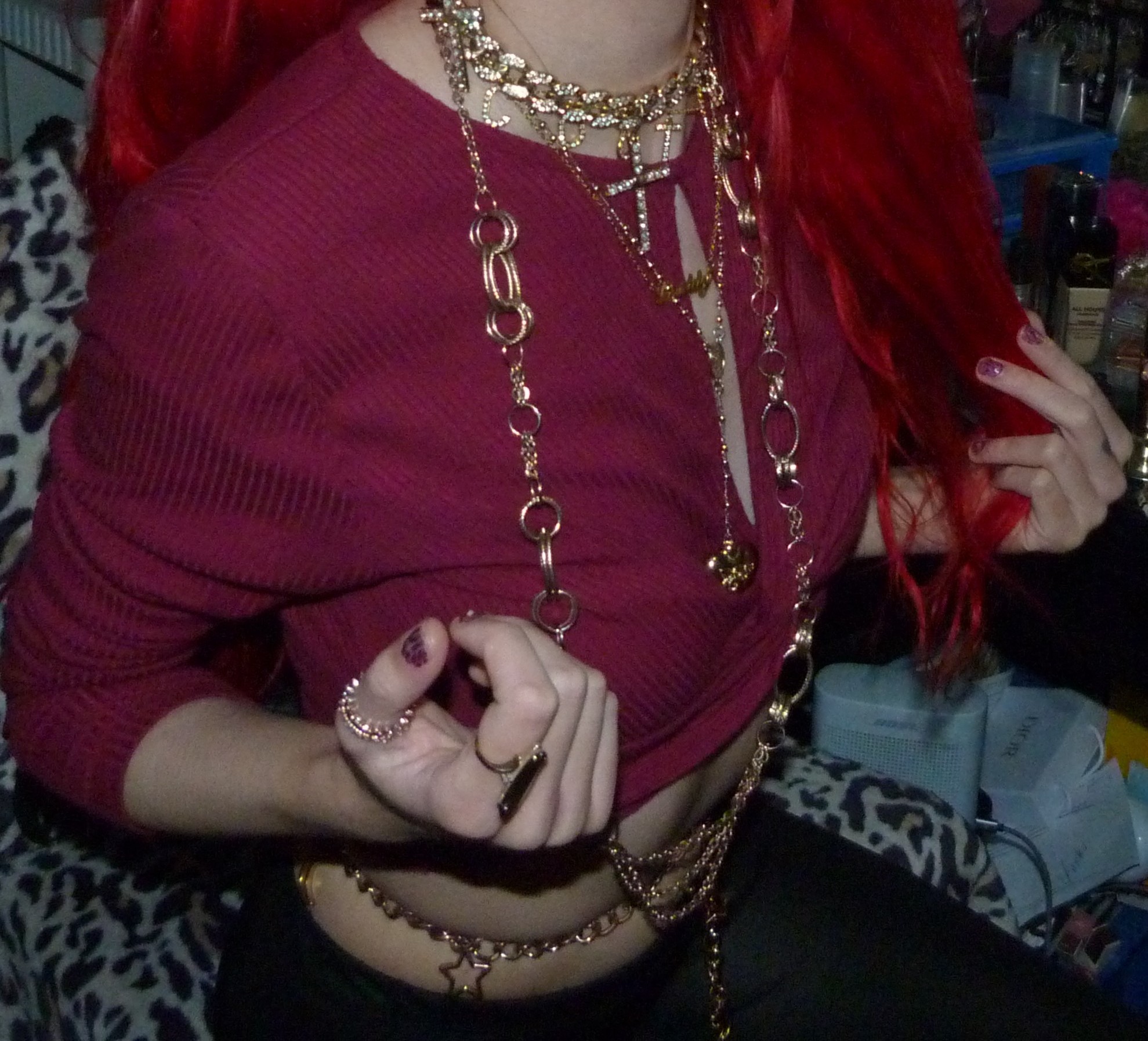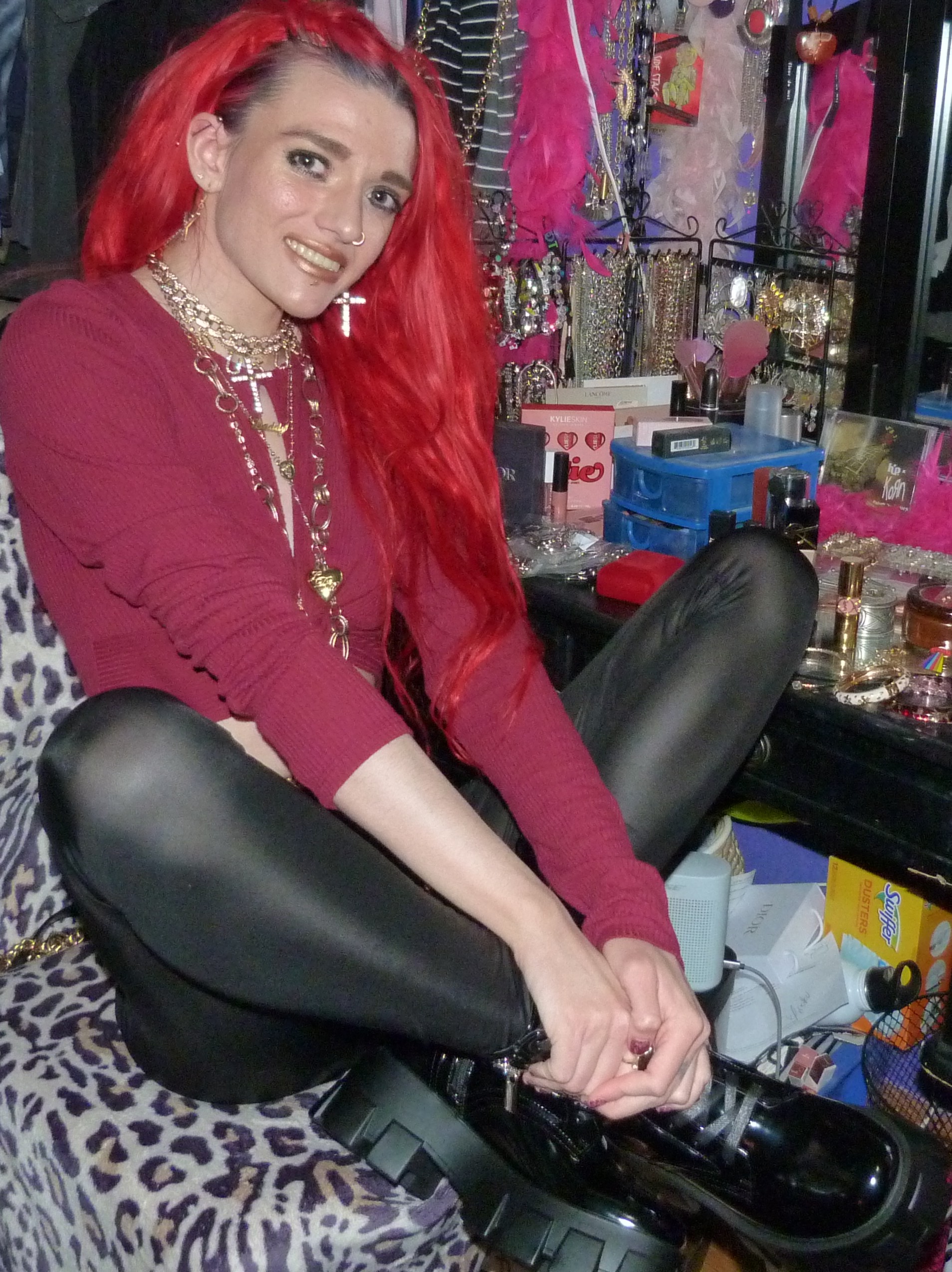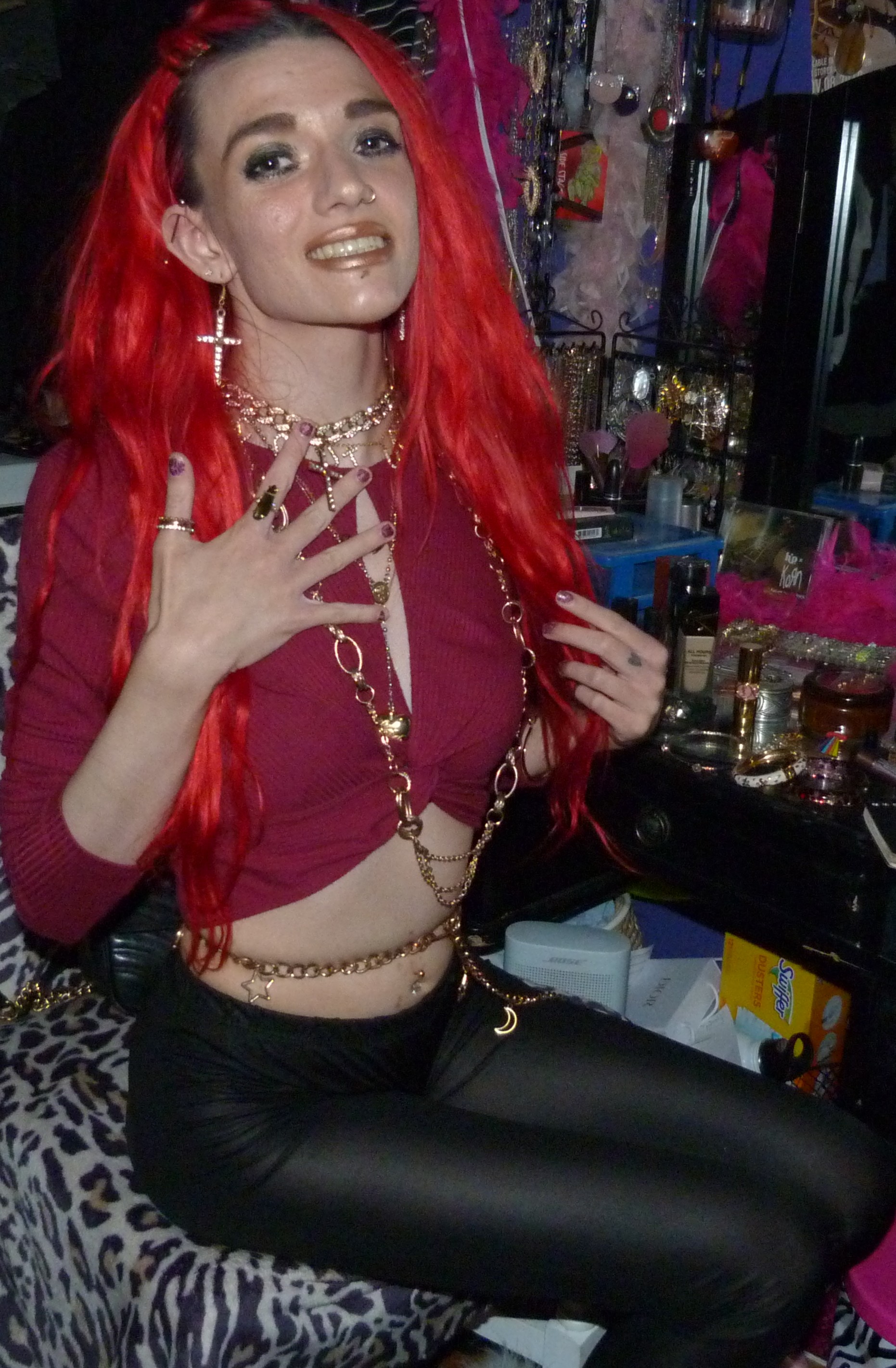 Just a photoshoot with a Dolls Kill Top & leggings from 2021 & gold jewelry! Loved the red hair still!