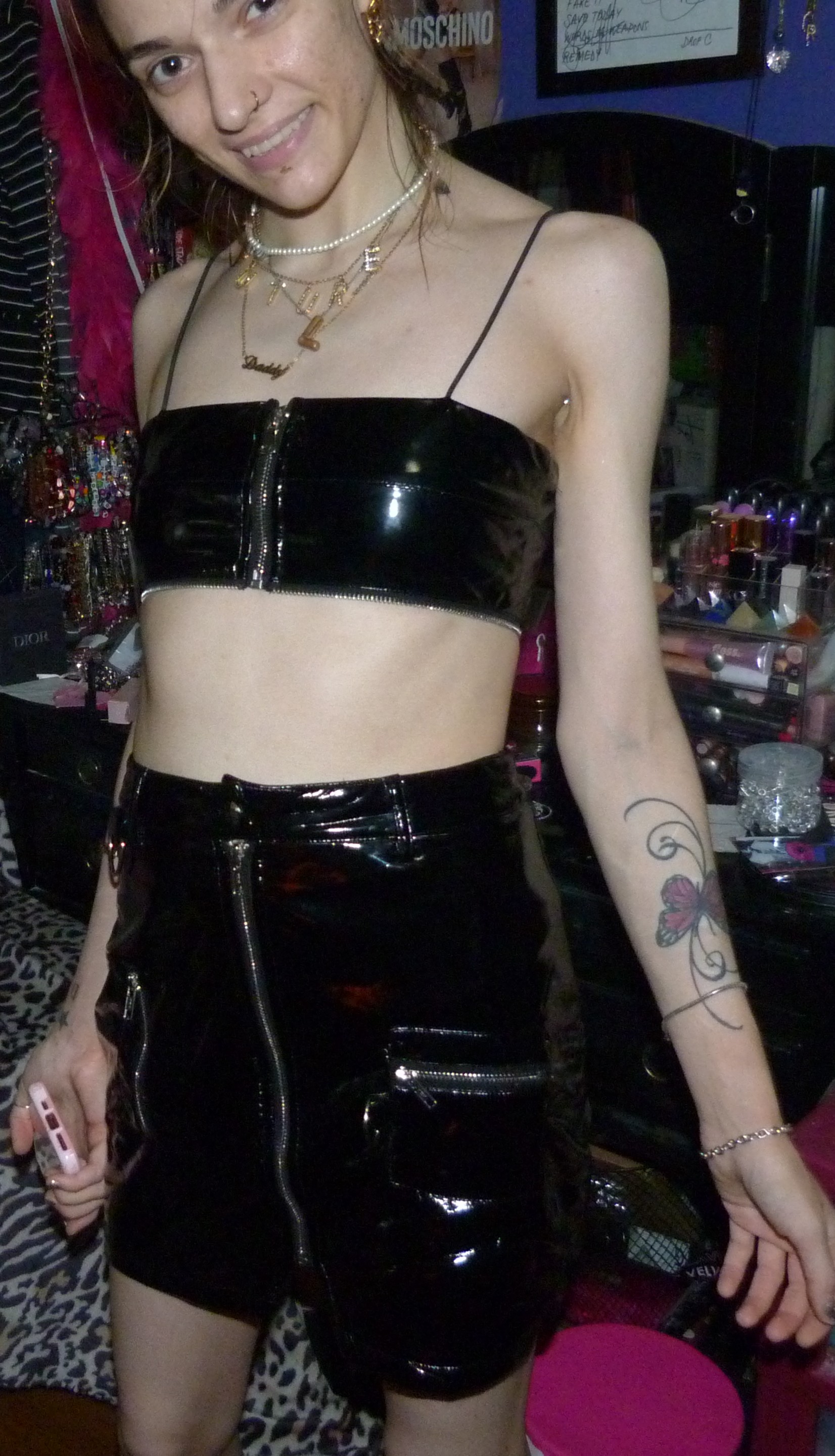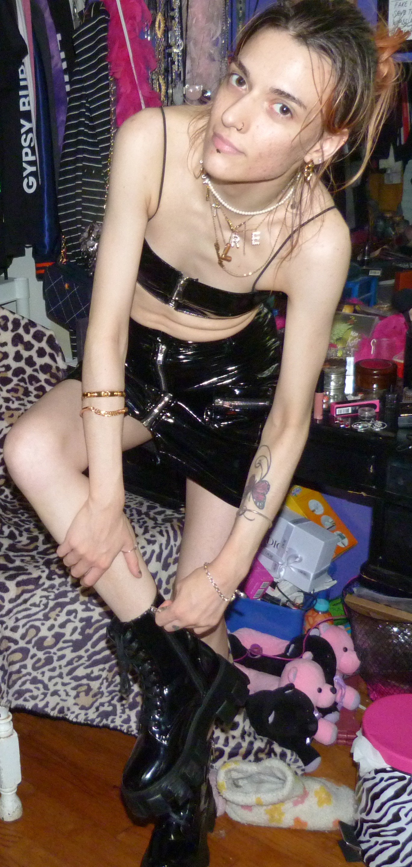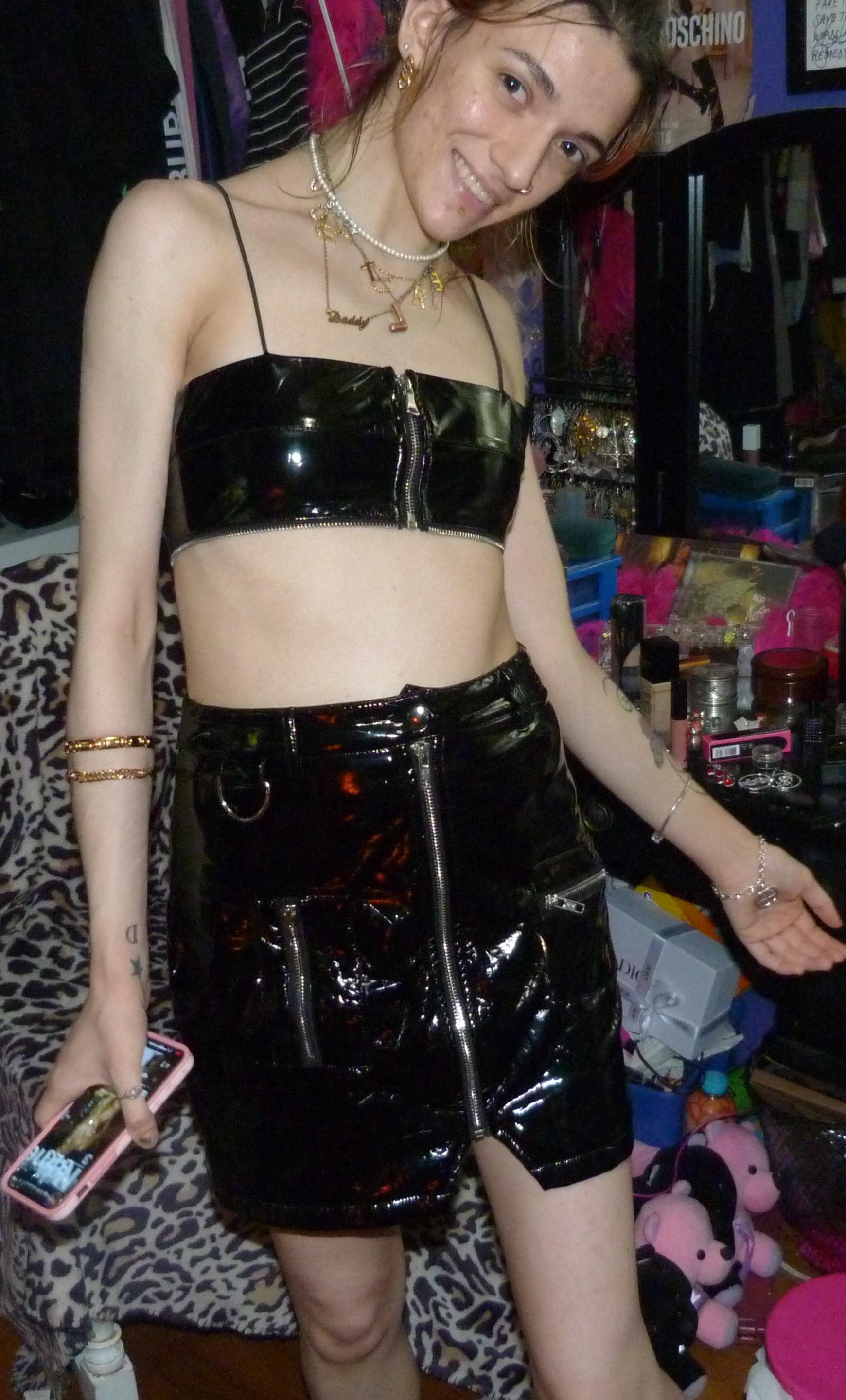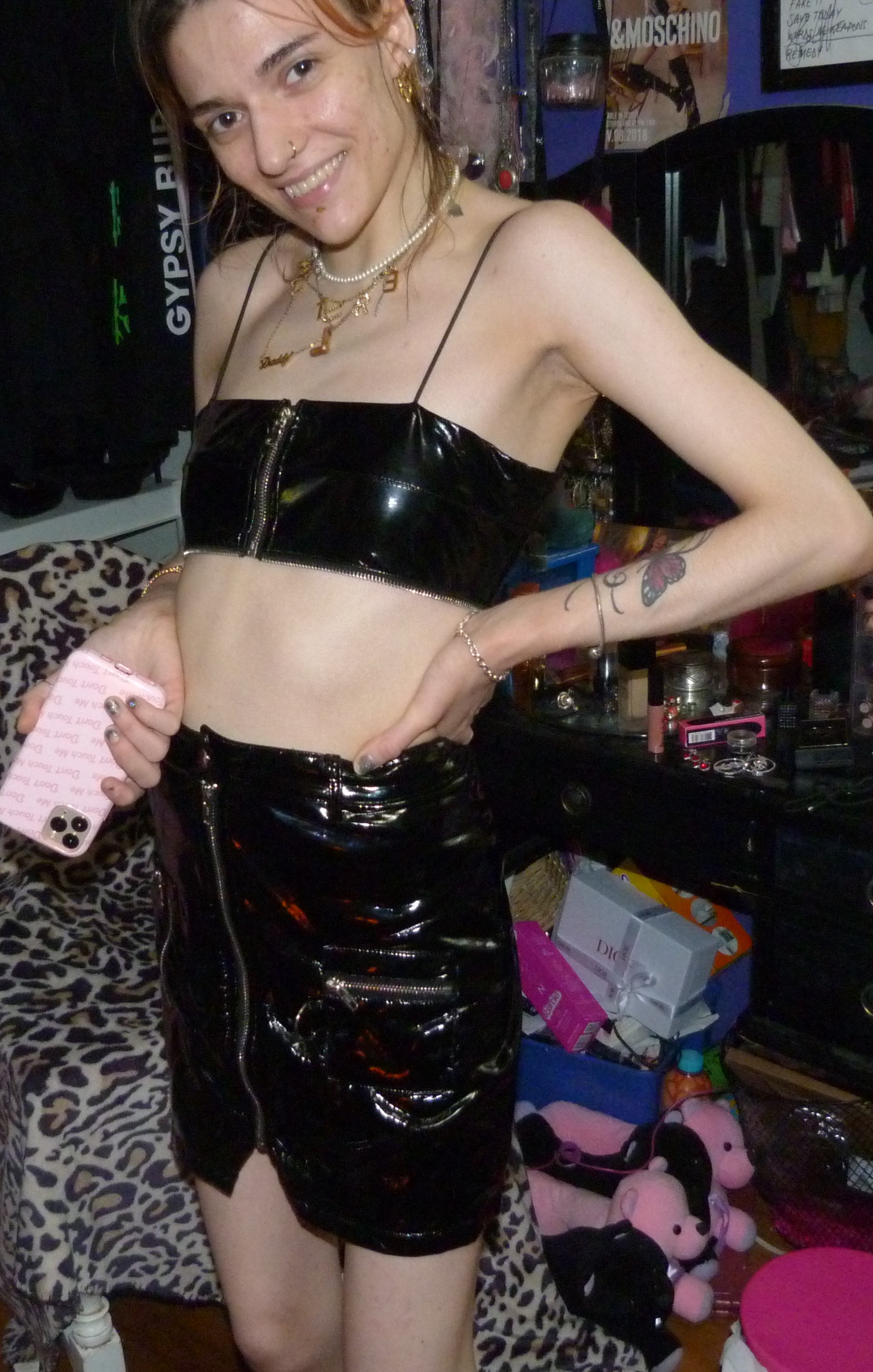 K so here’s my second photoshoot I did recently, this month actually, it’s a good promo photoshoot for right now! I’ve done like this set before but really wanted to use it for promo again for this with my new ‘Don’t Touch Me’ iPhone case with it. With my favorite ABC necklaces + everything! This is a cool cute post I was getting back into.