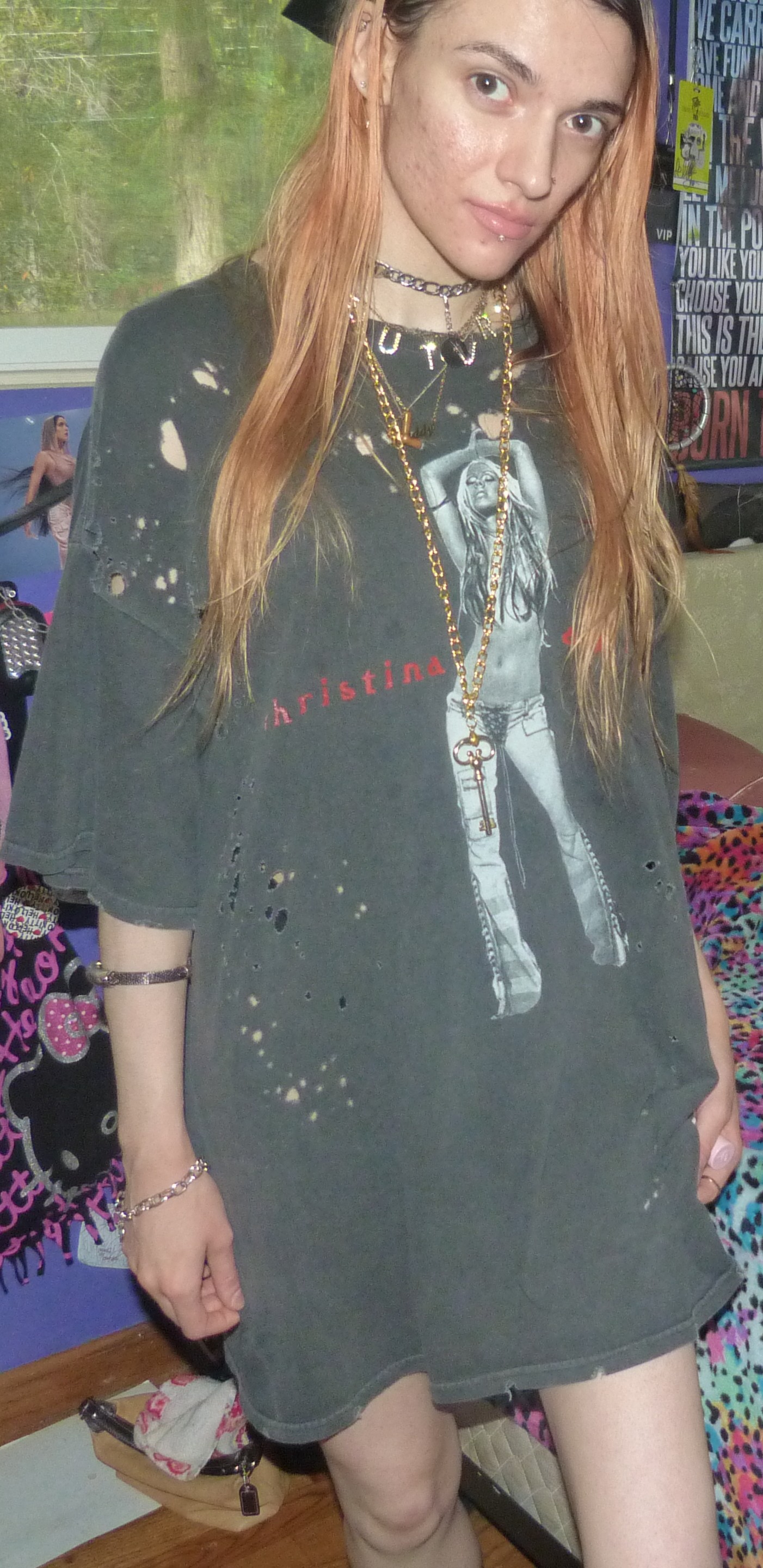 i’m back with another Christina Aguilera inspired photoshoot! this one is of this stripped t-shirt I got online because I saw it in store + wanted it really bad later! I love stripped, it is so good + I love xtina!