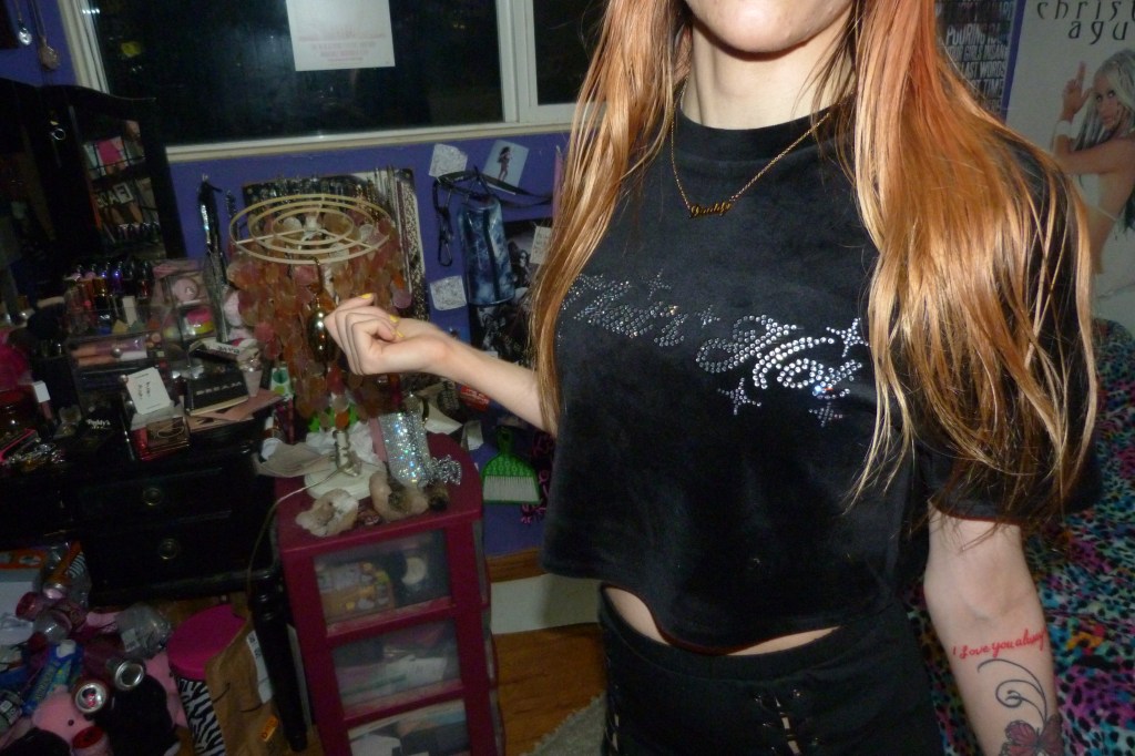 AWESOME PARIS HILTON NEW T-SHIRT THAT I GOT TO THIS COOL SONG WITH A NEW DOLLS KILL SKIRT.