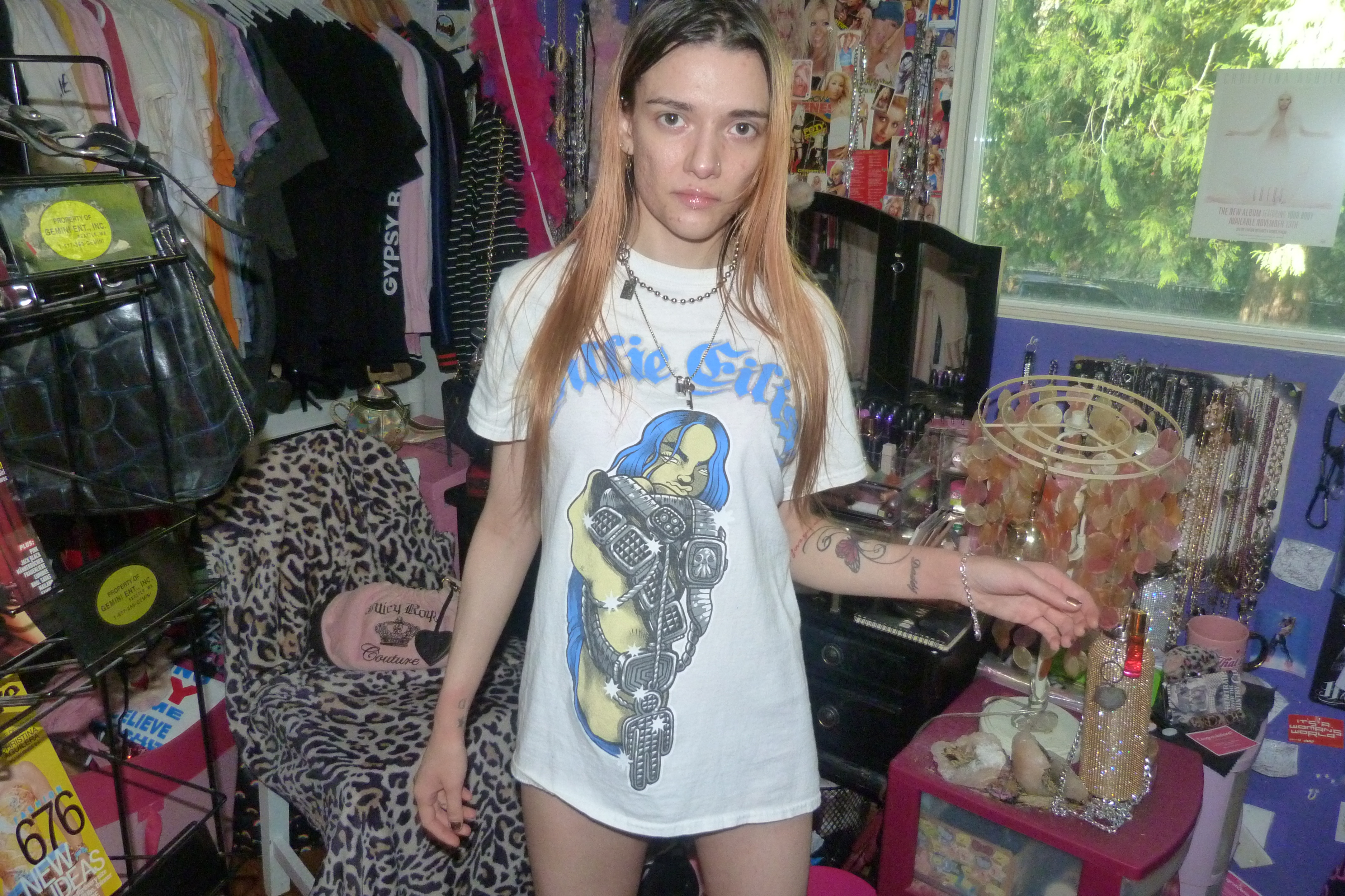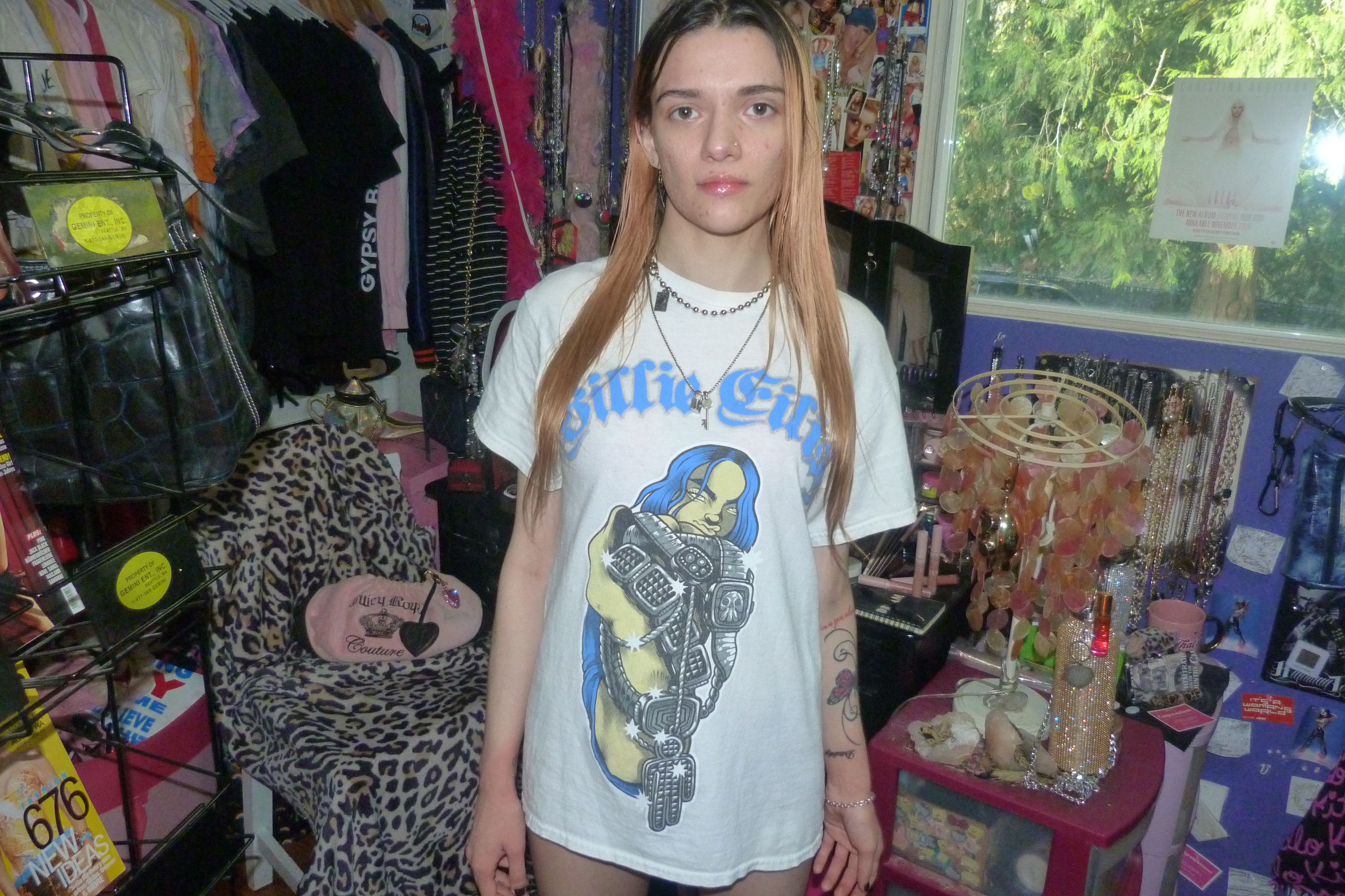 BILLIE EILISH T-SHIRT PHOTOSHOOT THAT I PUT TOGETHER! IT’S A T-SHIRT FROM LIKE 2019 THAT I LOVE. I WORE CURIOUS BY BRITNEY SPEARS PERFUME WITH IT + A TETRIS LIPGLOSS.