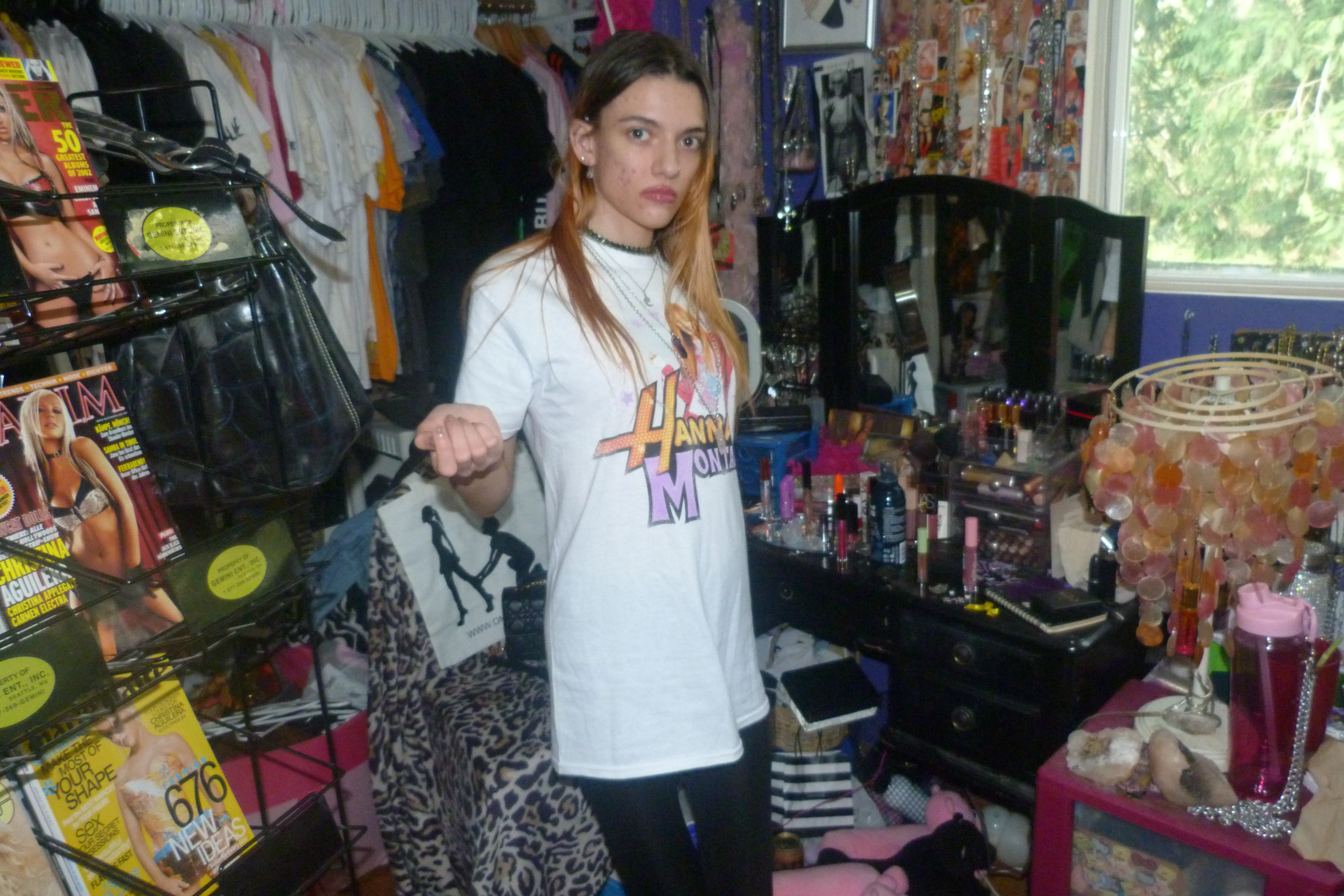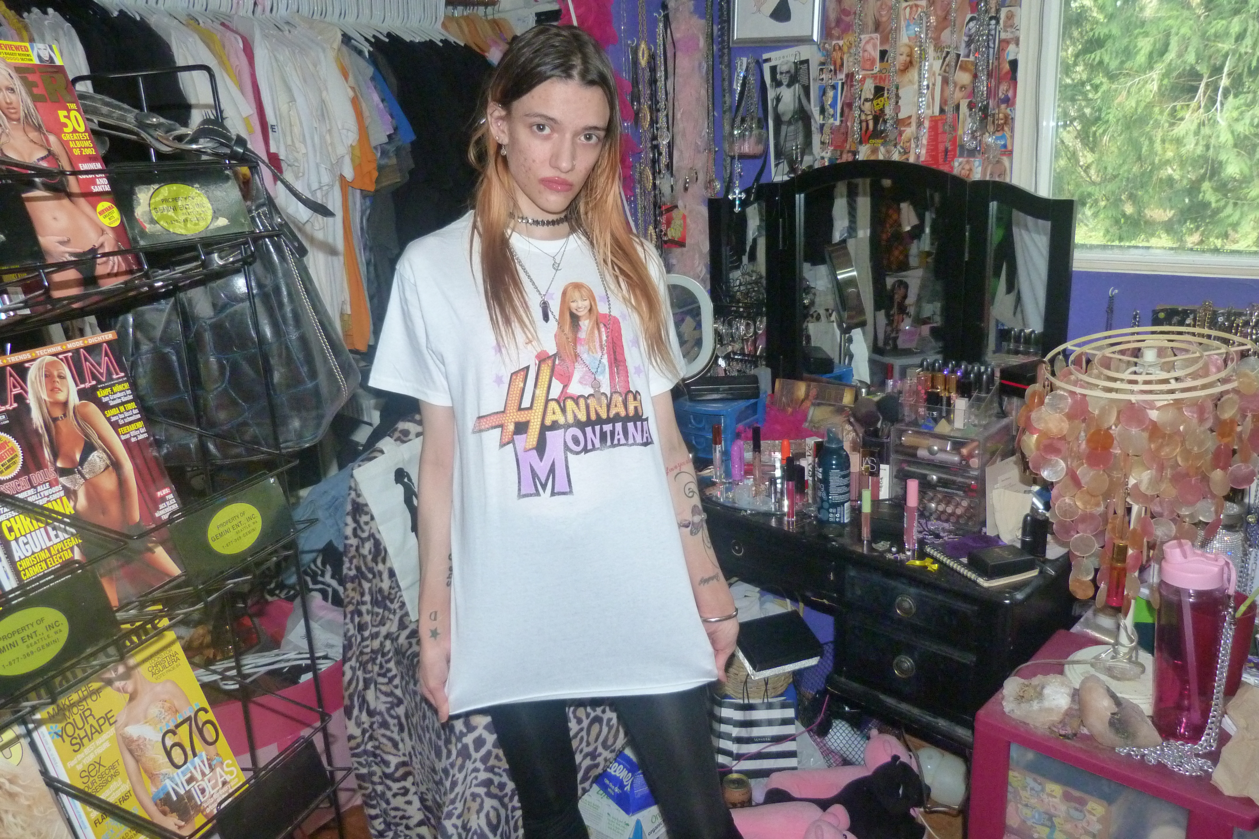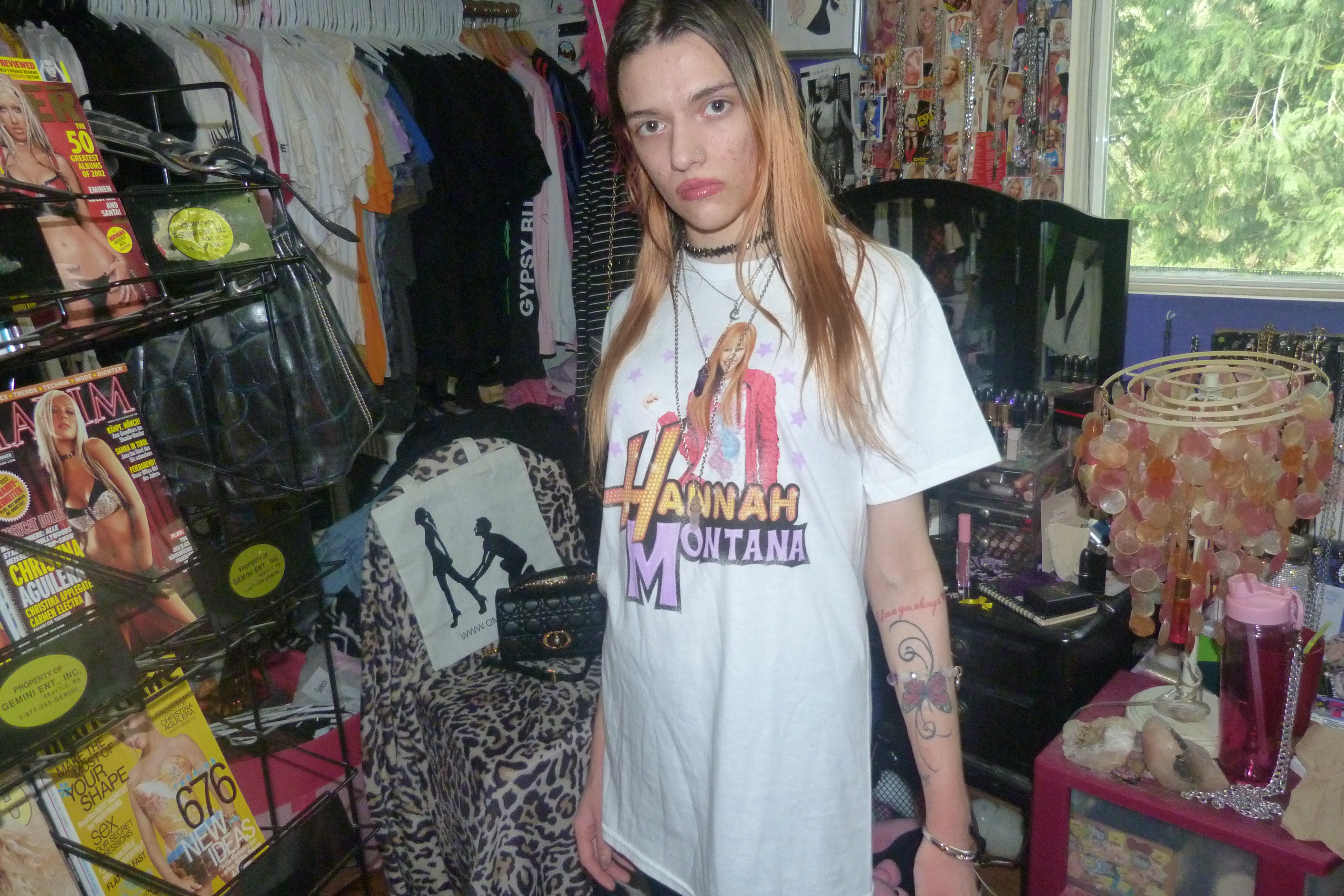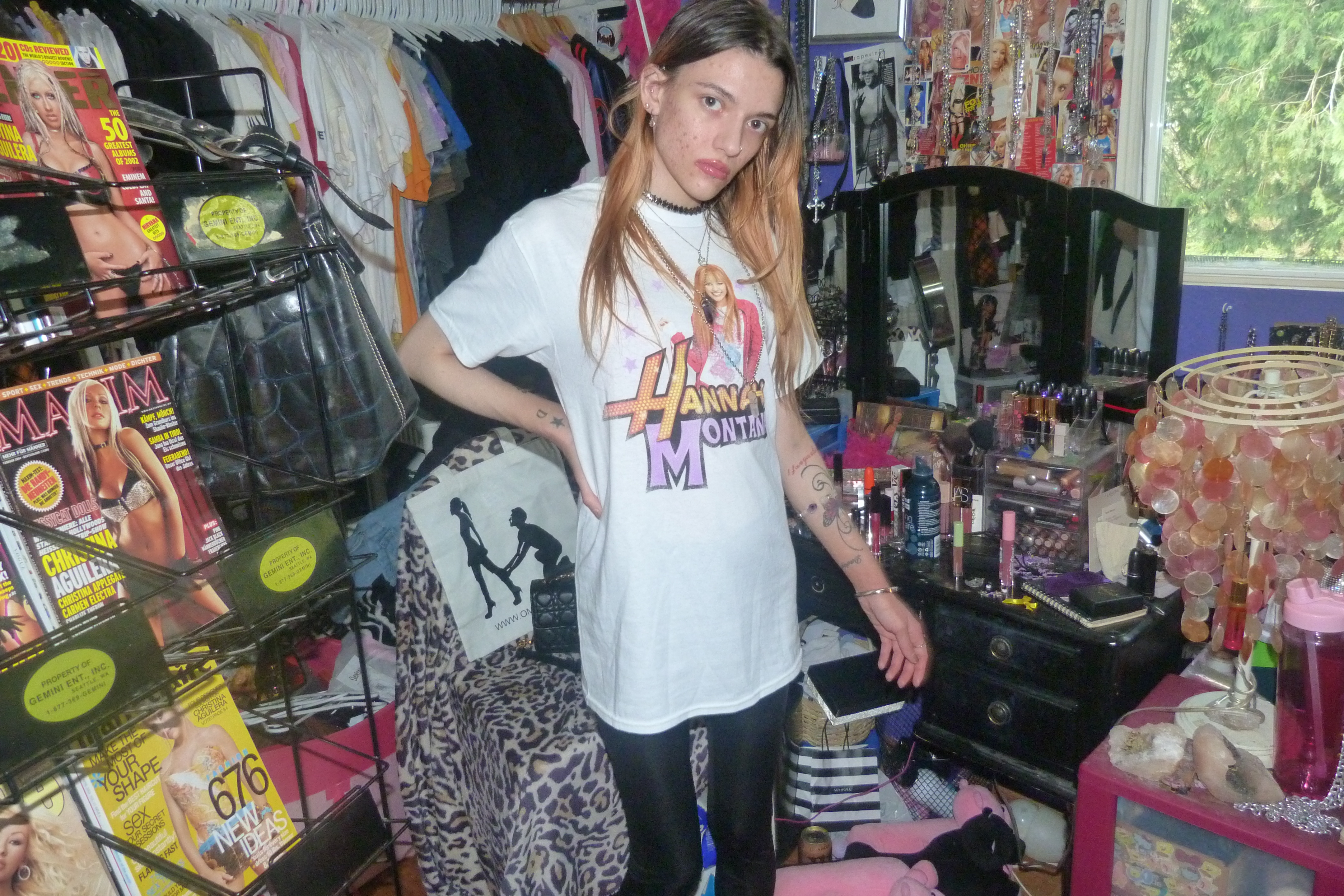 HANNAH MONTANA T-SHIRT THAT I JUST DID THIS PHOTOSHOOT, FOR! SO, I LOVE HANNAH MONTANA LATELY, LIKE MY DOLLS + EVERYTHING, IT’S AWESOME FOR SURE + I’M A BIG FAN!