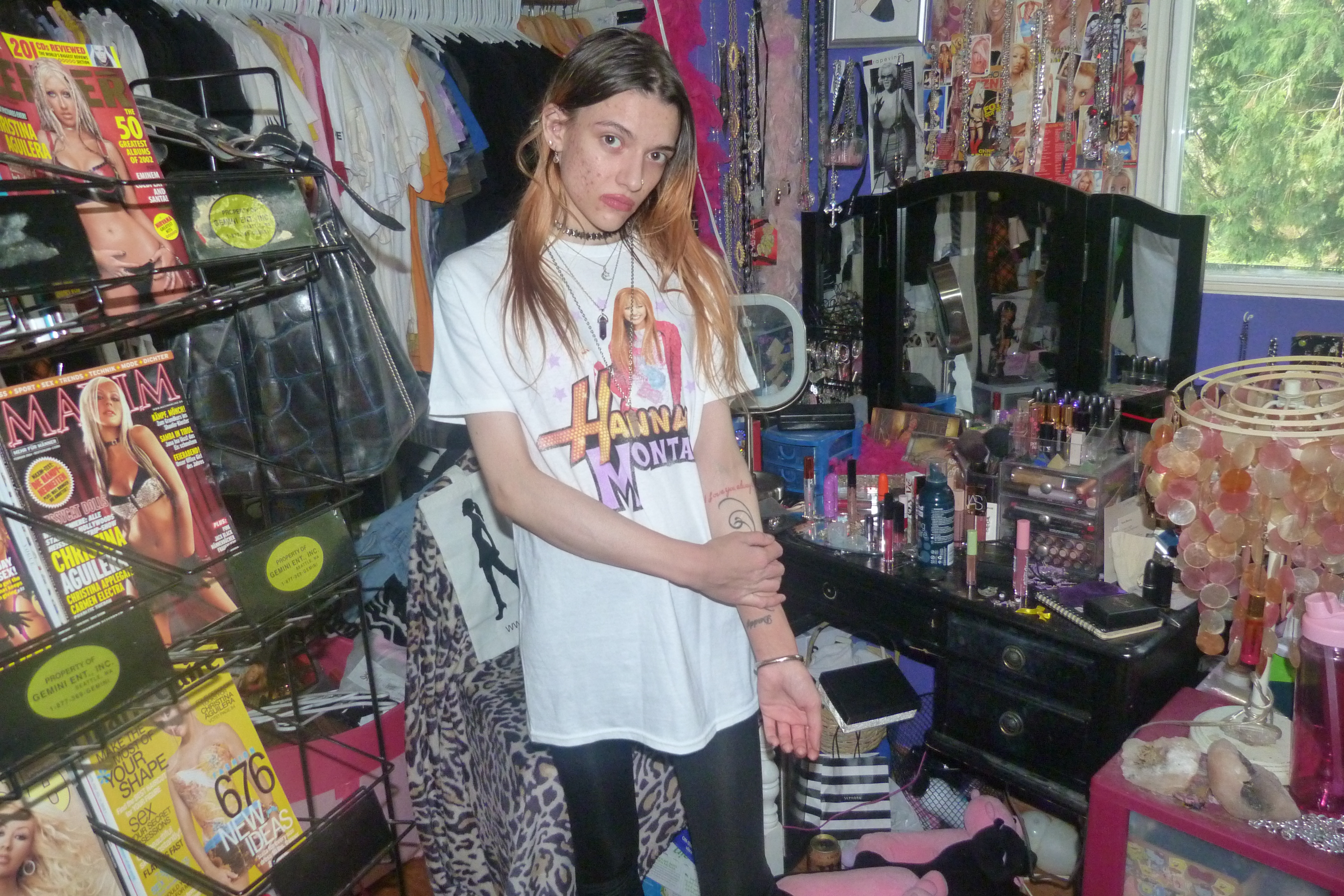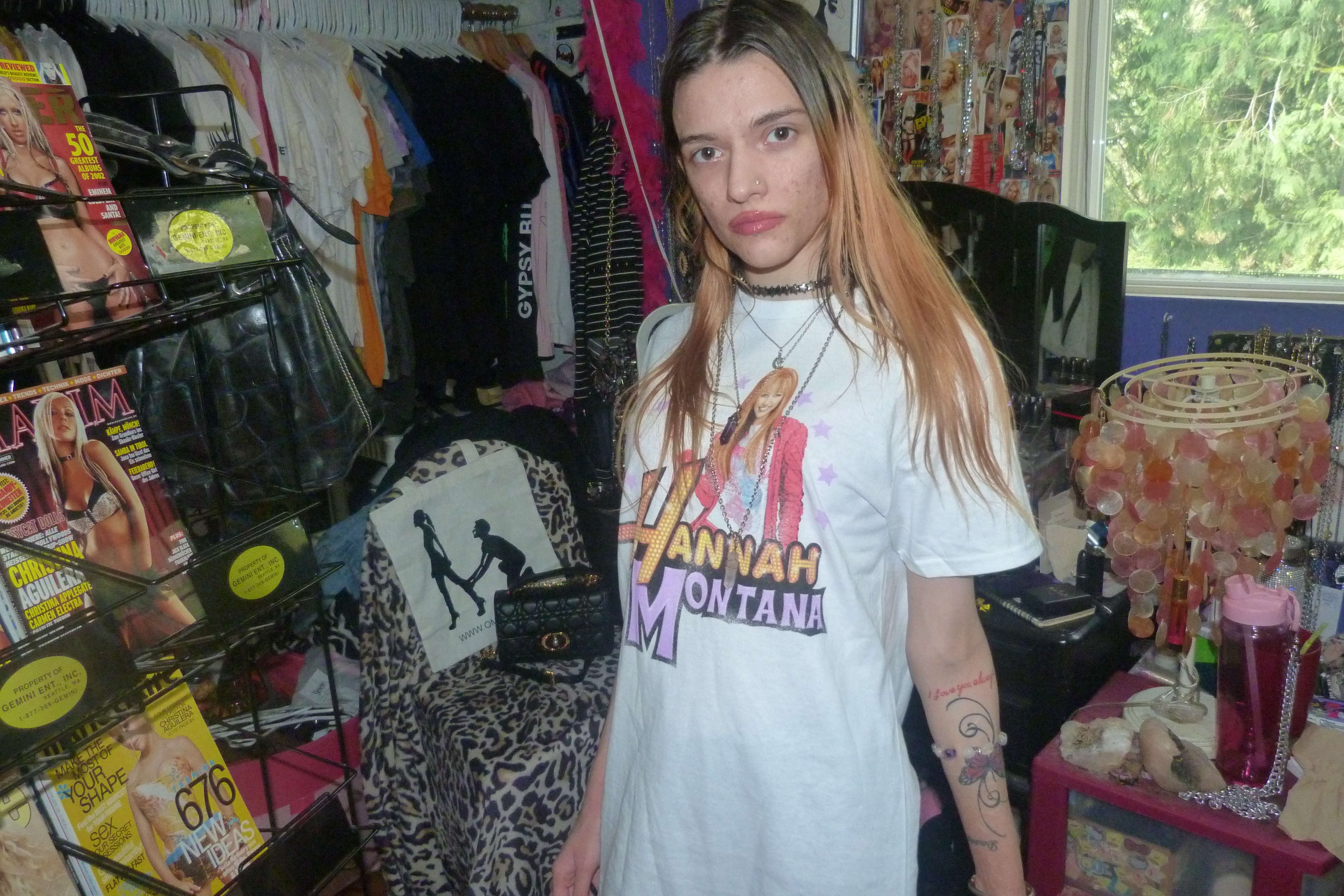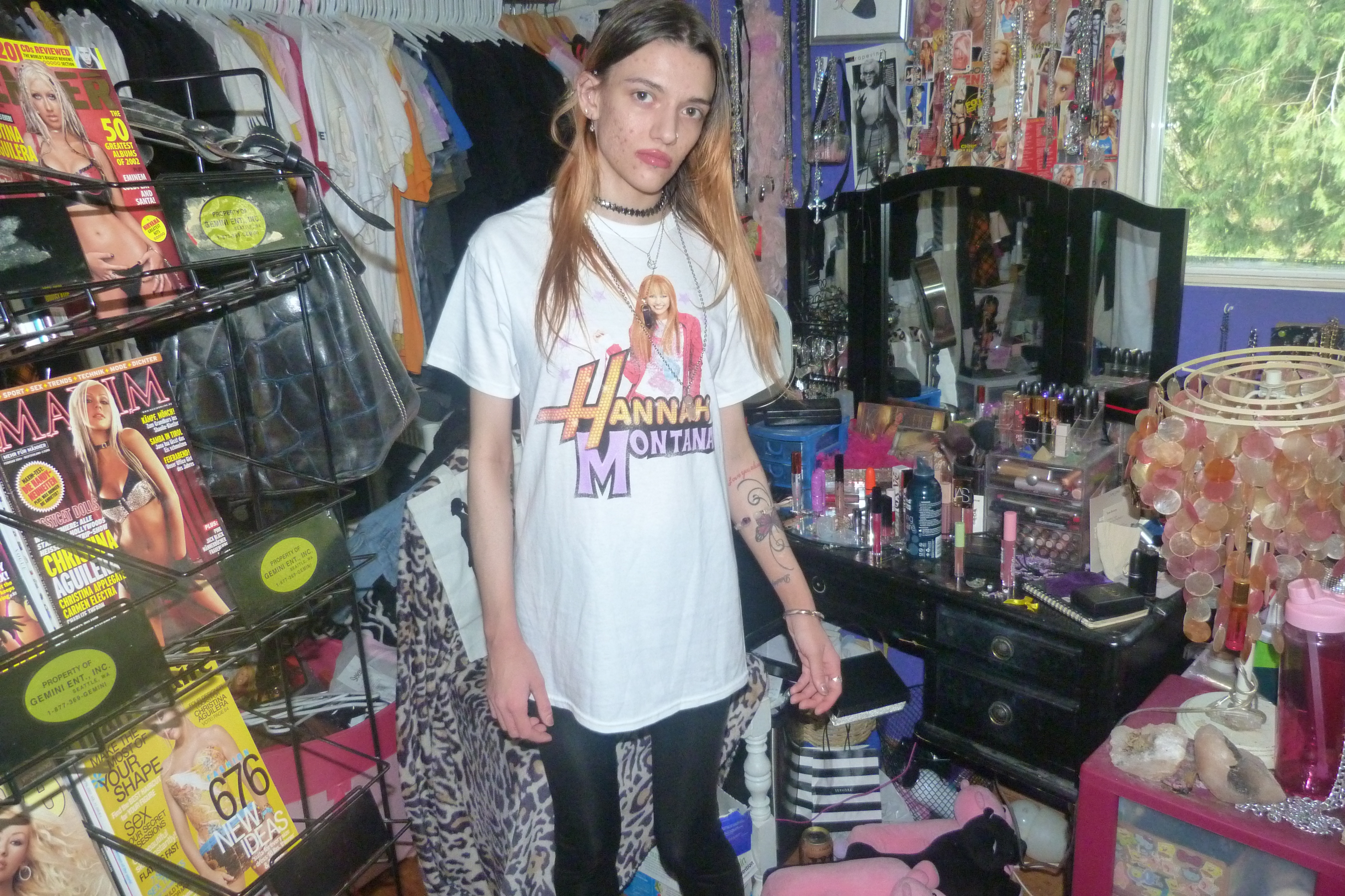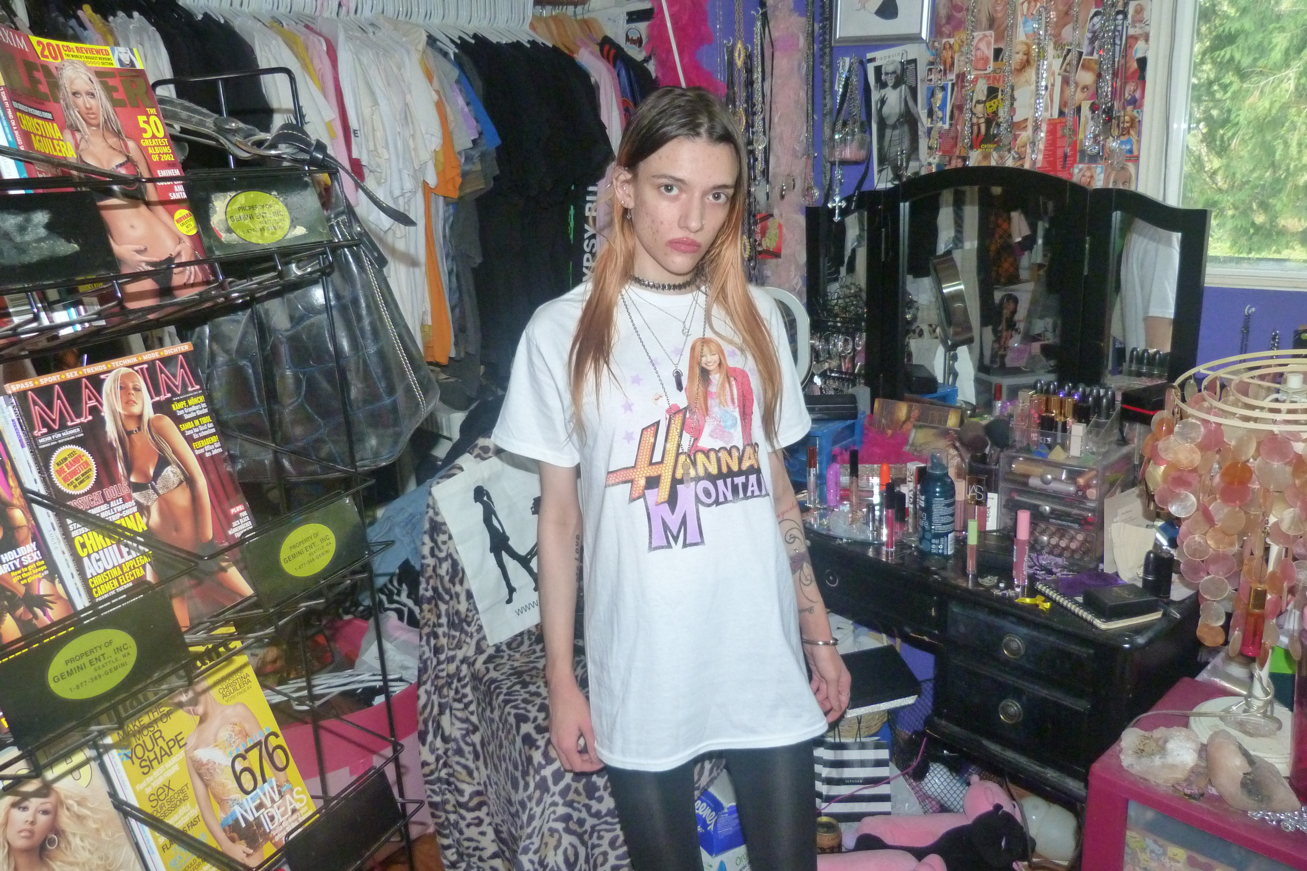 HANNAH MONTANA T-SHIRT THAT I JUST DID THIS PHOTOSHOOT, FOR! SO, I LOVE HANNAH MONTANA LATELY, LIKE MY DOLLS + EVERYTHING, IT’S AWESOME FOR SURE + I’M A BIG FAN!