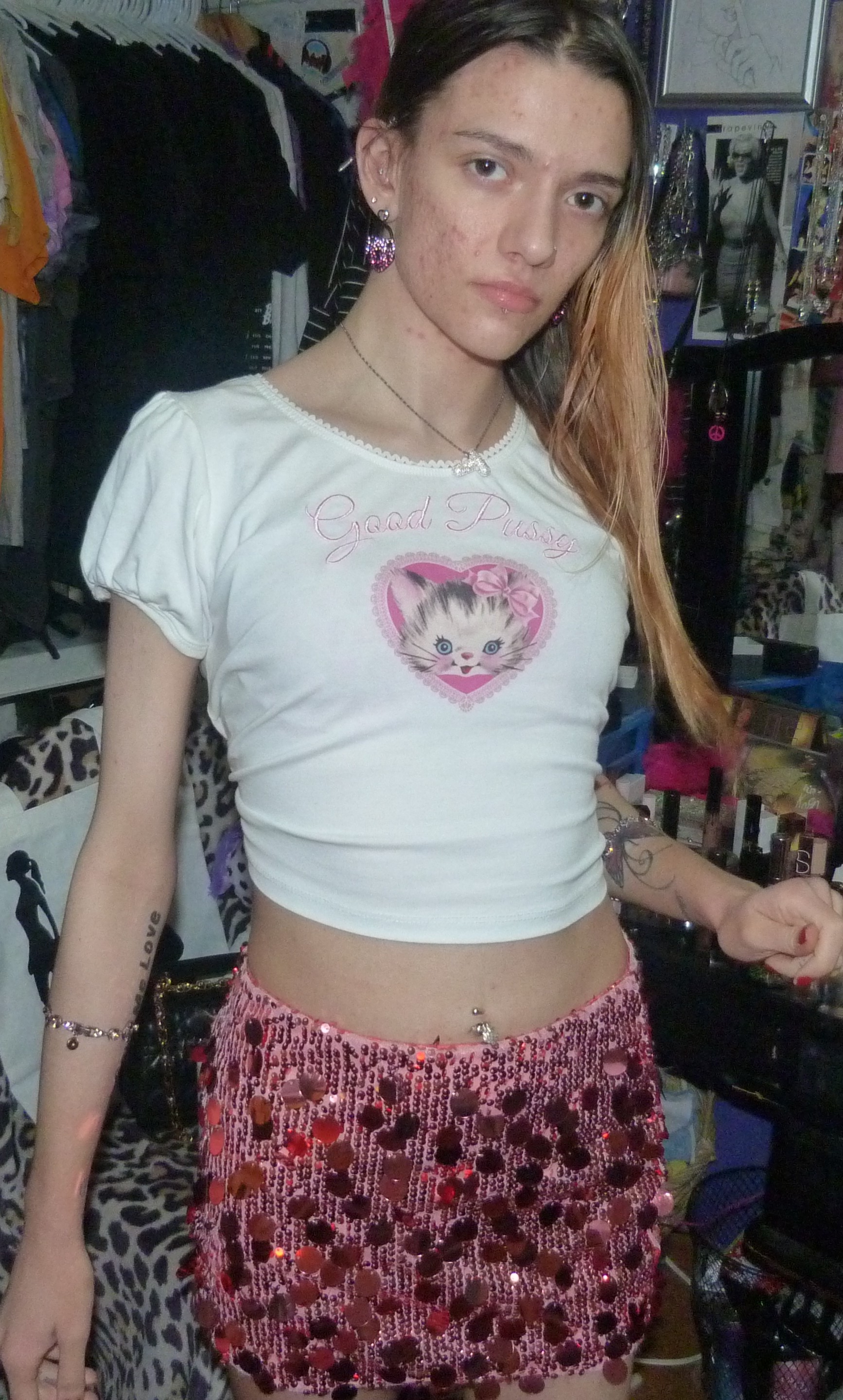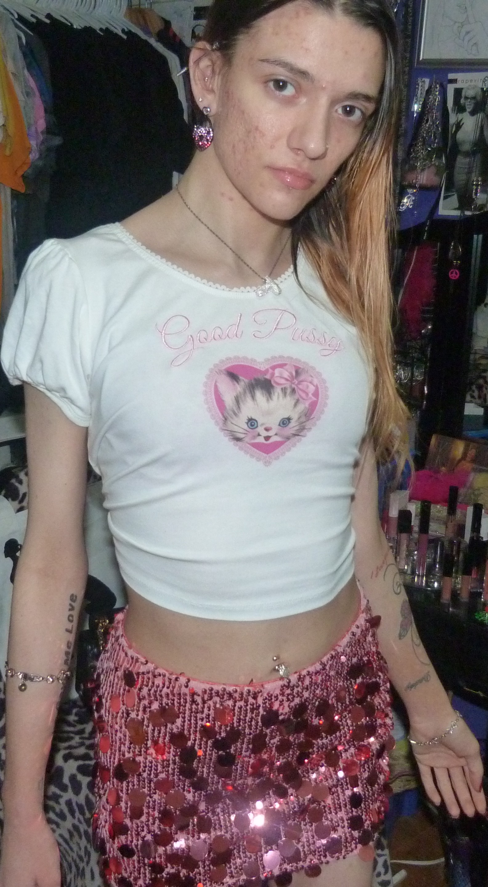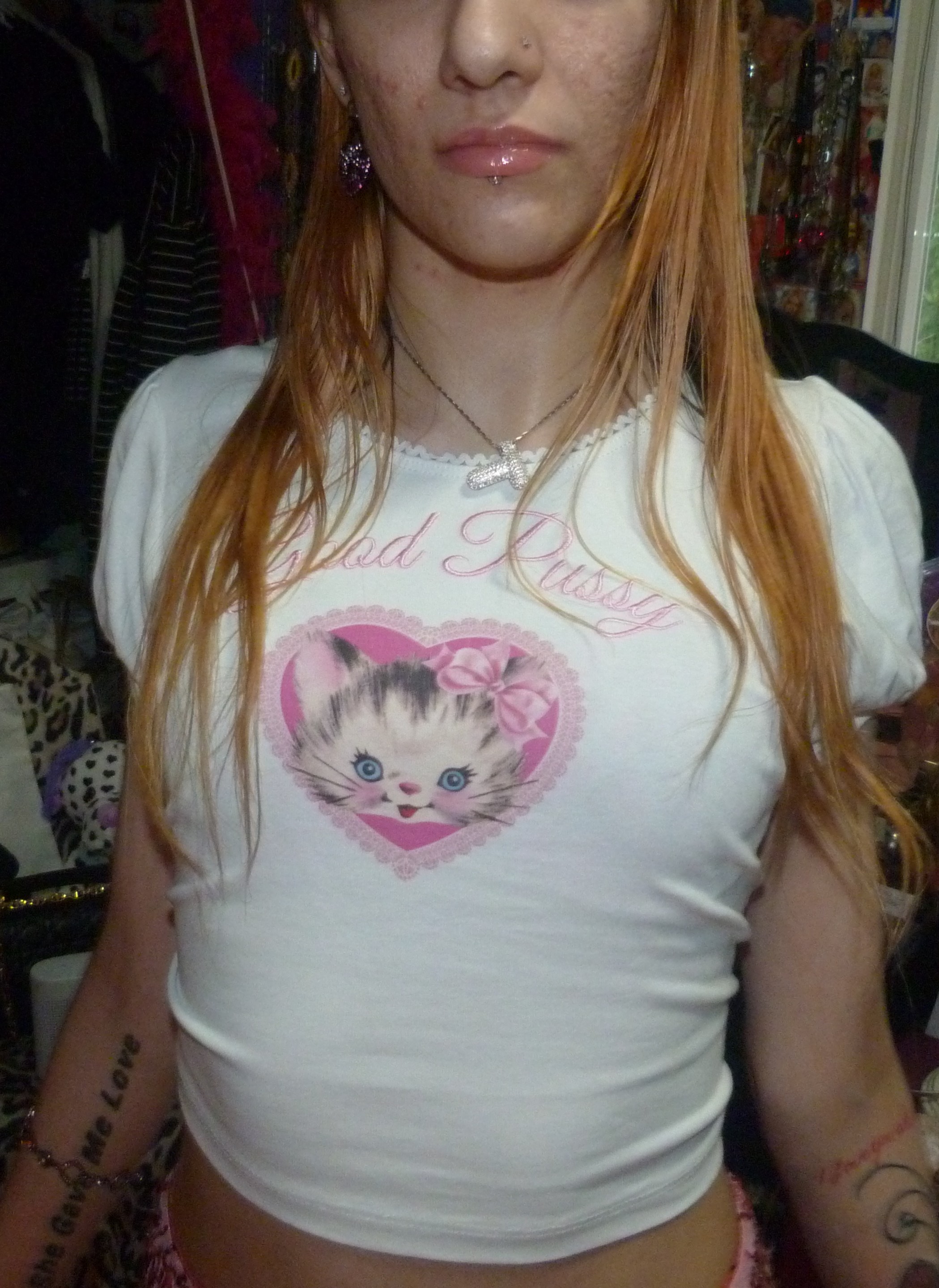 HEY GUYS I FOUND A REALLY CUTE SHIRT FROM DOLLS KILL ON DEPOP + I WANTED THIS SO BAD! HERE IS THIS PHOTOSHOOT OF THIS GOOD PUSSY KITTY SHIRT I GOT JUST RECENTLY!