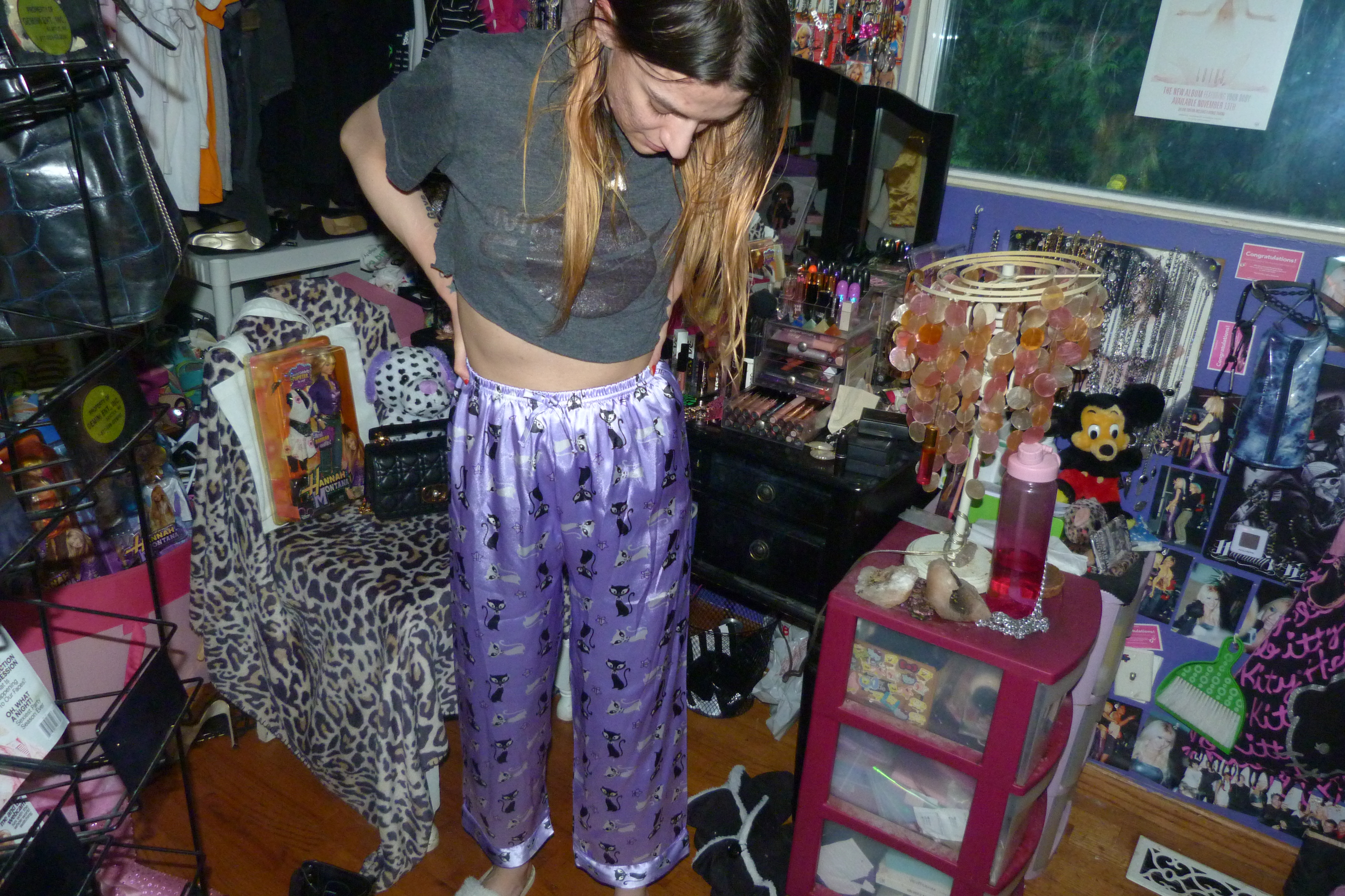 I GOT NEW MARY-KATE & ASHLEY PAJAMA PANTS WITH KITTIES ON THEM LIKE THE SONG + BUT THEY’RE SO CUTE & PURPLE. THE NASA ARIANA GRANDE SONG SHIRT IS CUTE WITH IT!