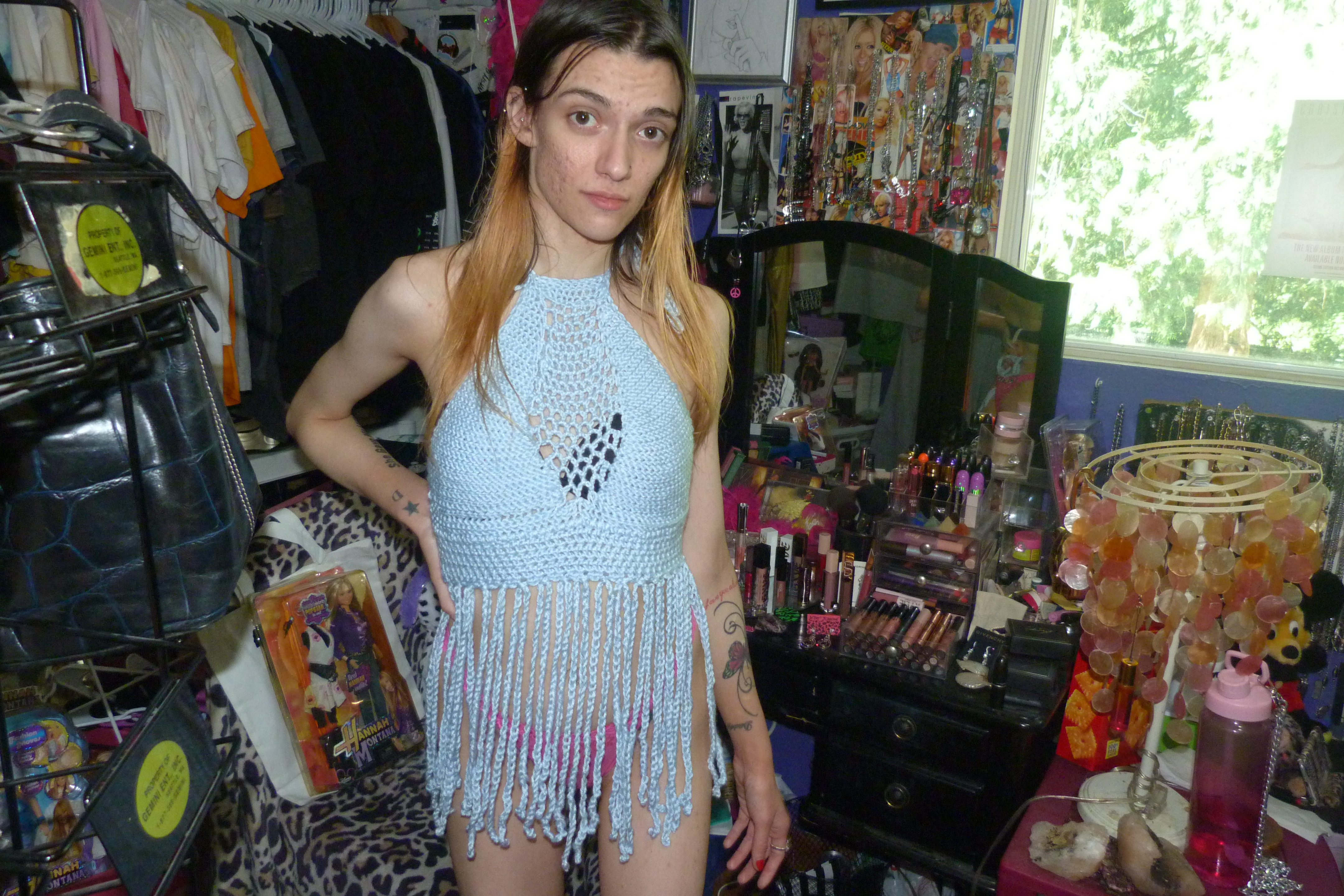 I’M BACK WITH MY DADDY FOR THIS FINALLY, SO THAT’S PRETTY COOL. THIS OUTFIT IS JUST THIS BLUE CROCHETED TOP ++ ++ I LOVE IT, IT LOOKED SO CUTE THIS DAY FOR THE OUTFIT!
