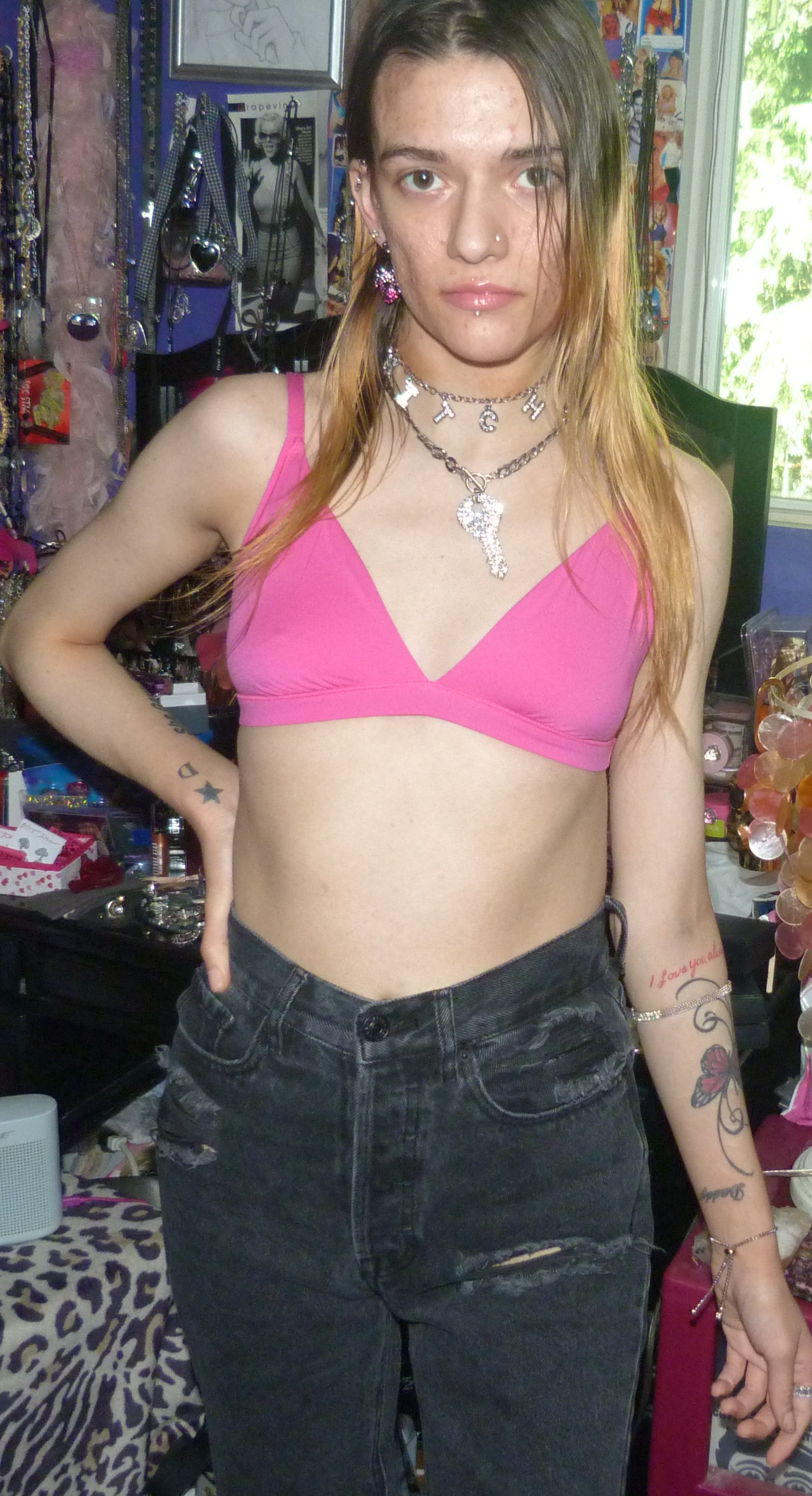 HERE IS MY NEXT POST IN THE LINE OF POSTS THAT I’M DOING, THIS ONE WITH THIS PINK BRALETTE ++ ALMOST BLACK PANTS! THIS IS A CUTE NEW OUTFIT I HAVE, THE BRALETTE IS!