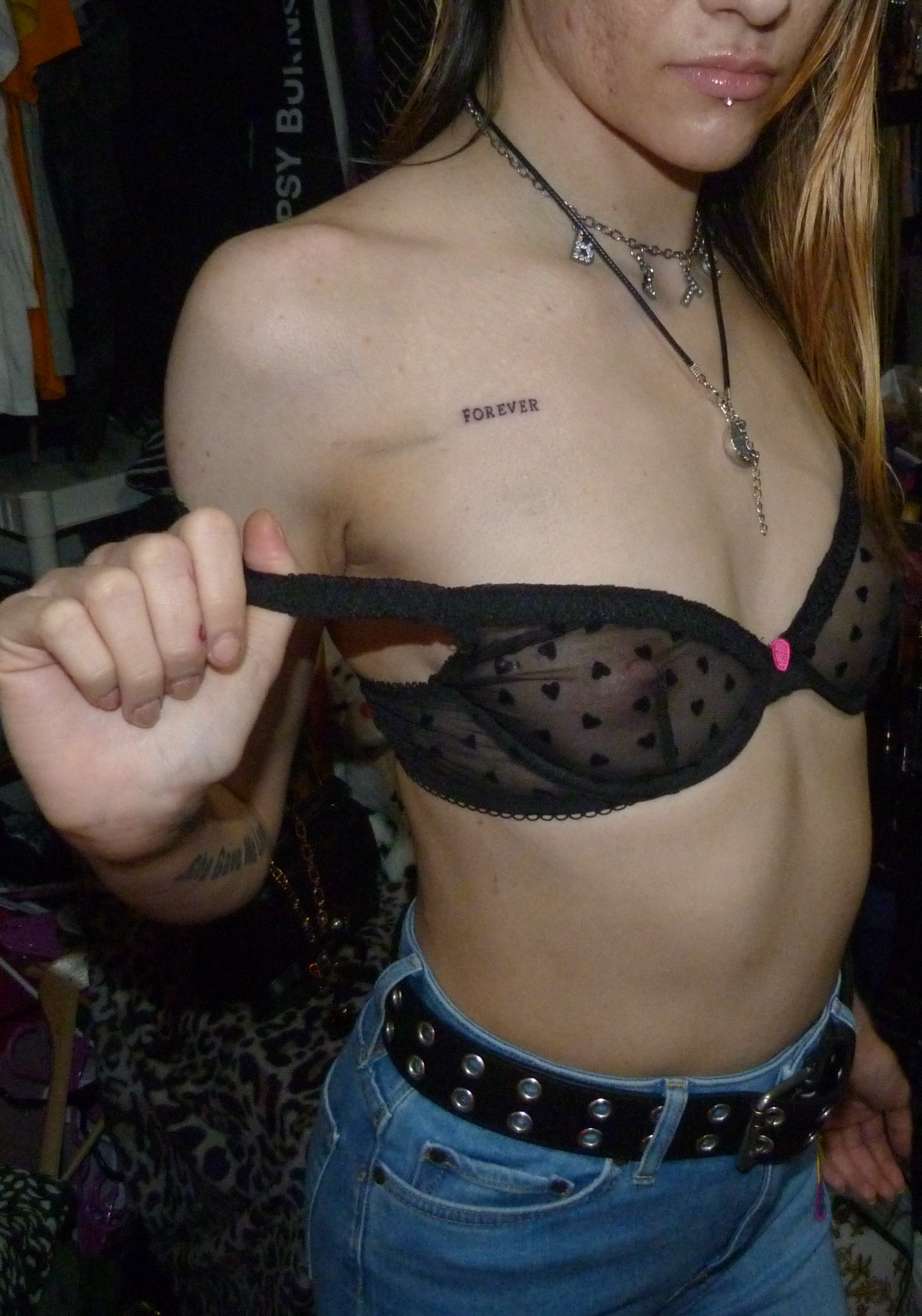 I JUST GOT TWO NEW TATTOOS! THEY’RE ‘FOREVER’ RIGHT THERE ABOVE MY CHEST PLUS A HEART ON MY BACK SHOULDER, THAT IS RED! THAT LOOKED HOT + AN OATH IS A PROMISE.