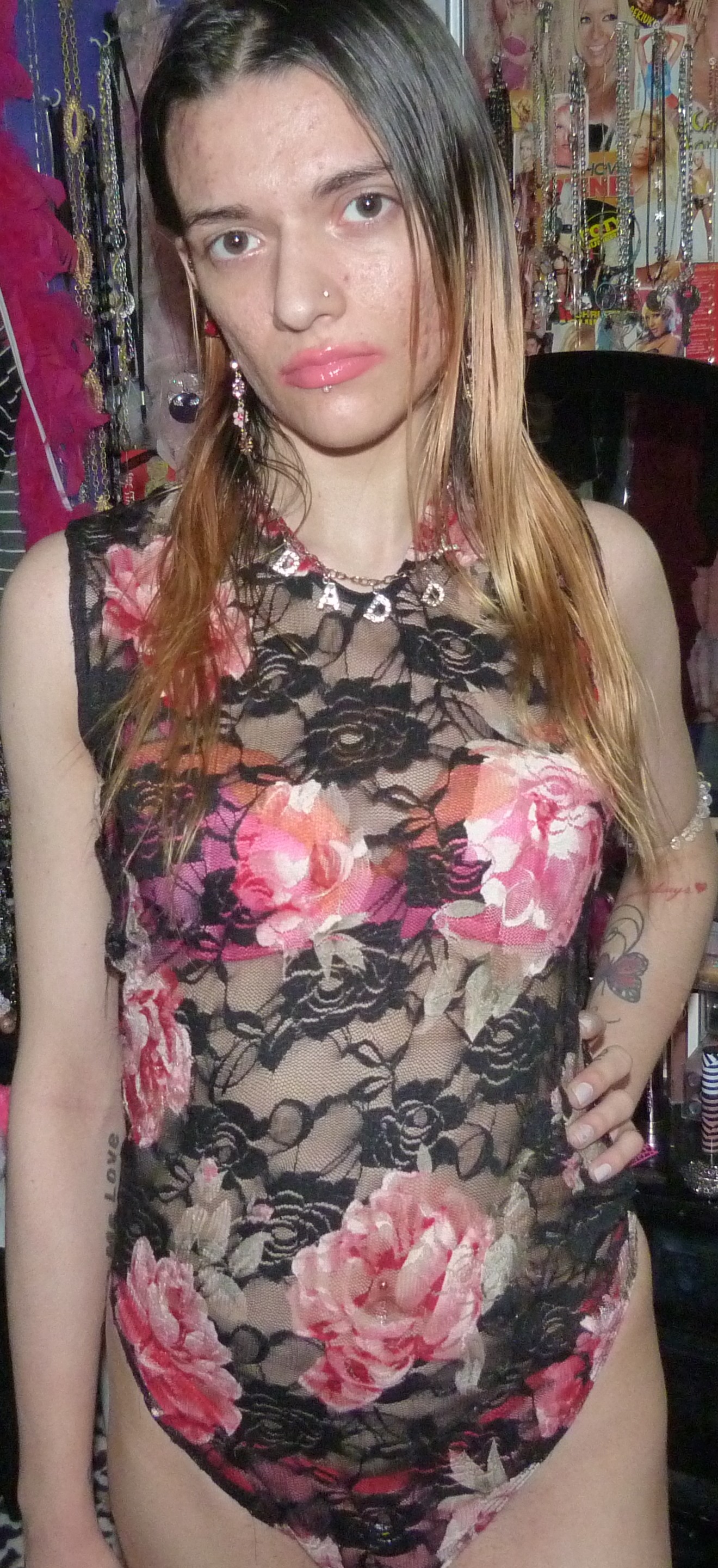 THIS IS ONE OF THE HOTTEST PIECES OF CLOTHING I’VE GOTTEN IN A WHILE. IT IS A PINK ROSE BLACK LACE BODYSUIT! I LOVE THIS BODYSUIT, I AM REALLY EXCITED ABOUT IT TOO!