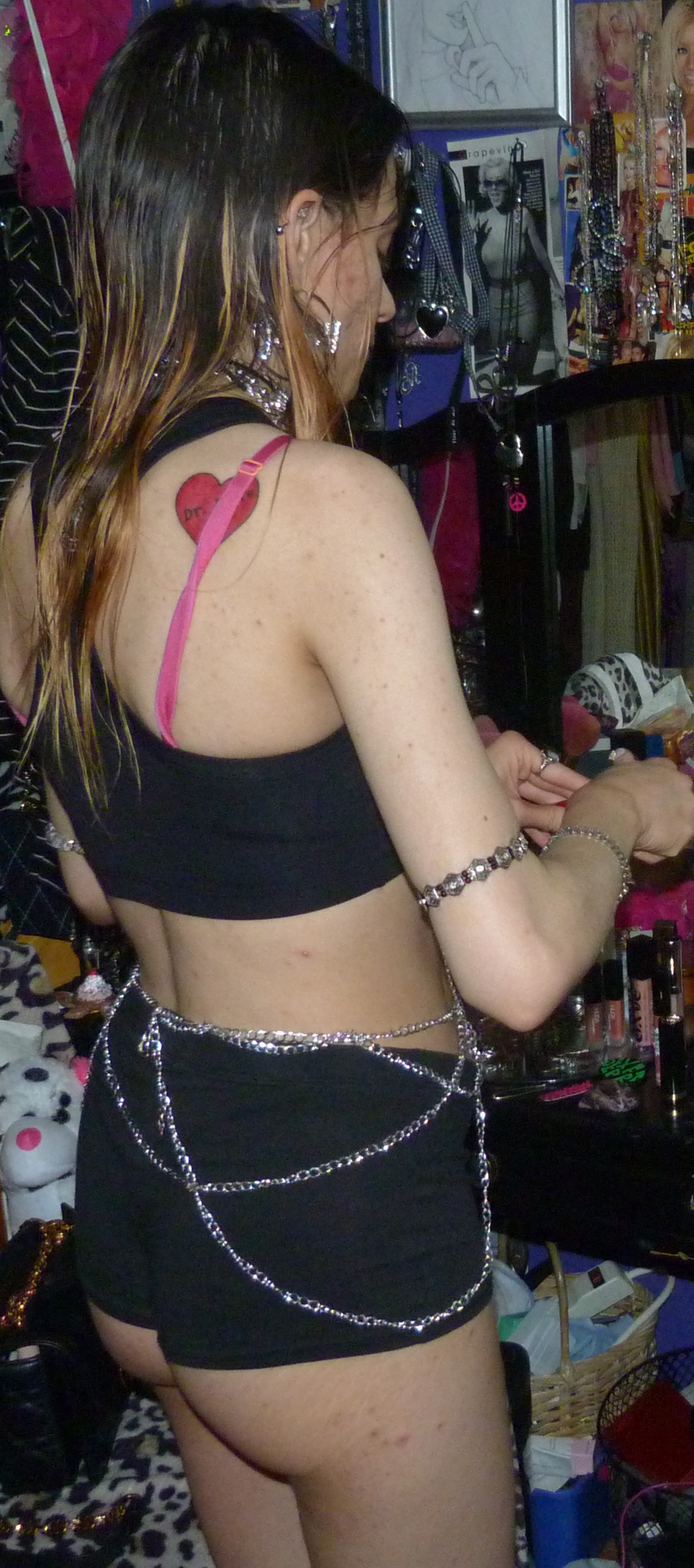 I CALL IT ENSLAVED BECAUSE OF THE HEART + WAIST CHAINS, PLUS A NEW TATTOO, ON MY BACK SHOULDER ON THE RIGHT, THAT RED HEART WITH DR. LUKE’S NAME IN IT, PERFECT!