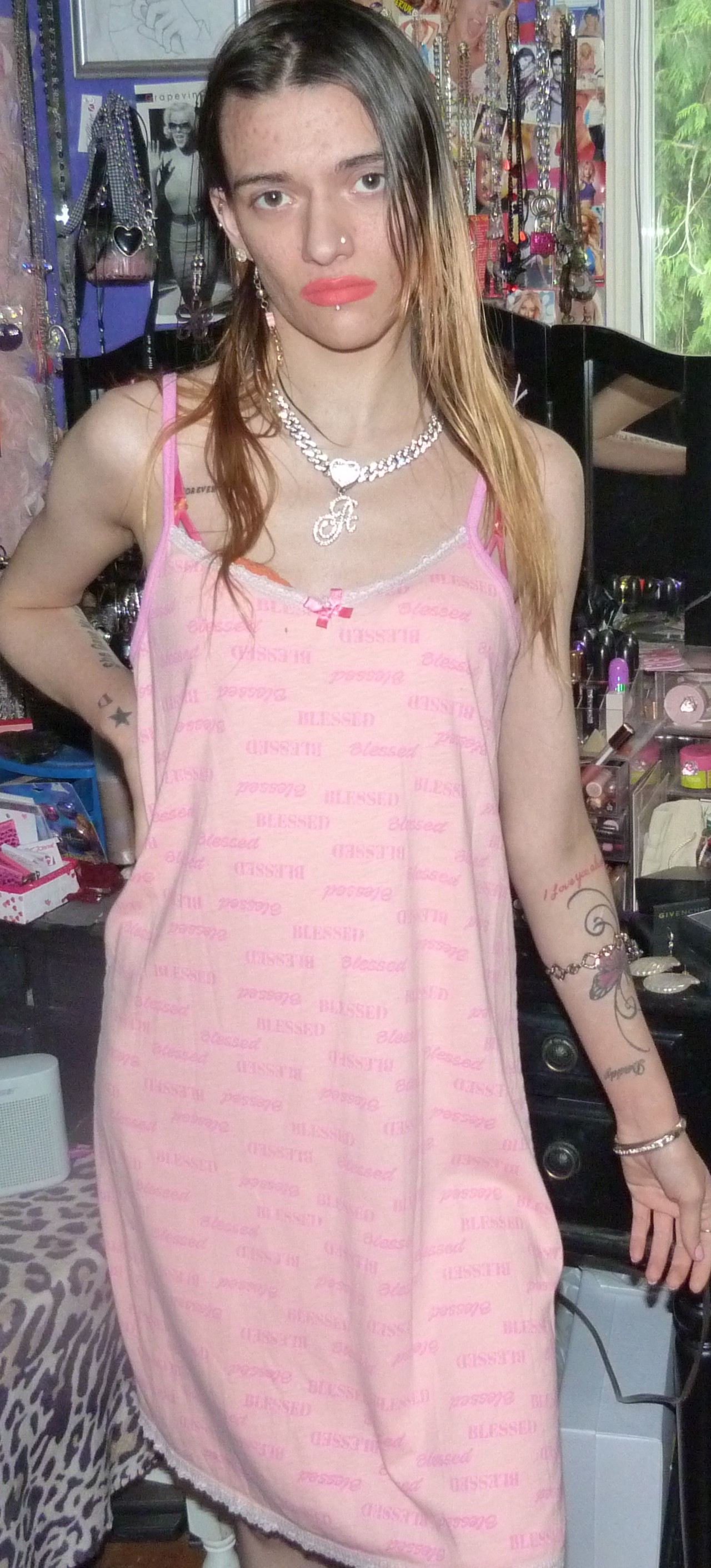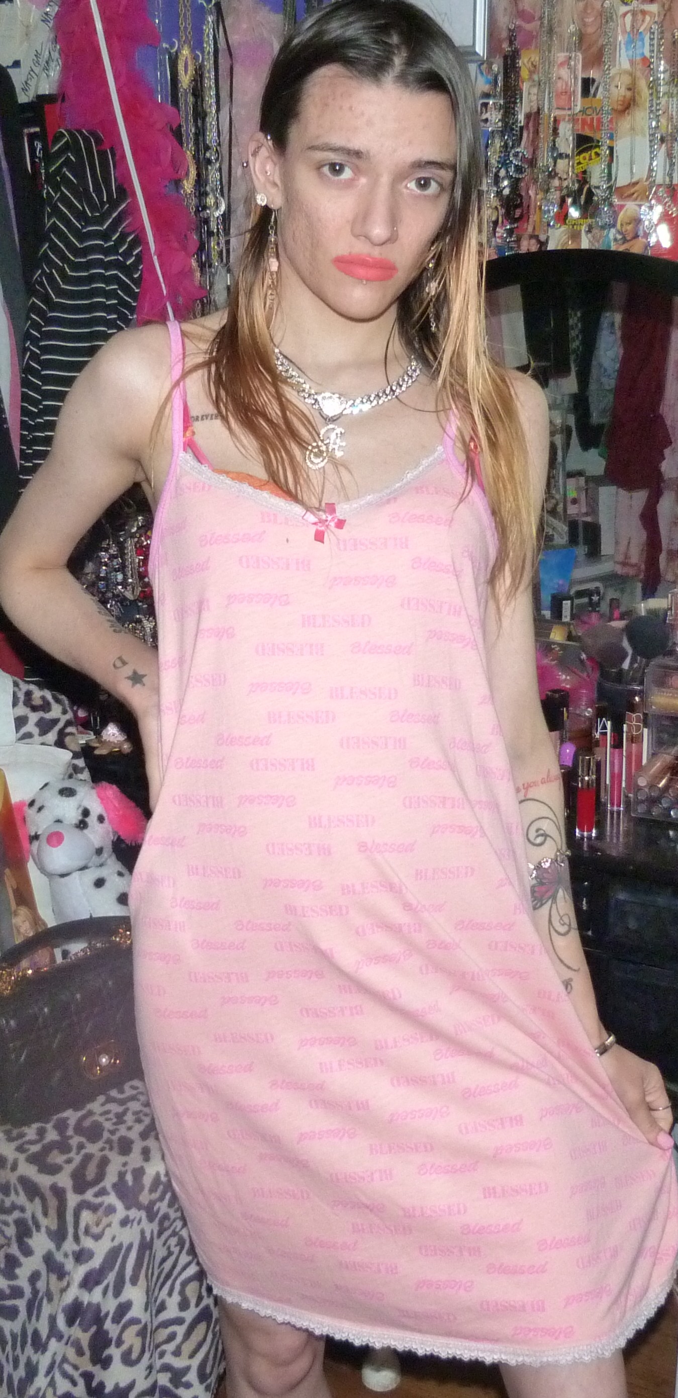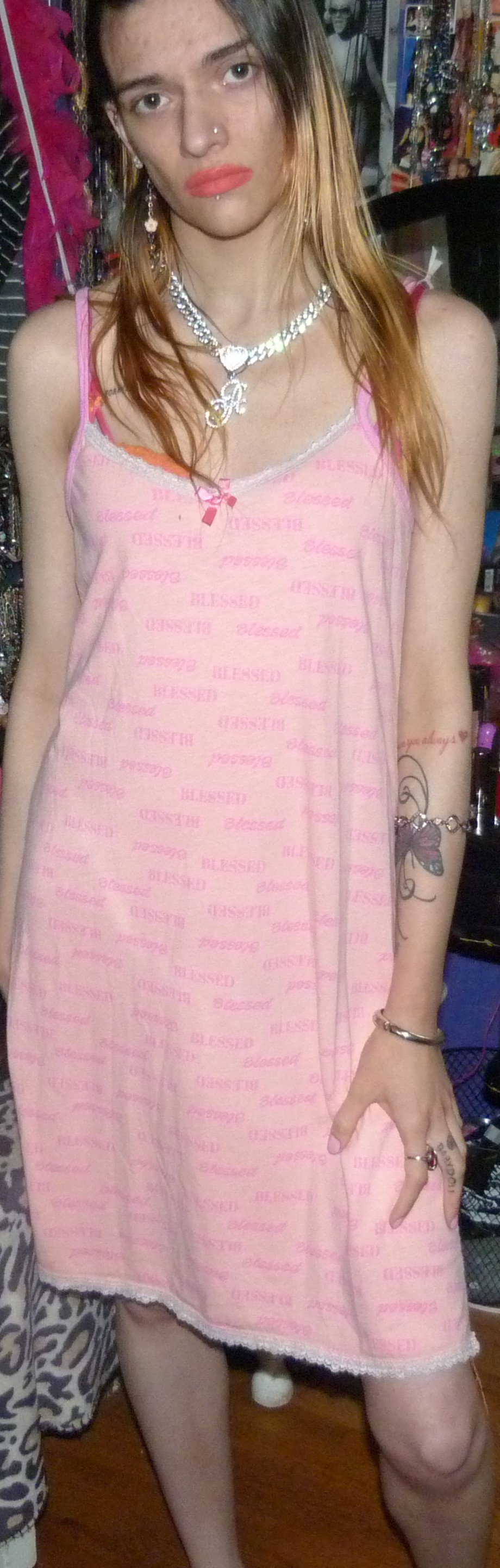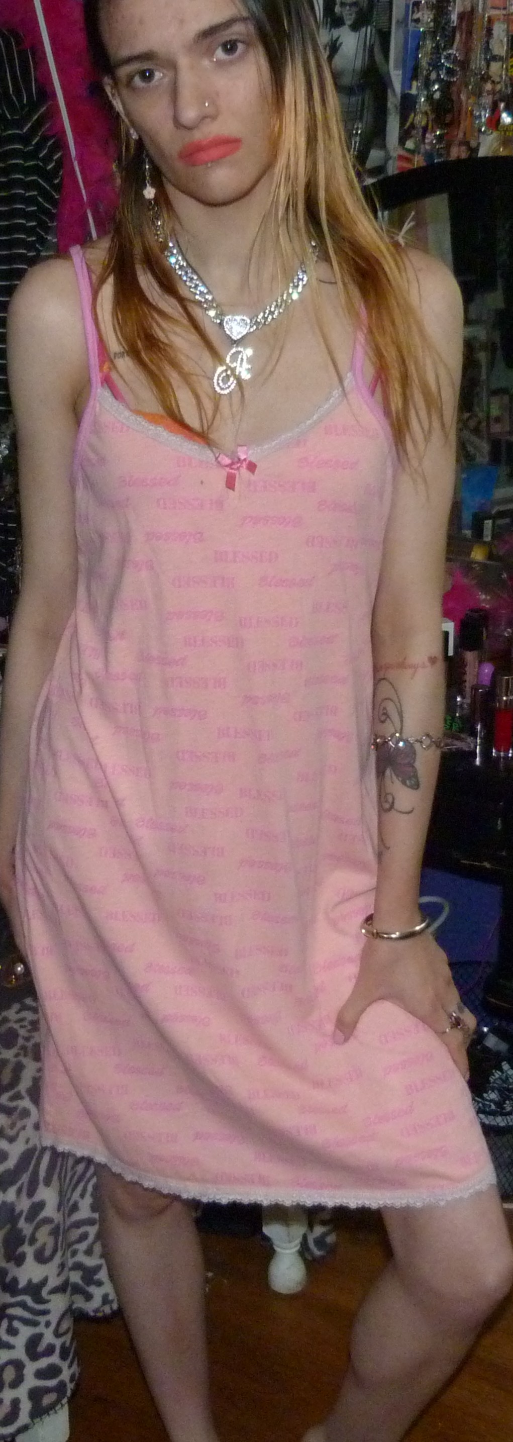 HEY GUYS HERE’S THIS CUTE DRESS I GOT THAT WAS NEW THAT SAYS BLESSED ALL OVER IT THAT I FOUND ON DEPOP. IT’S PRETTY CUTE BUT I MIGHT GET RID OF THIS 1 CUTE THOUGH.