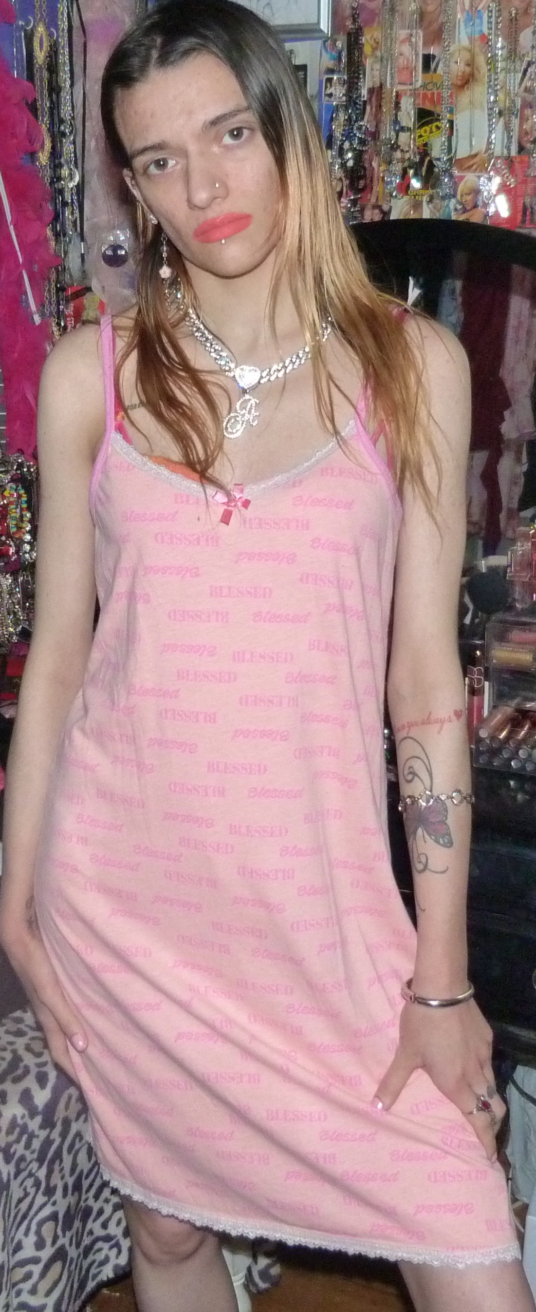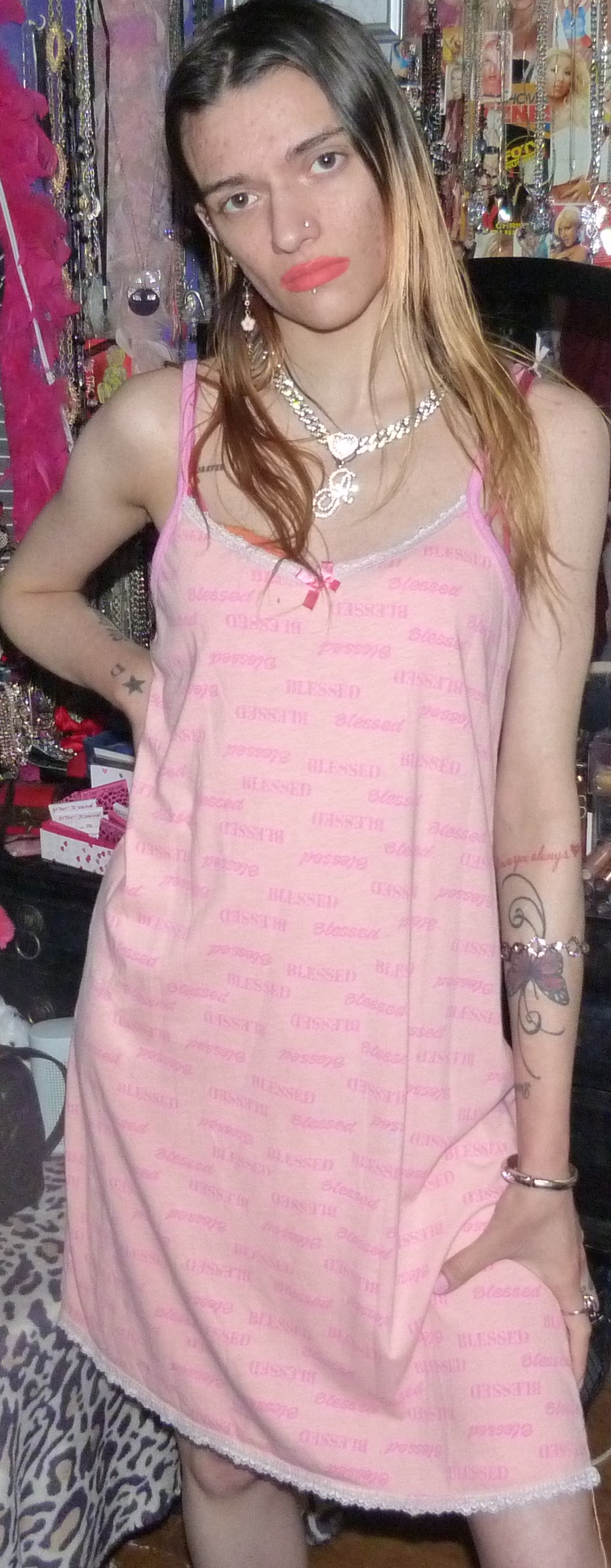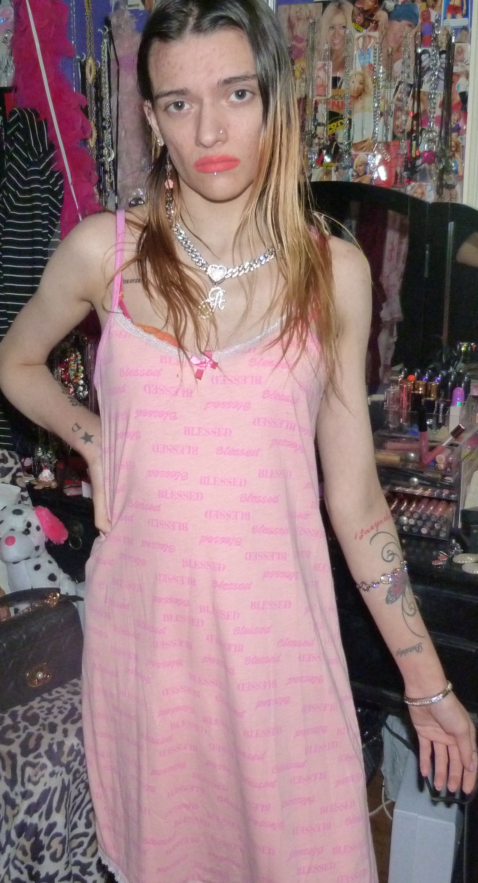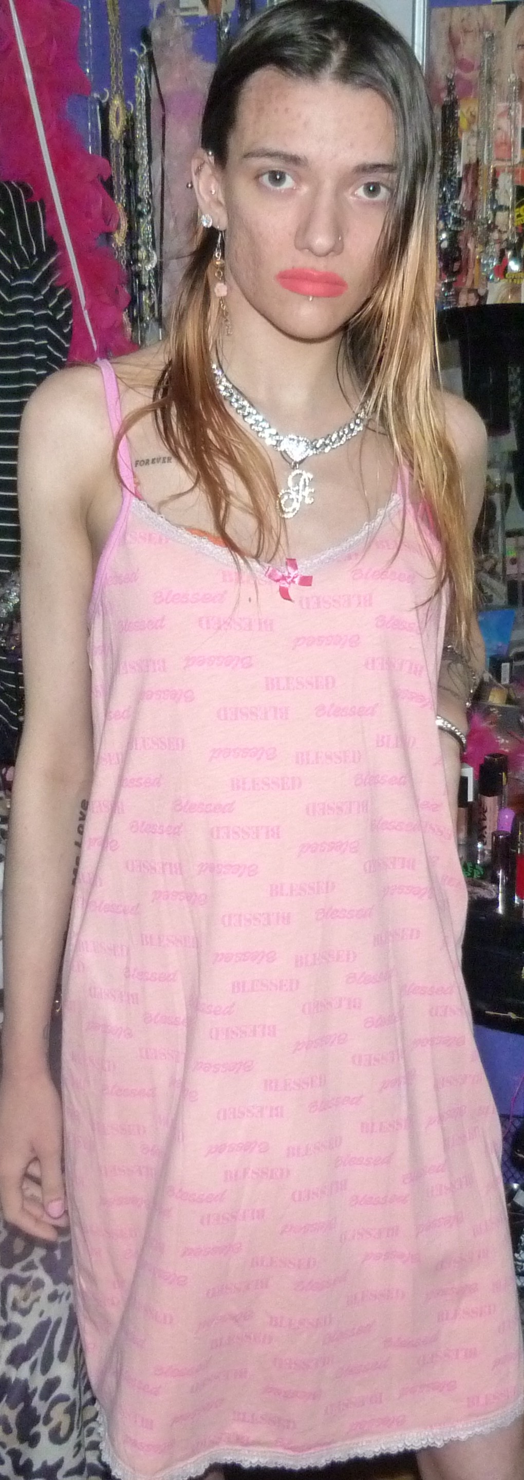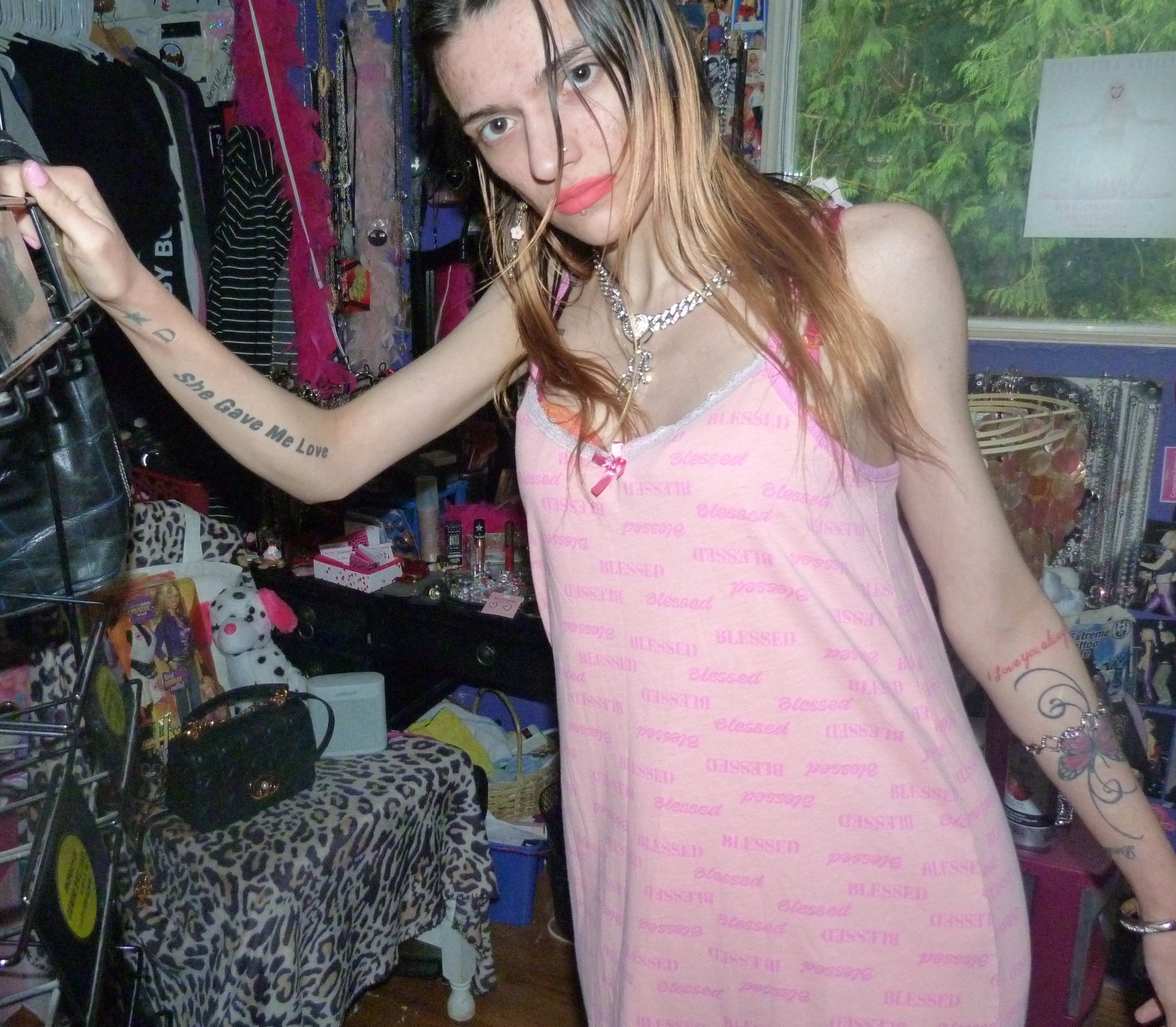 HEY GUYS HERE’S THIS CUTE DRESS I GOT THAT WAS NEW THAT SAYS BLESSED ALL OVER IT THAT I FOUND ON DEPOP. IT’S PRETTY CUTE BUT I MIGHT GET RID OF THIS 1 CUTE THOUGH.